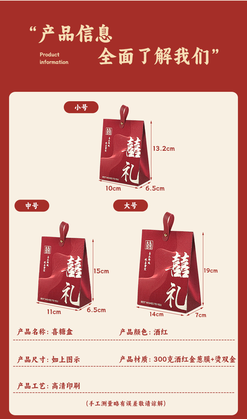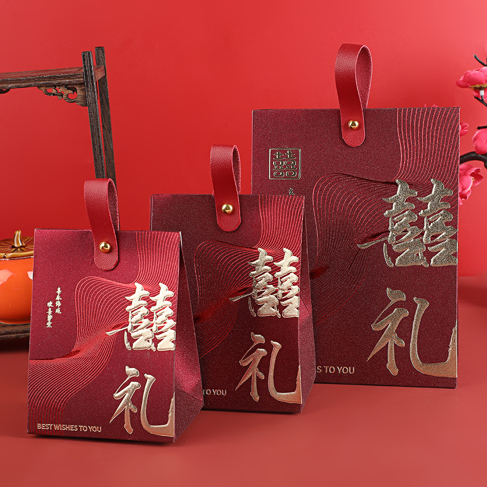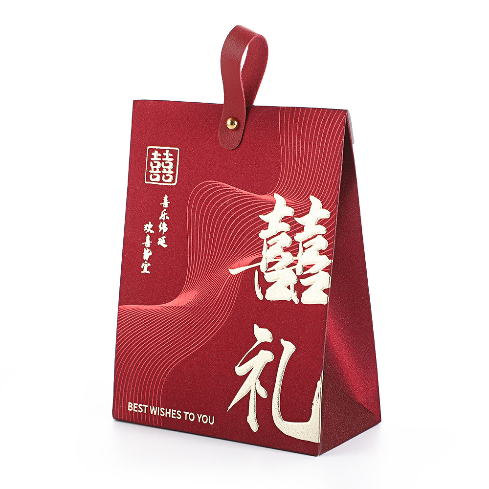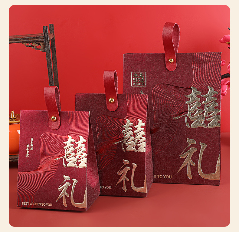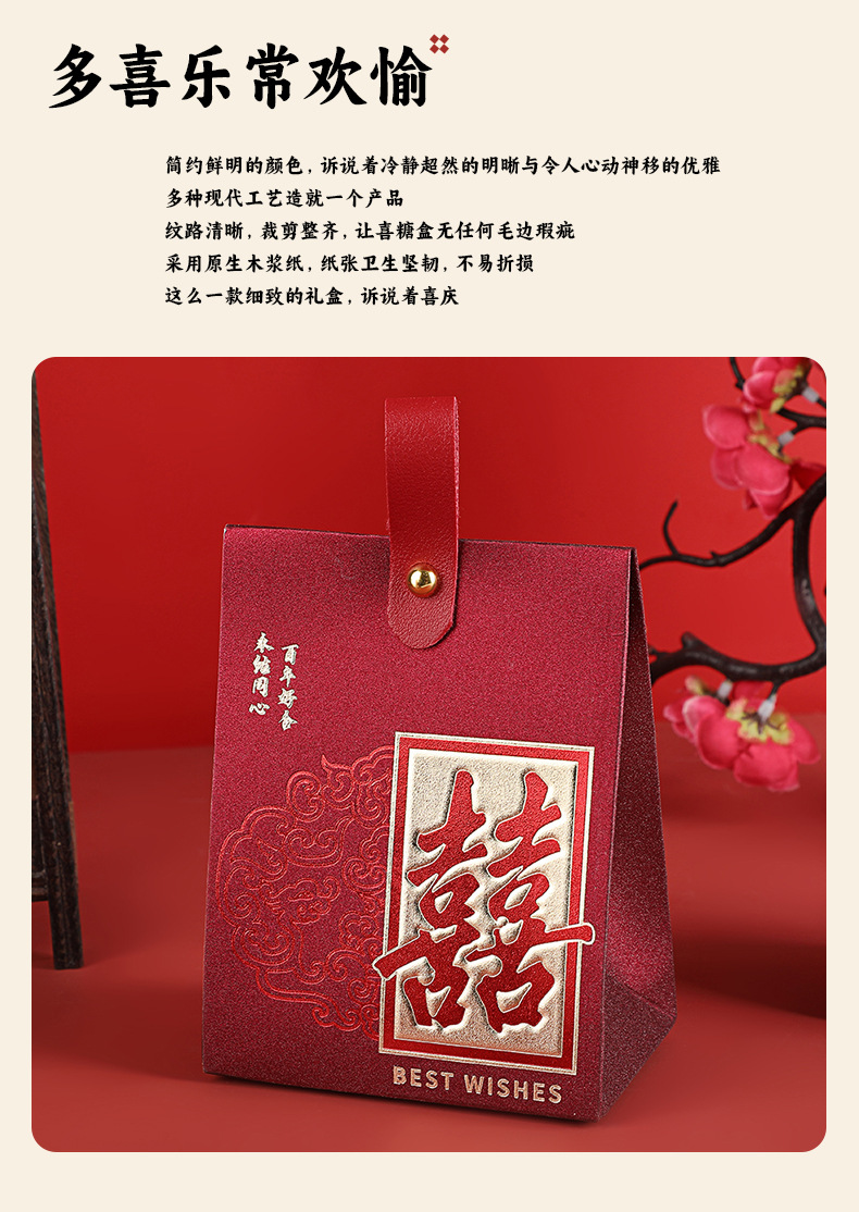 中式喜糖盒结婚伴手礼空盒立体喜糖盒红色吾家有喜烫金喜糖包装盒