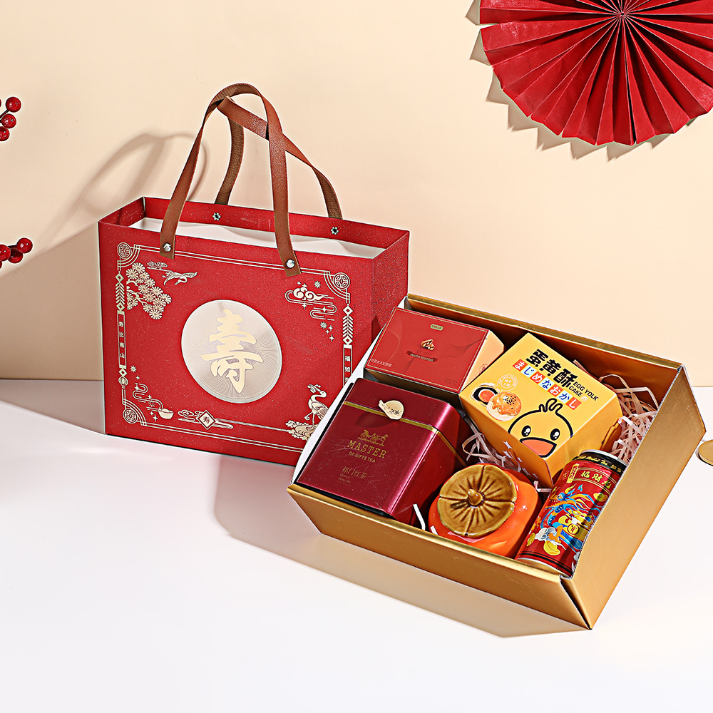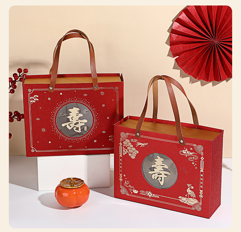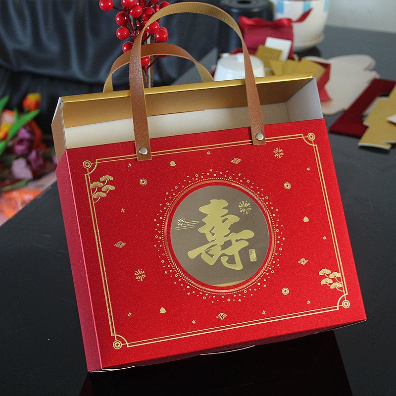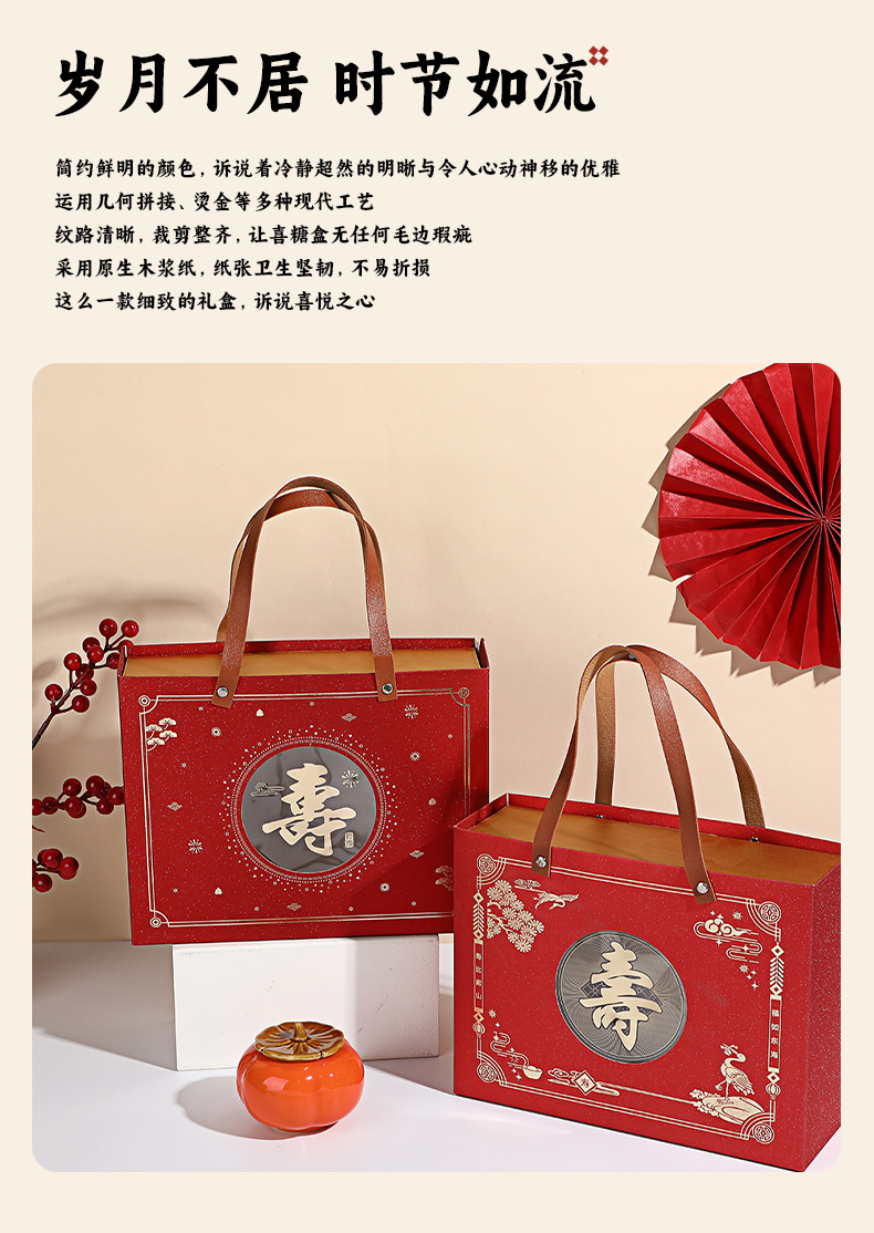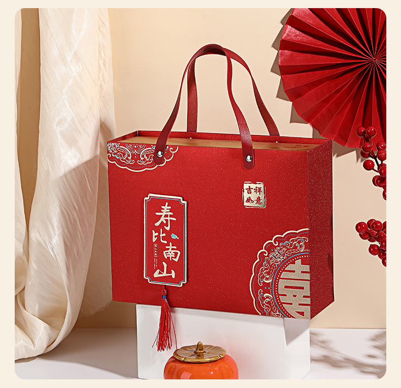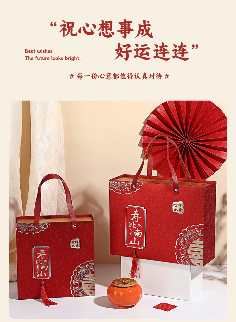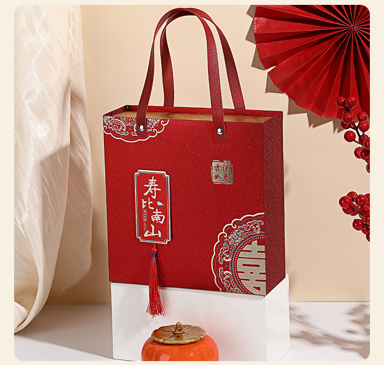 中式寿宴礼盒抽屉过寿回礼流苏伴手礼喜糖盒金葱寿比南山手提礼盒