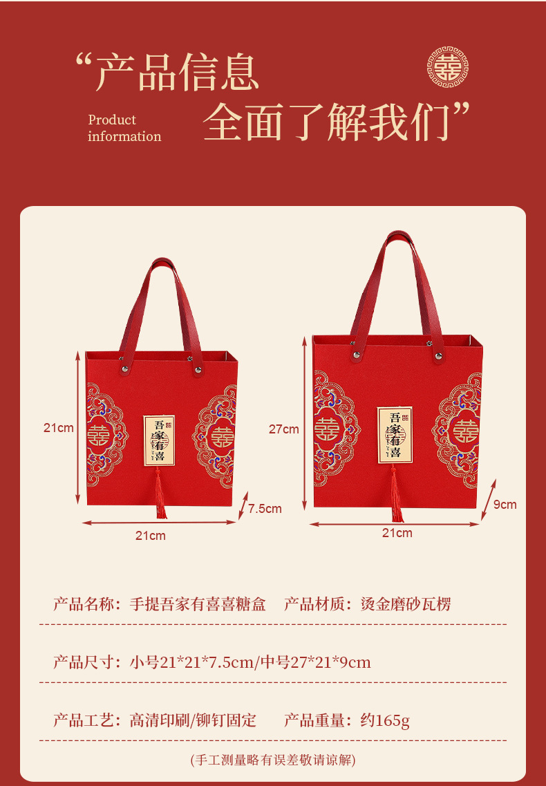 吾家有喜婚庆喜糖盒伴娘伴手礼品盒烫金磨砂瓦楞纸盒方形创意礼盒
