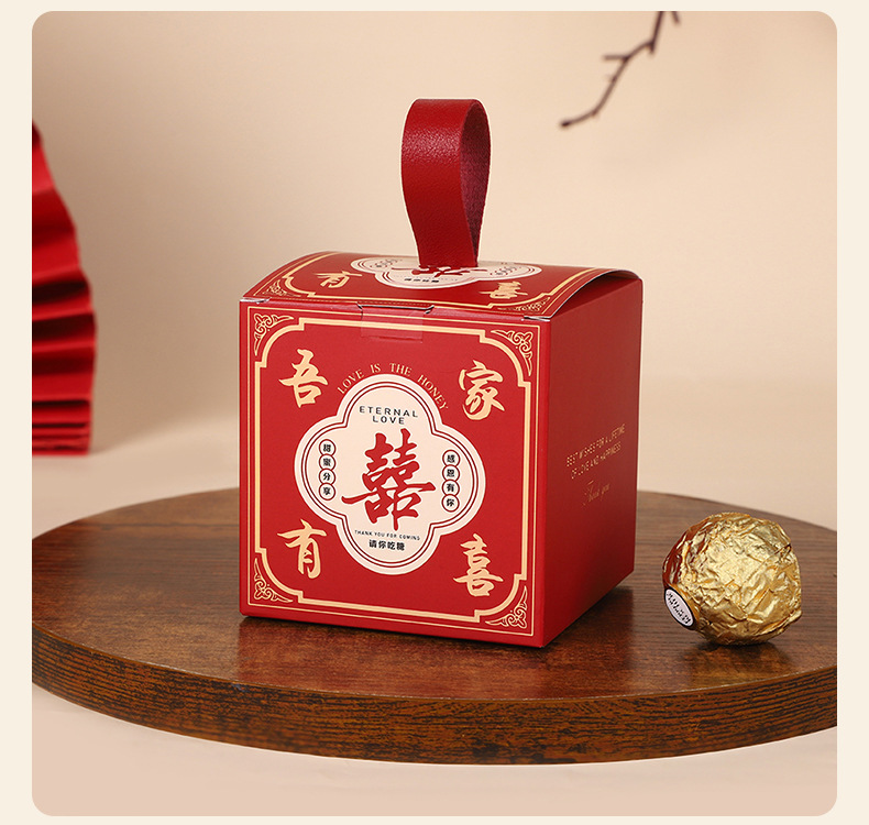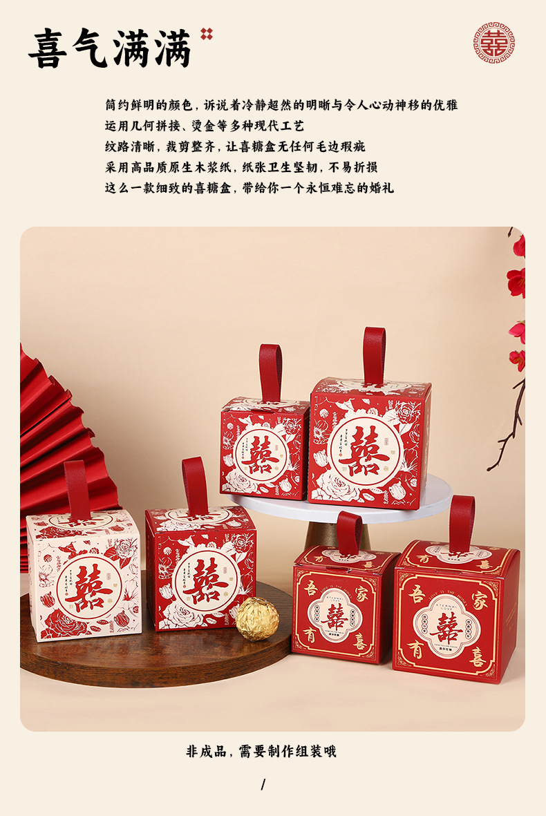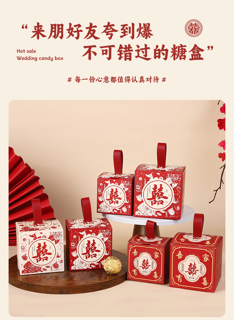 新款婚庆喜糖盒空盒手提正方形手提盒糖果盒创意中式婚礼纸盒袋子
