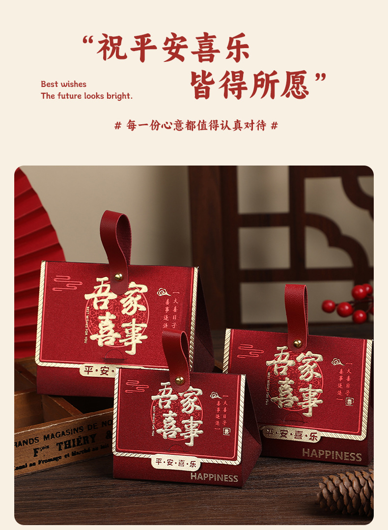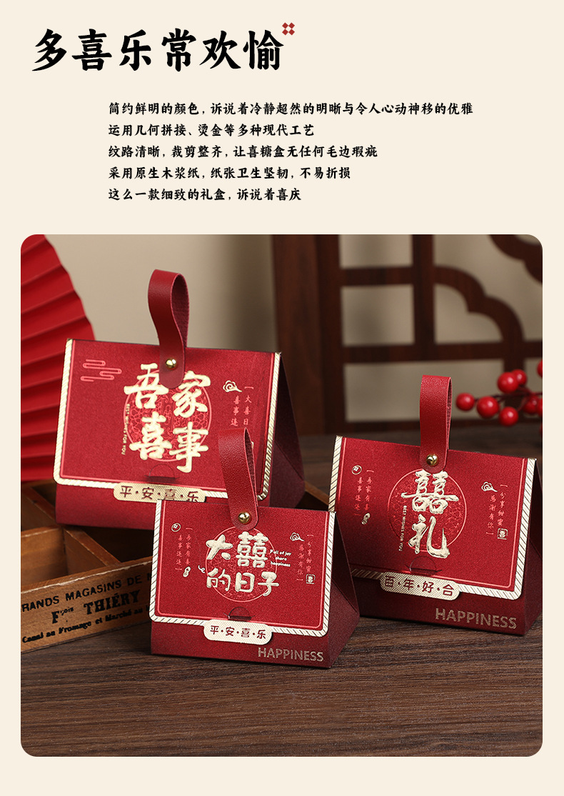 结婚喜糖盒新中式婚礼糖果包装盒空盒磨砂桌糖订婚伴手礼喜糖盒
