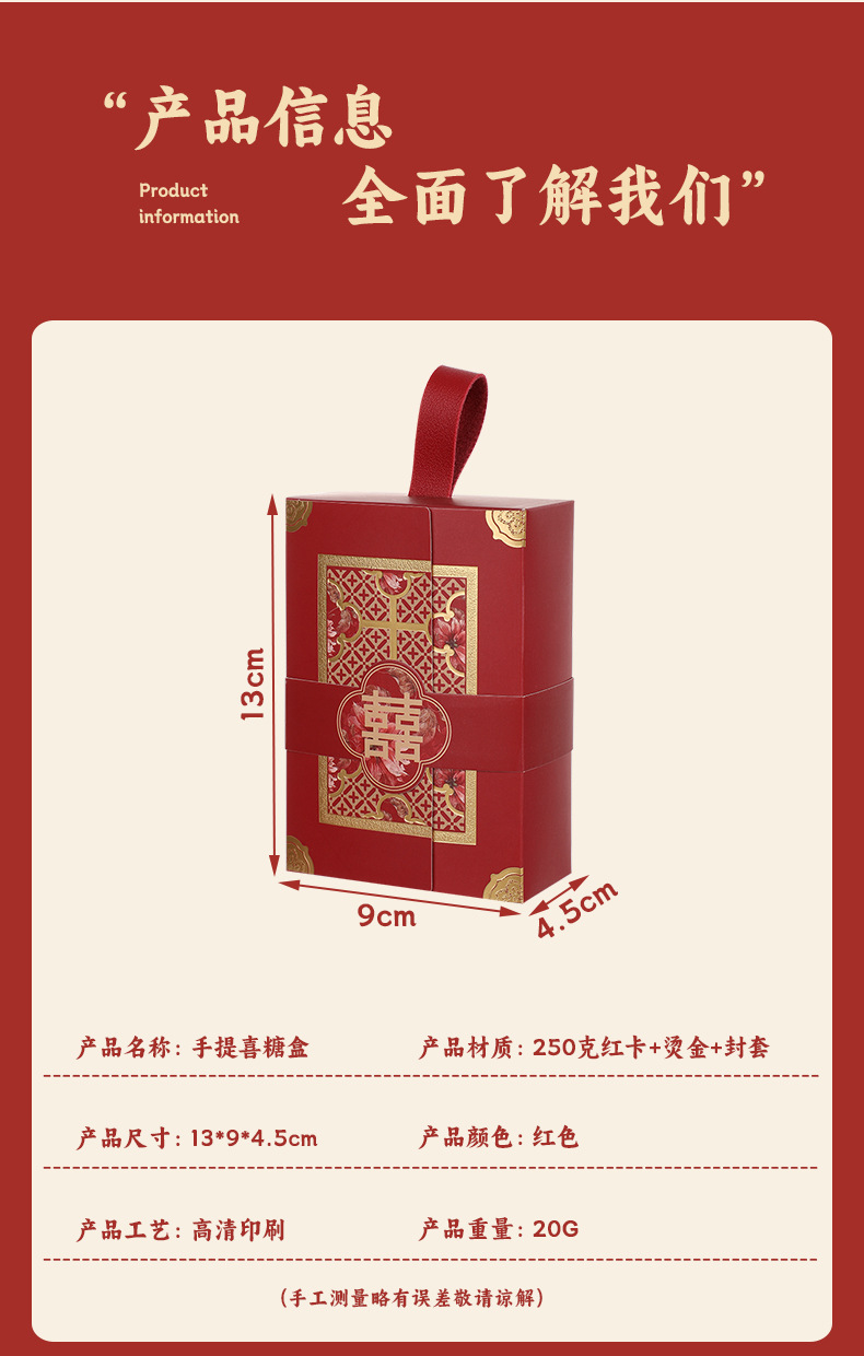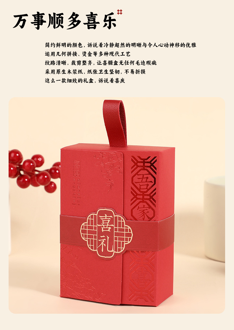 中式手提喜糖礼盒创意喜字喜糖袋糖果纸盒婚庆礼盒高级感方形礼盒