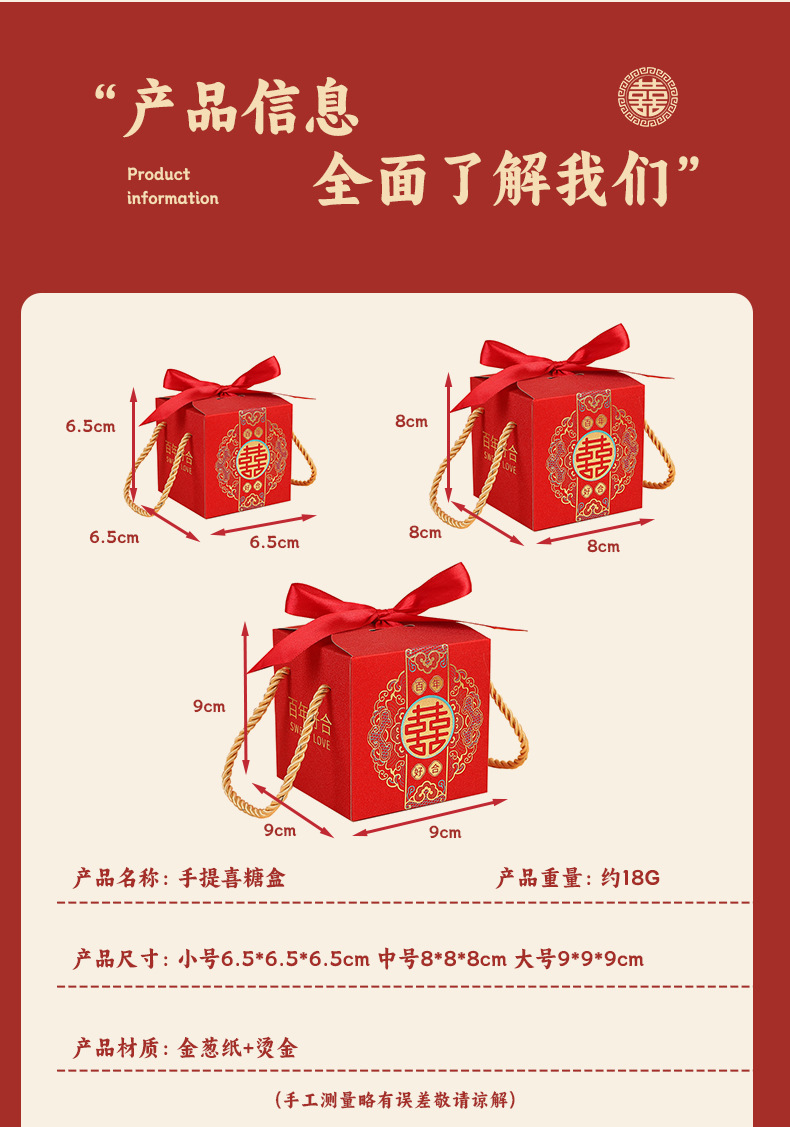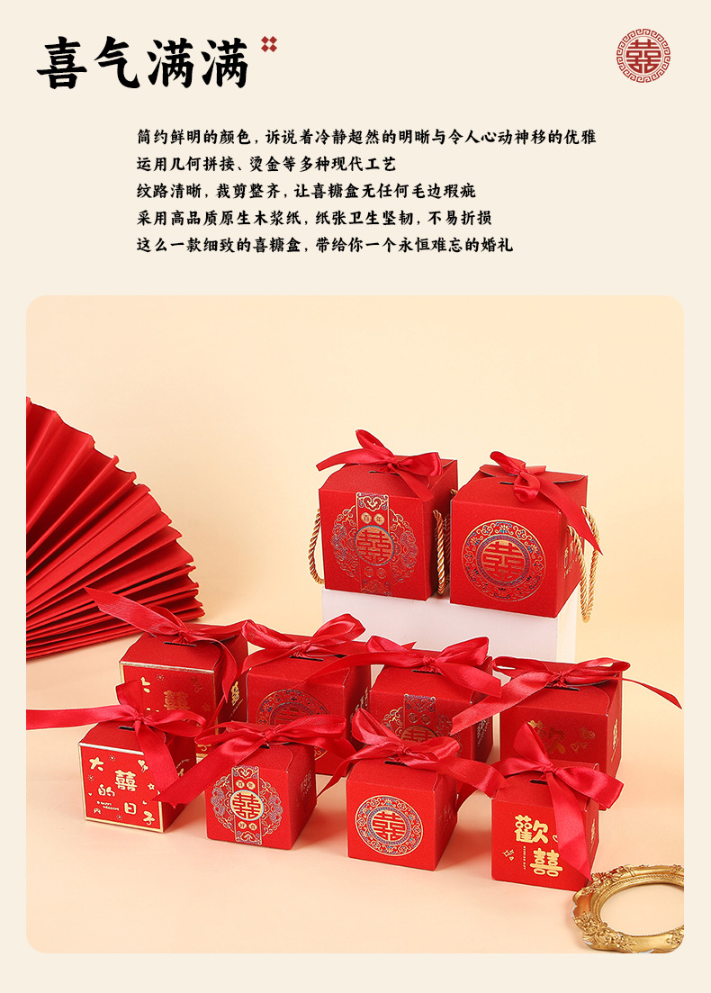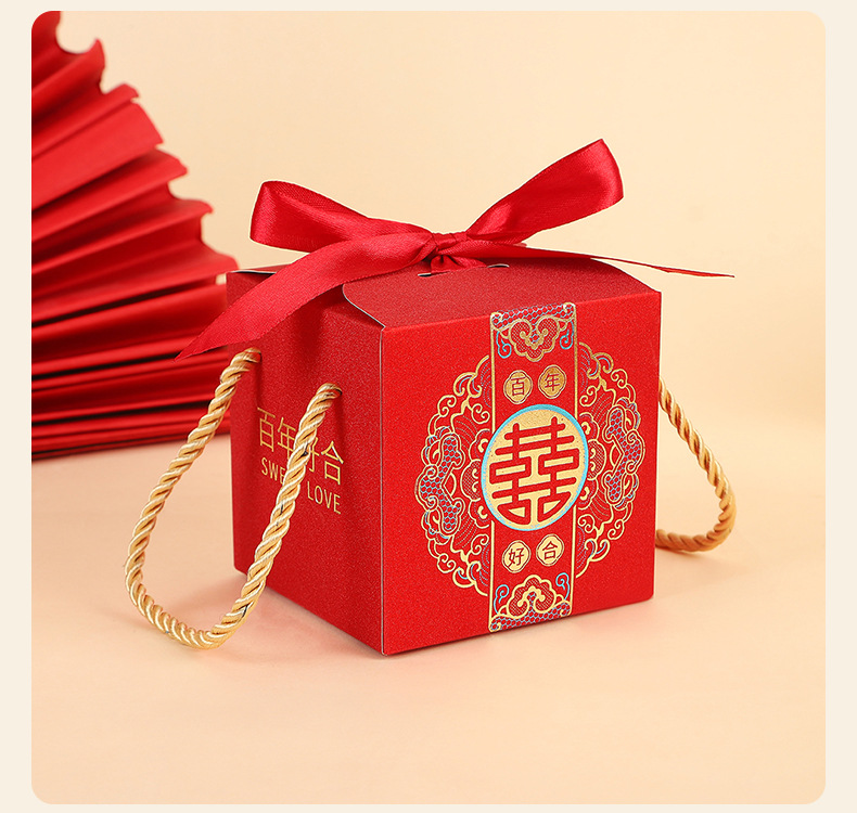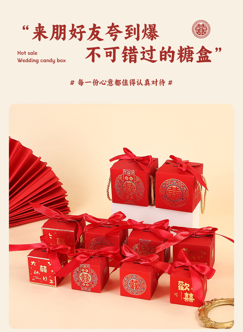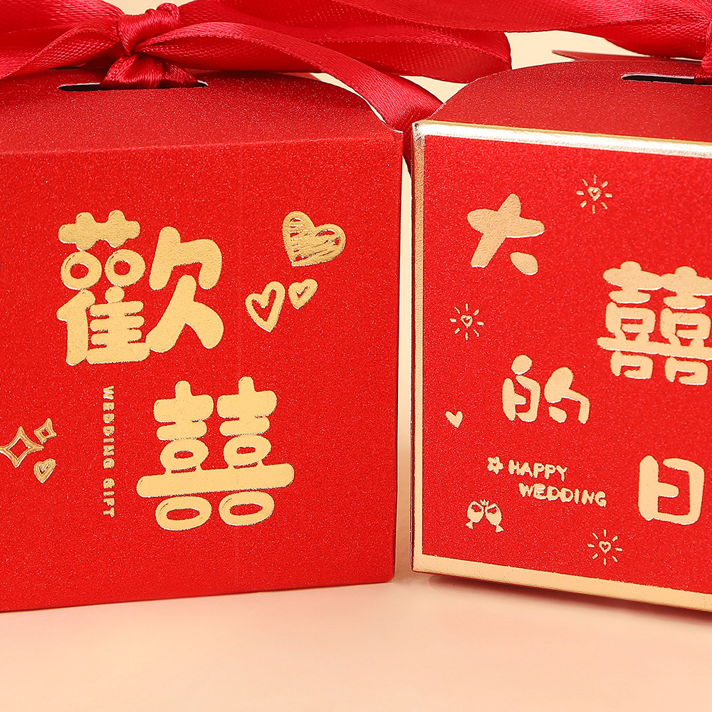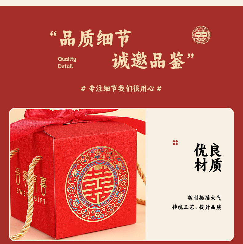 吾家有喜糖果盒中式创意蝴蝶结手提糖果盒子轻奢桌糖结婚糖盒空盒