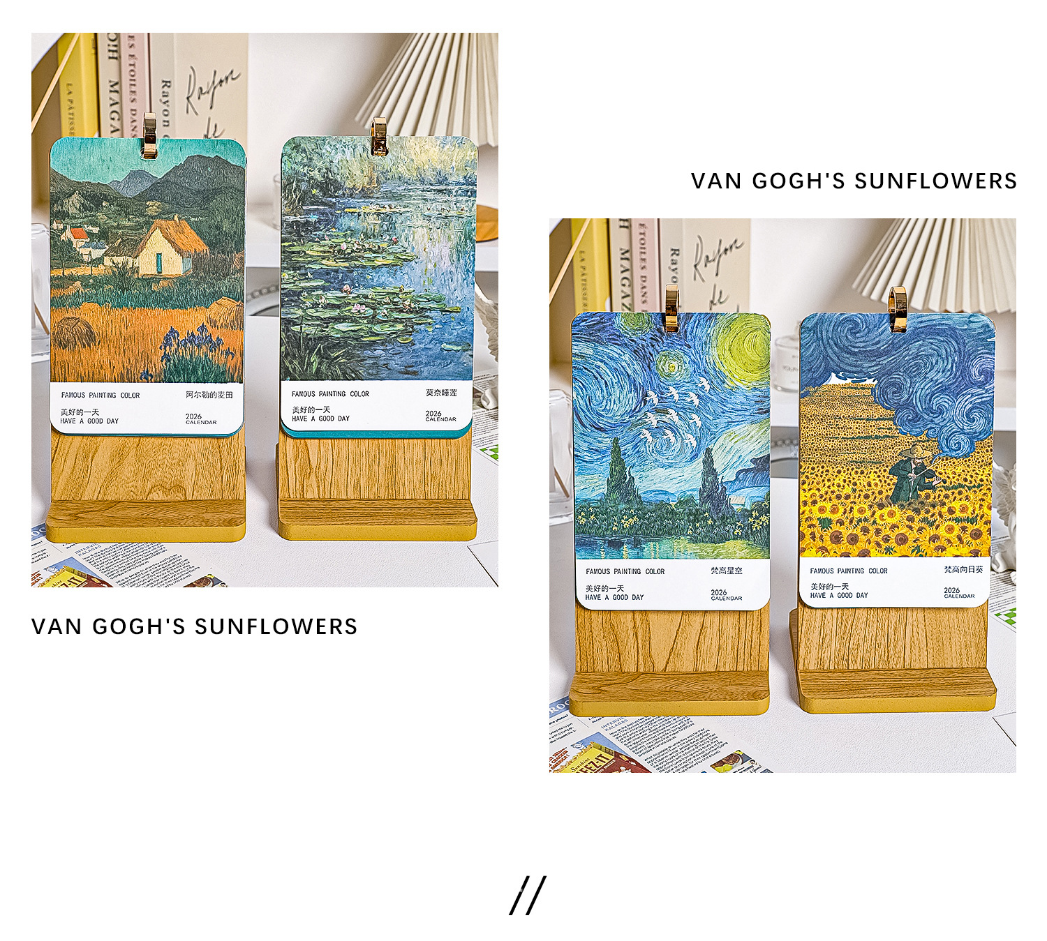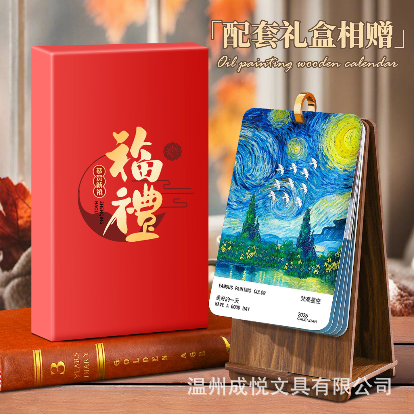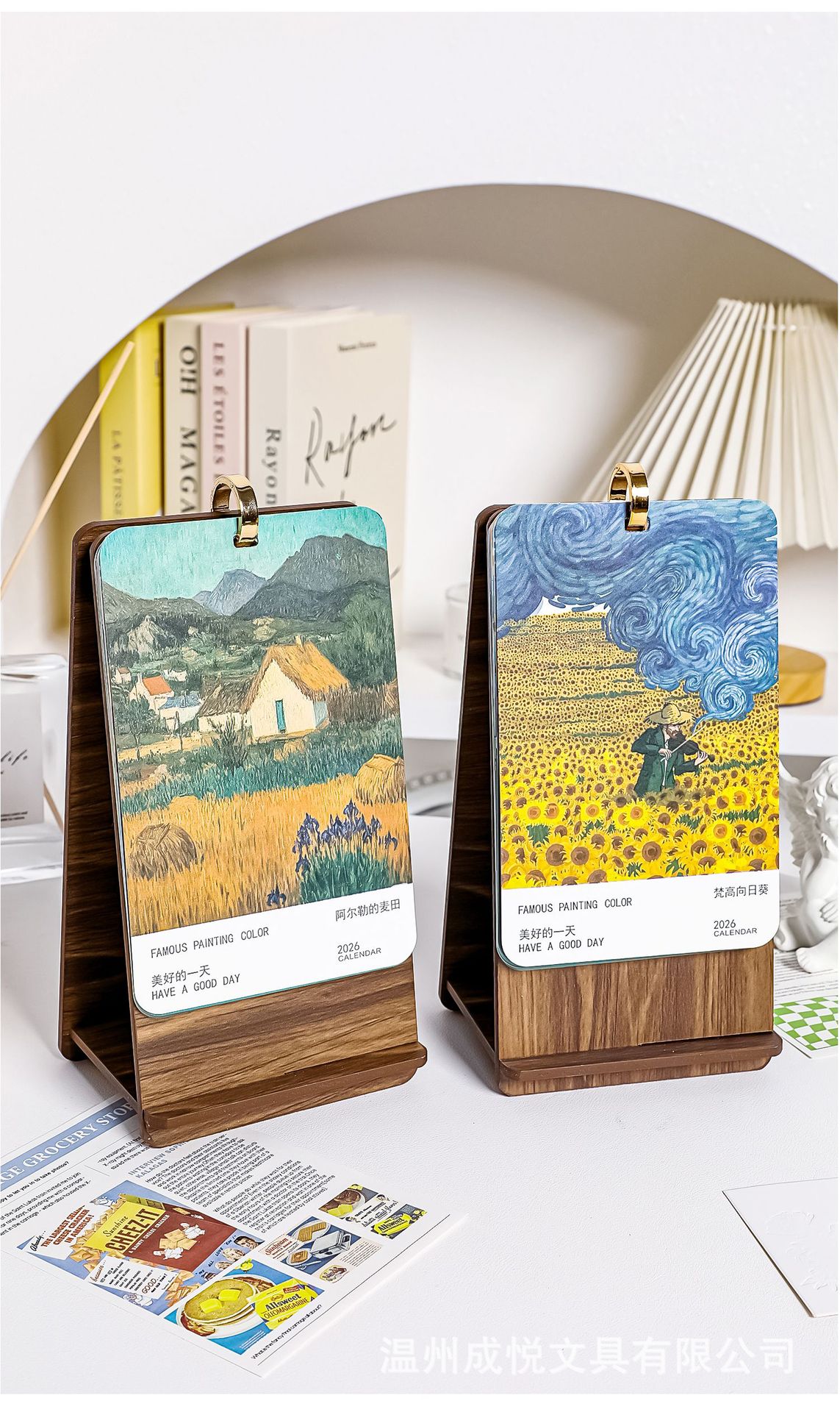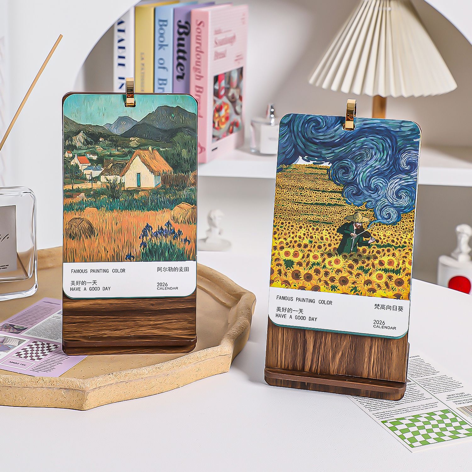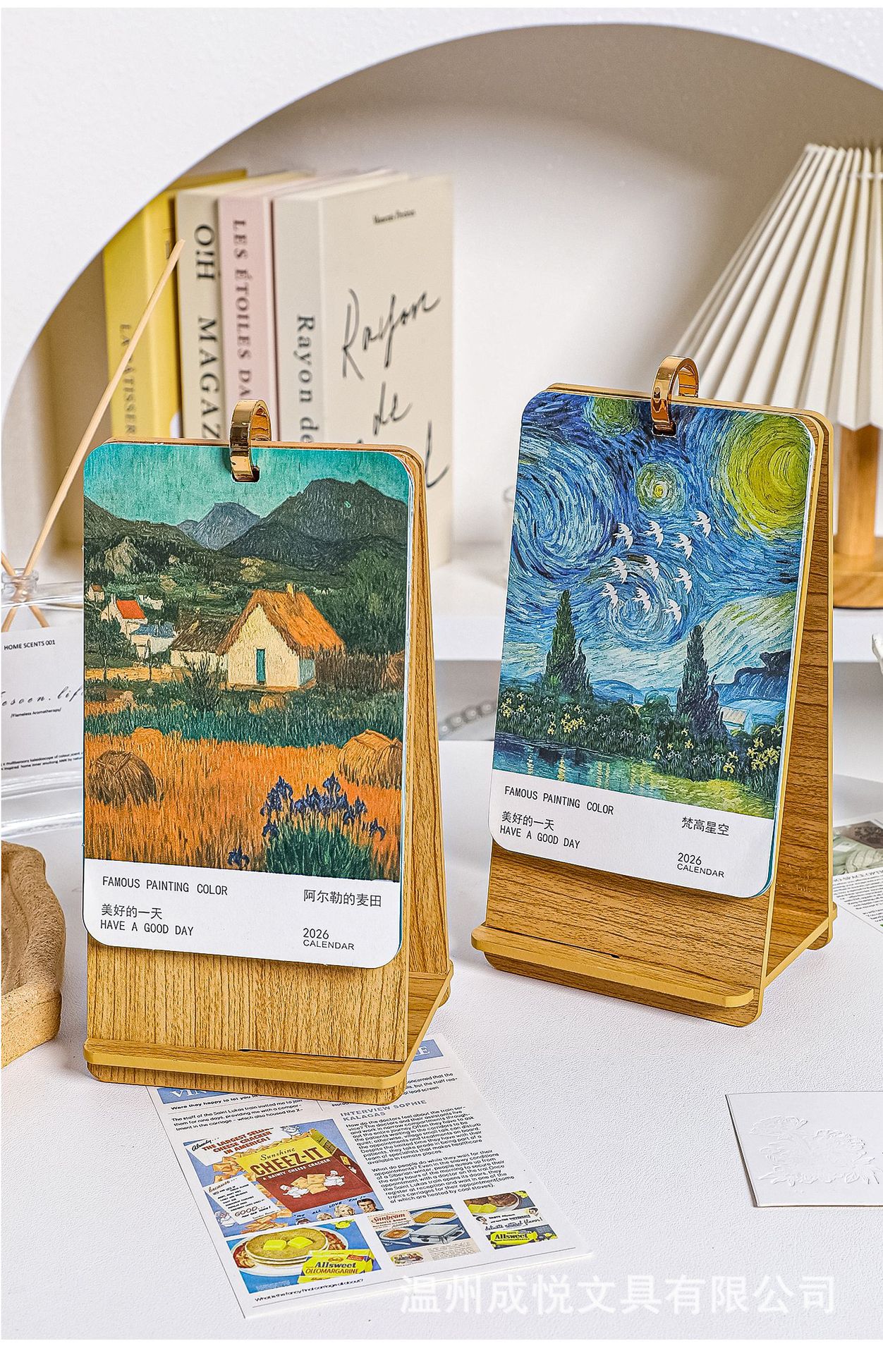 新款2026油画台历记事商务办公艺术创意复古梵高翻页日历厂家直销