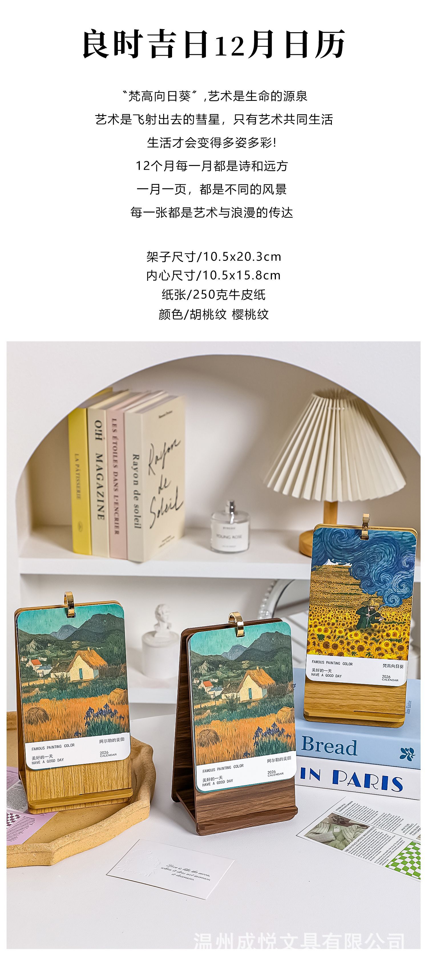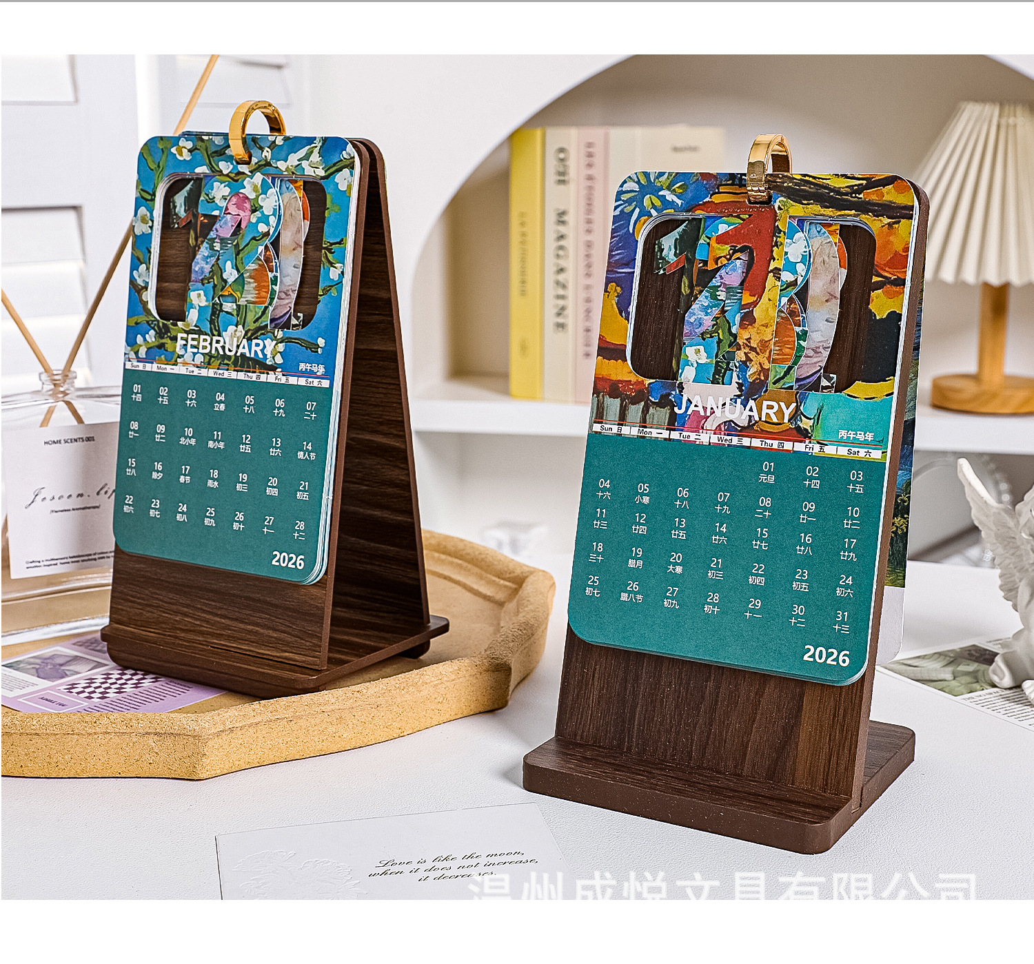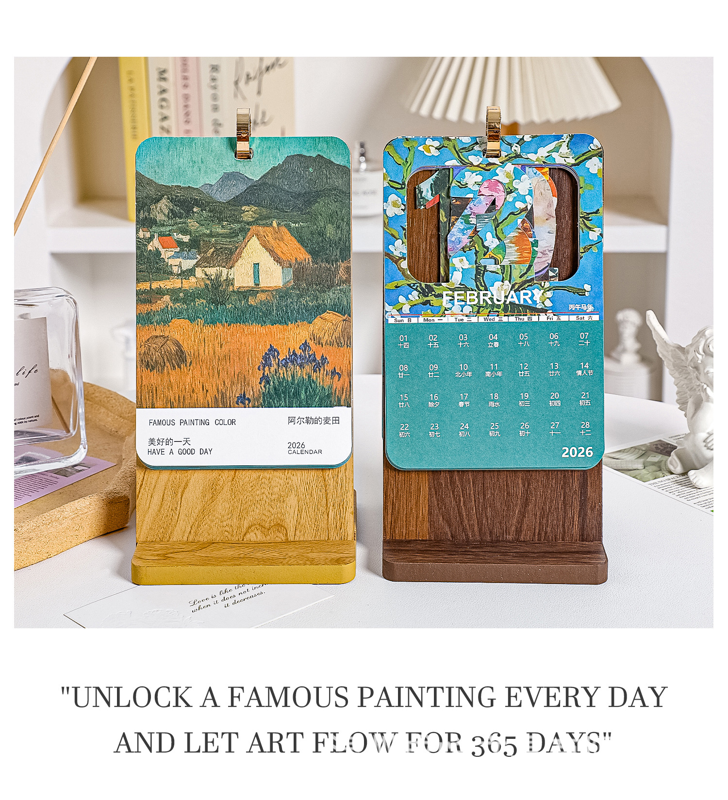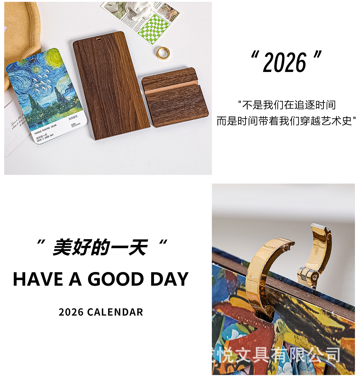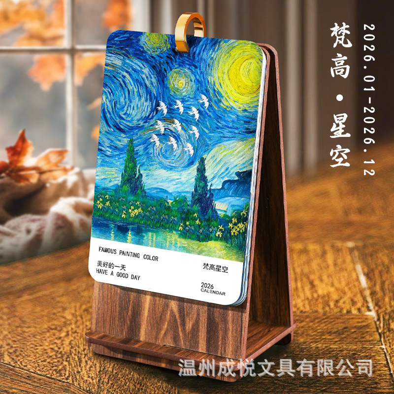 新款2026油画台历记事商务办公艺术创意复古梵高翻页日历厂家直销