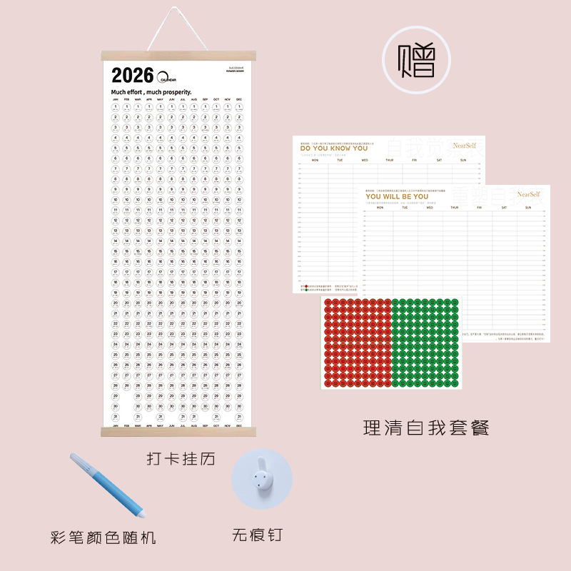 小红书爆款木质日历2026年ins风挂历自律打卡计划表年历单张挂墙