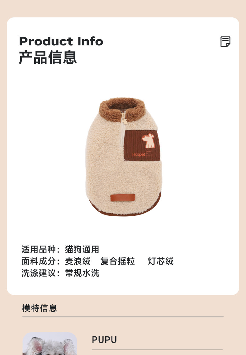 Hoopet双面绒马甲猫咪毛绒保暖冬季小狗比熊衣服狗狗秋冬季外出装