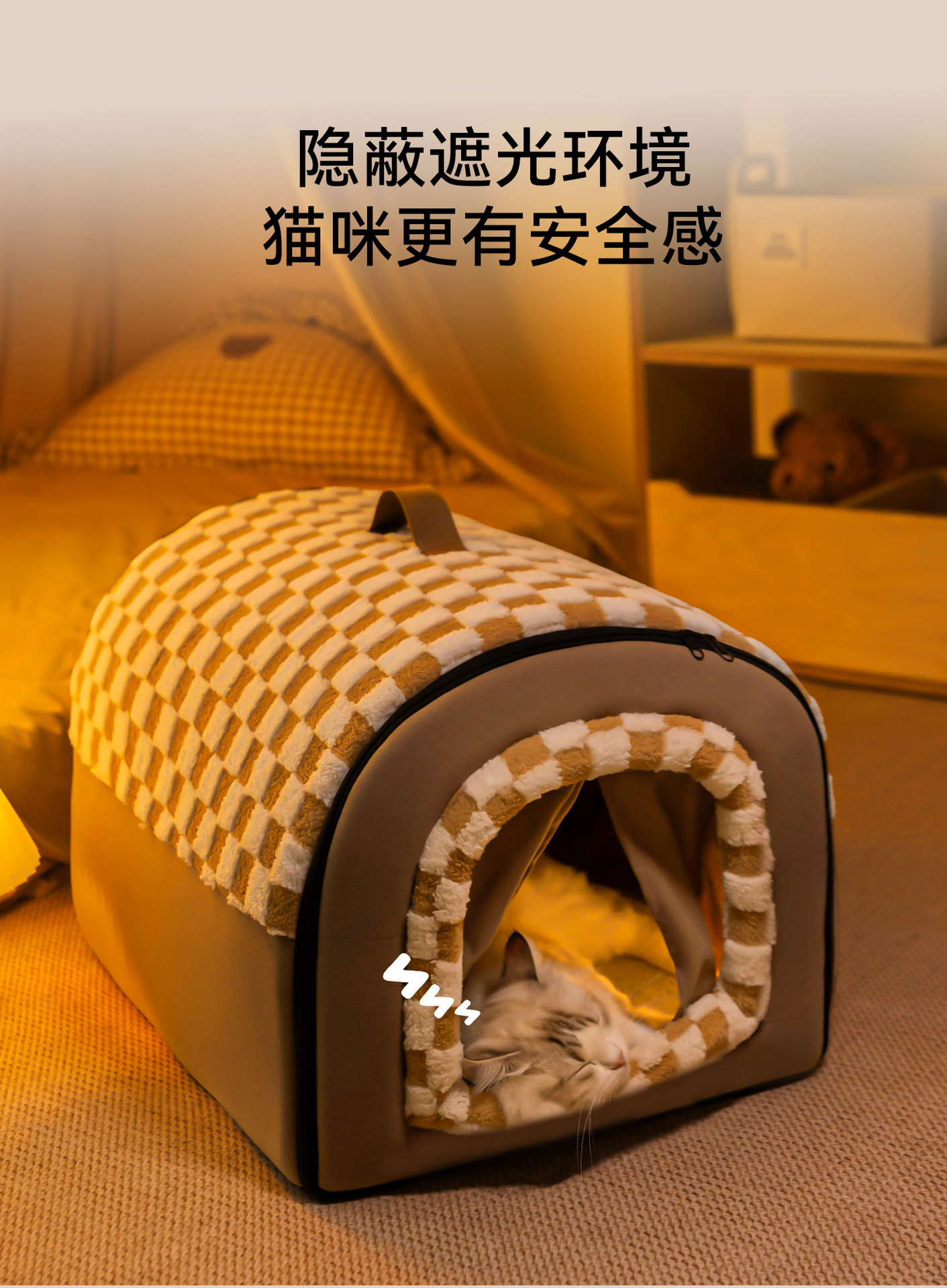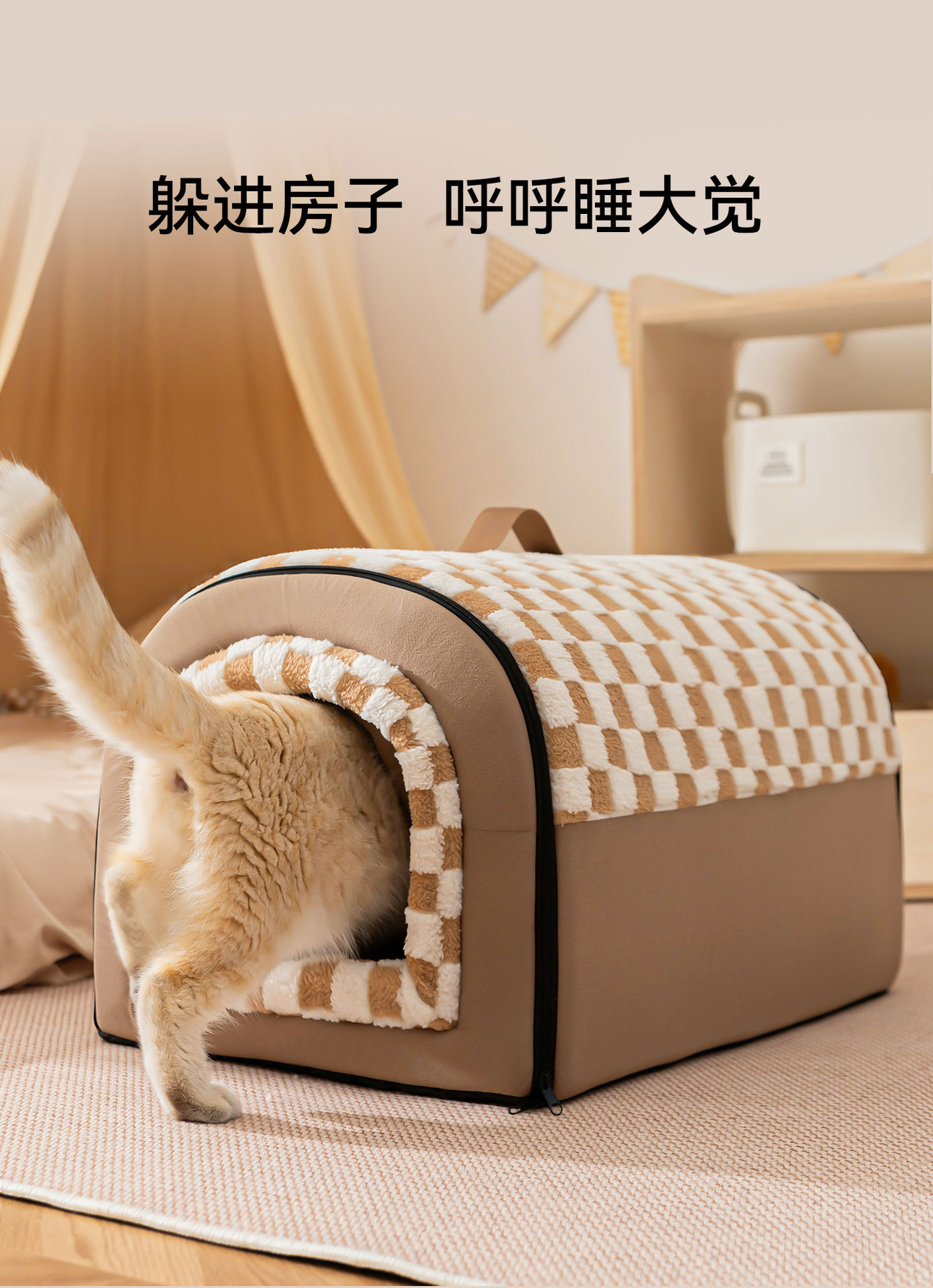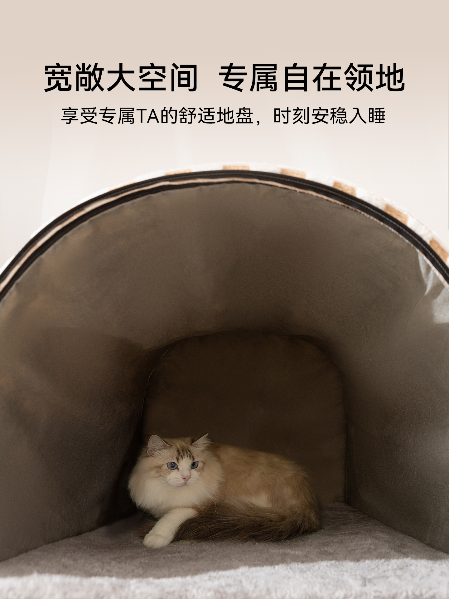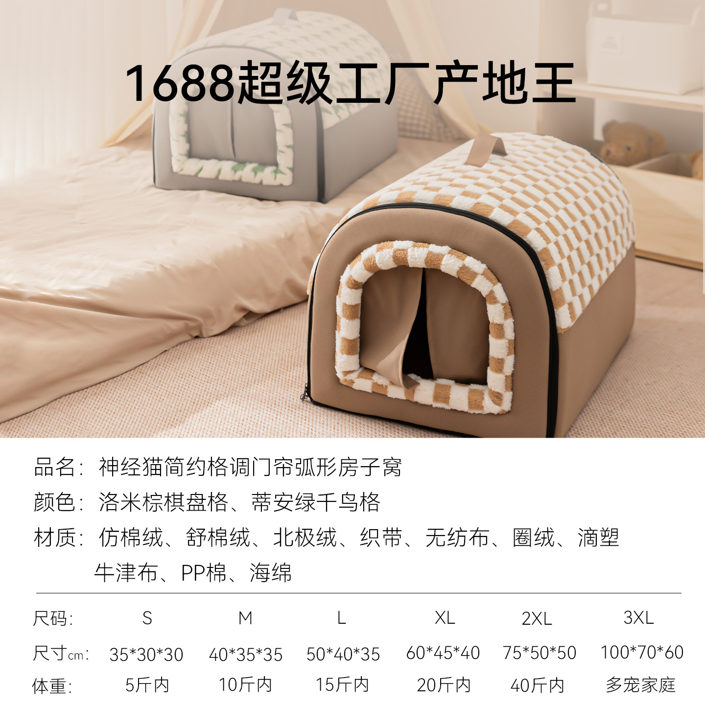 跨境亚马逊新款宠物窝秋冬加厚弧形房子窝大空间猫窝可拆卸狗窝床