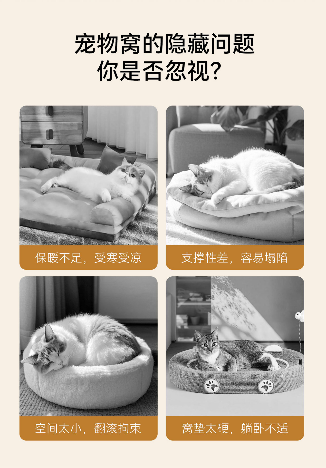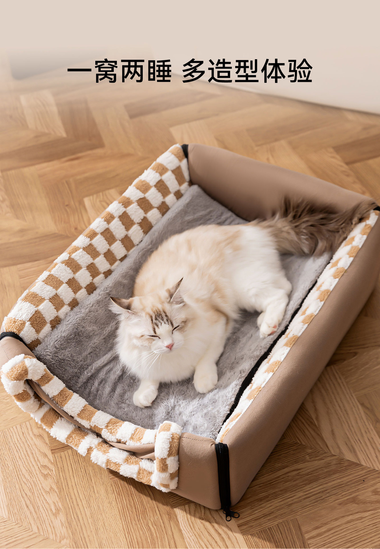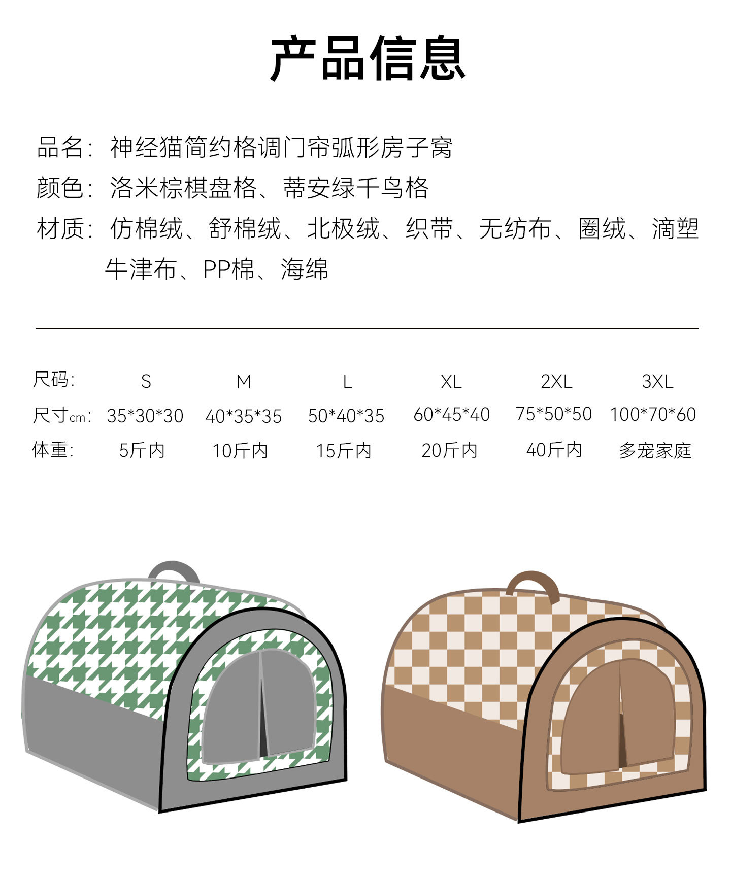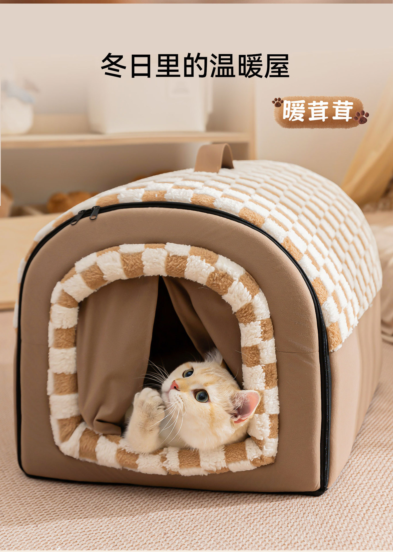 跨境亚马逊新款宠物窝秋冬加厚弧形房子窝大空间猫窝可拆卸狗窝床