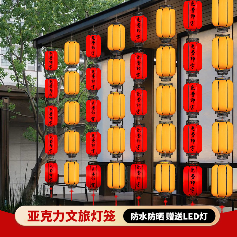 亚克力户外防水中式仿古发光灯笼吊灯火锅酒店景区装饰印字街道