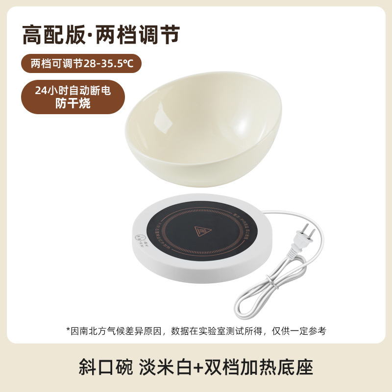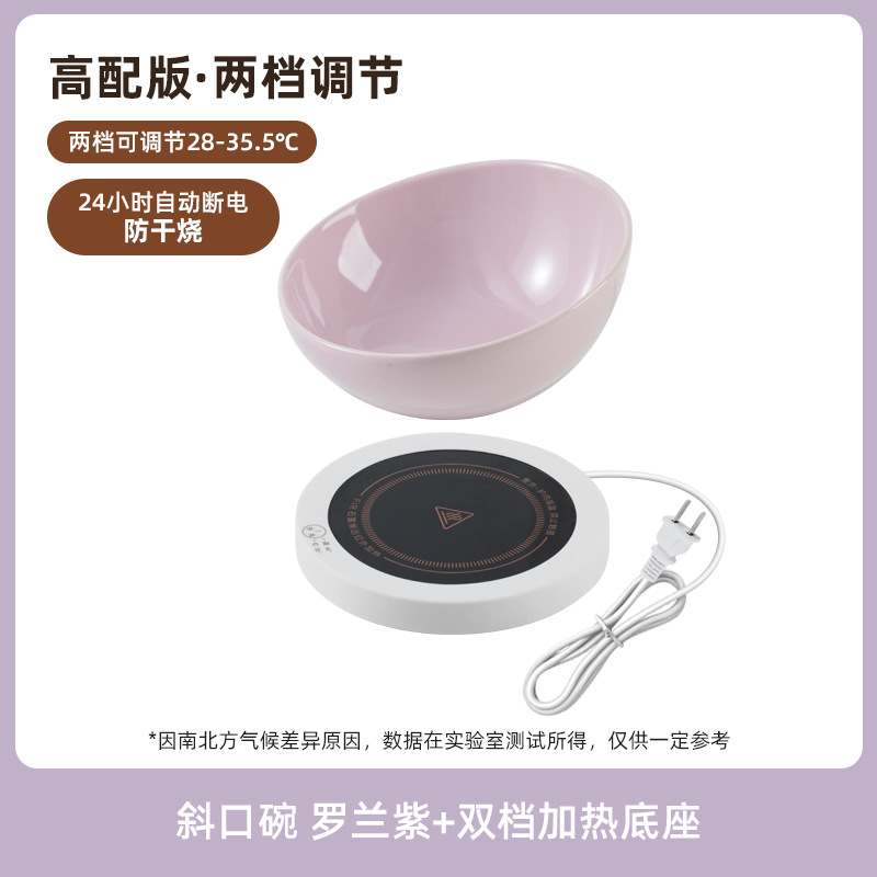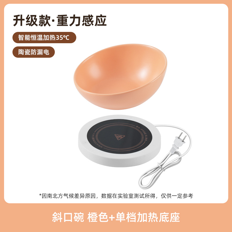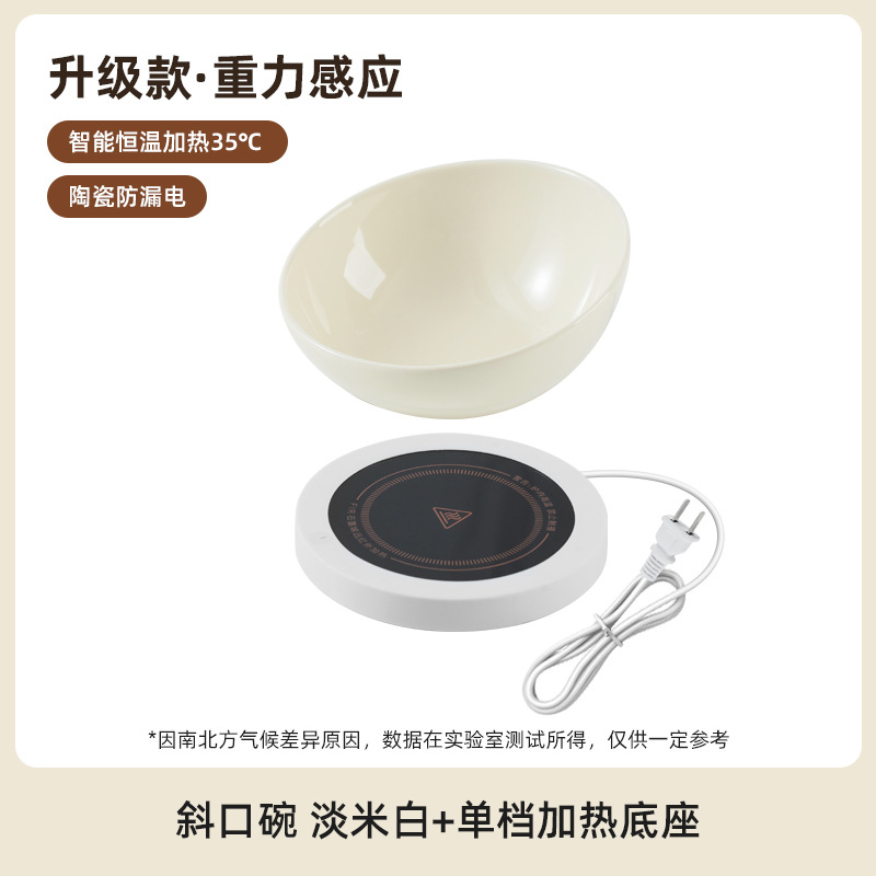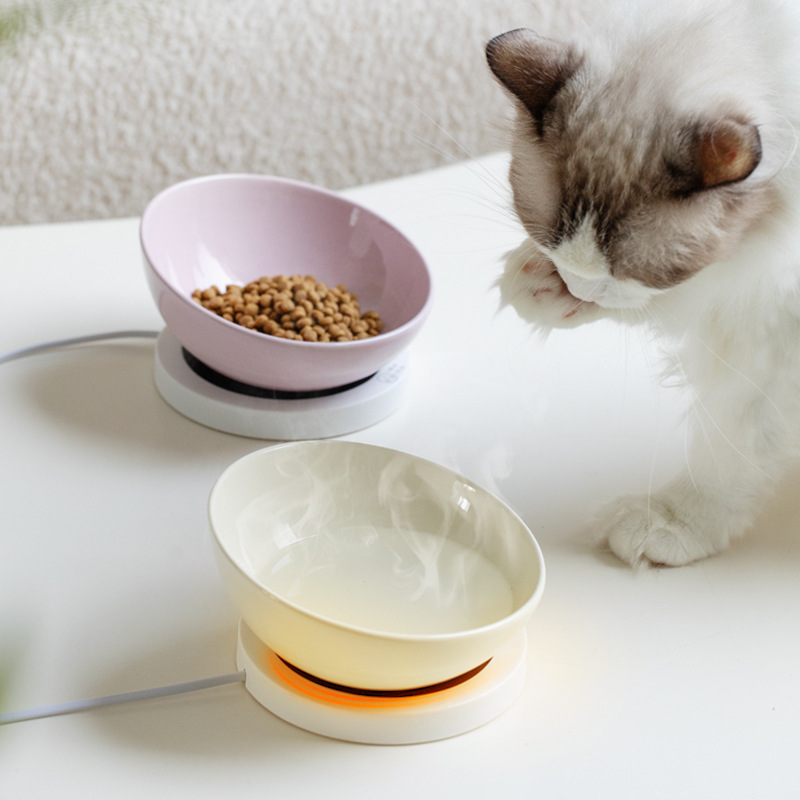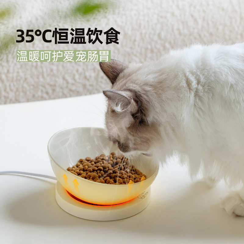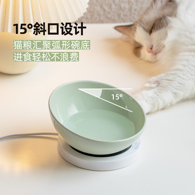 恒温加热陶瓷斜口猫咪温水饮水碗护颈椎猫狗碗宠物喂水喝水碗粮碗