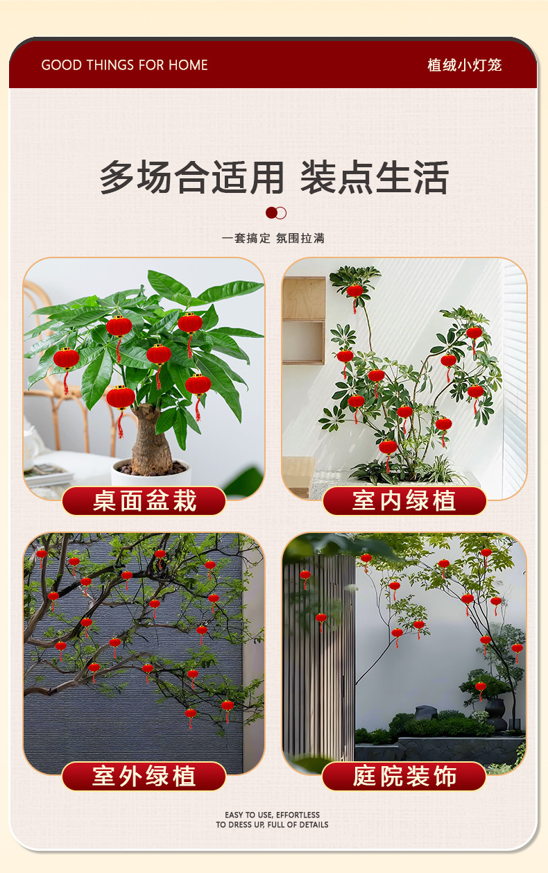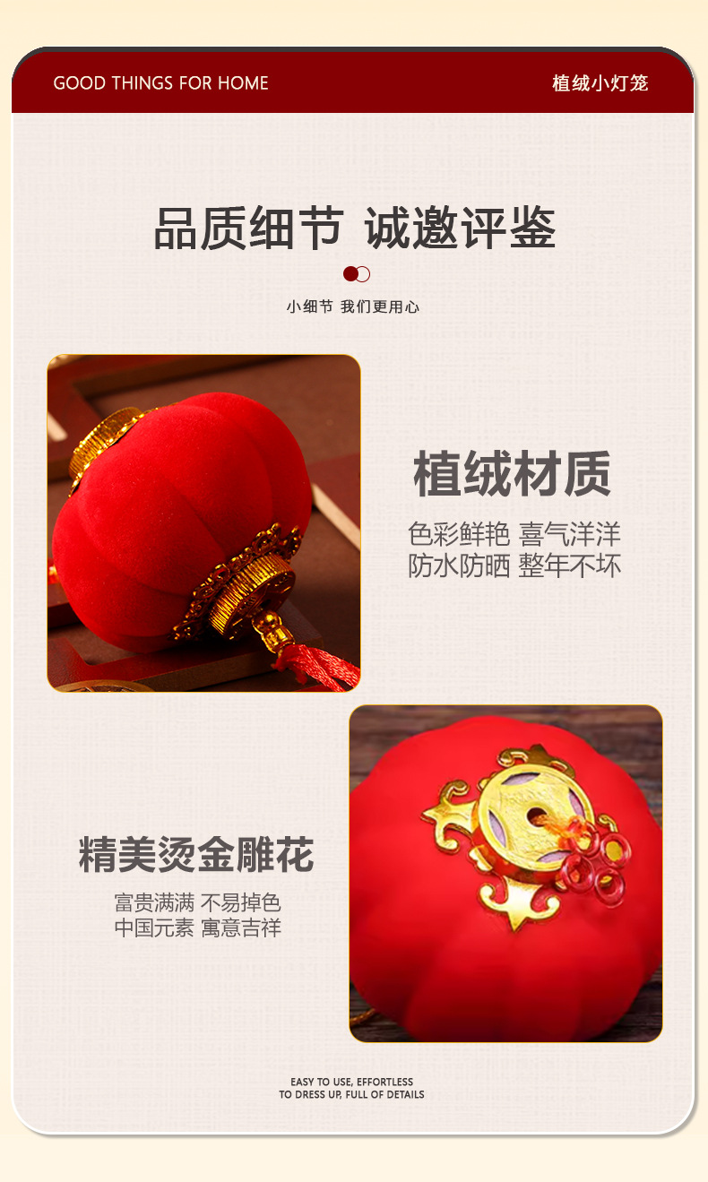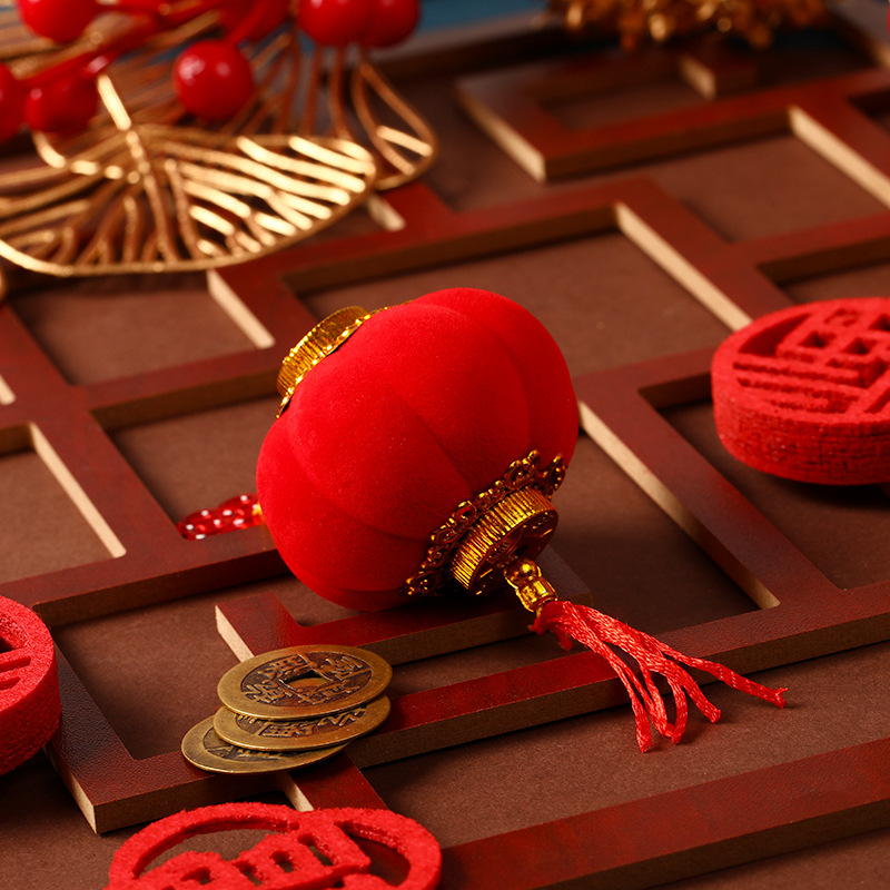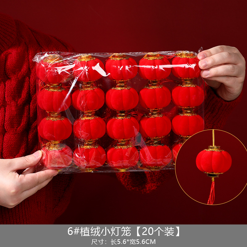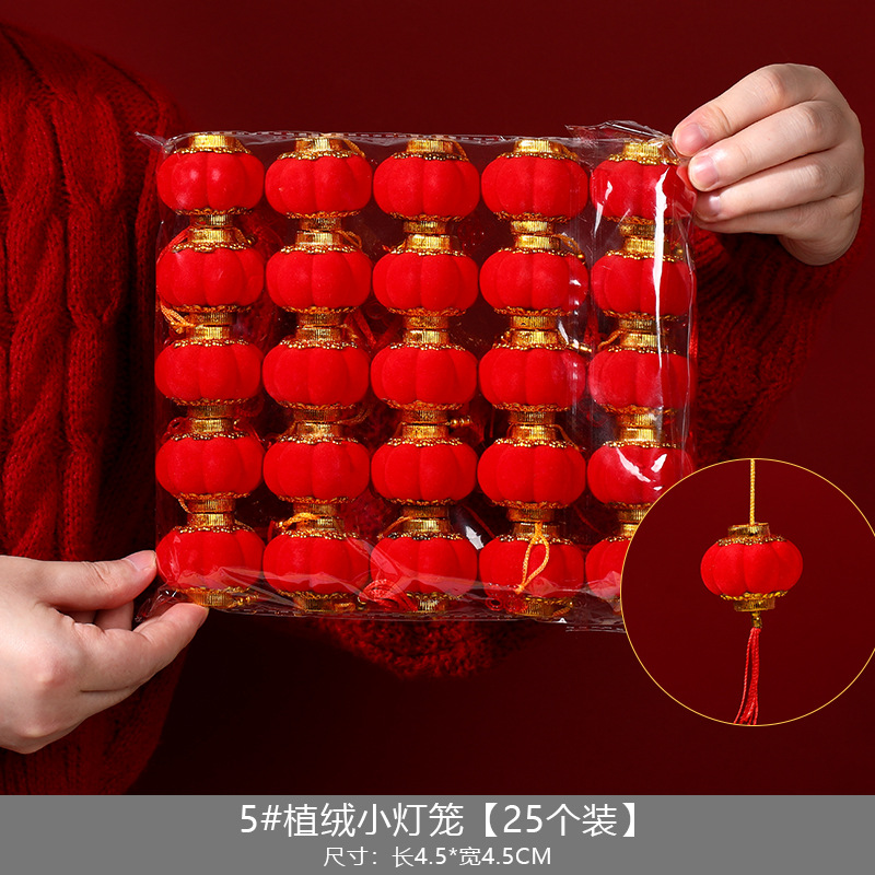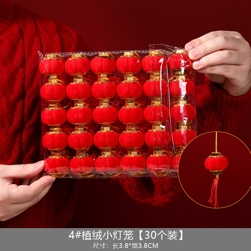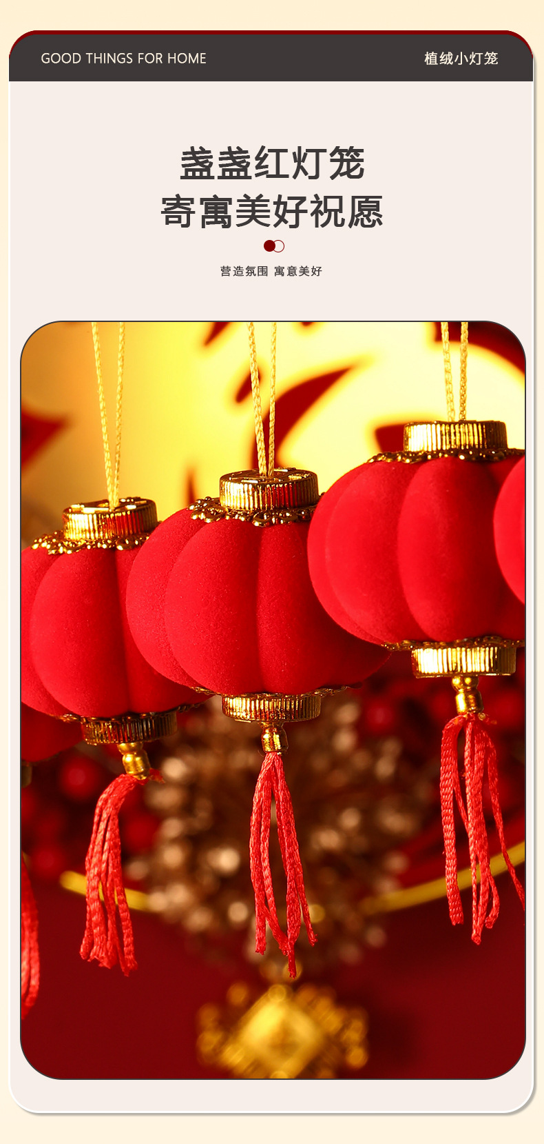 新年小挂饰小灯笼挂件户外室内树上挂串挂件装饰植绒喜庆布置批货