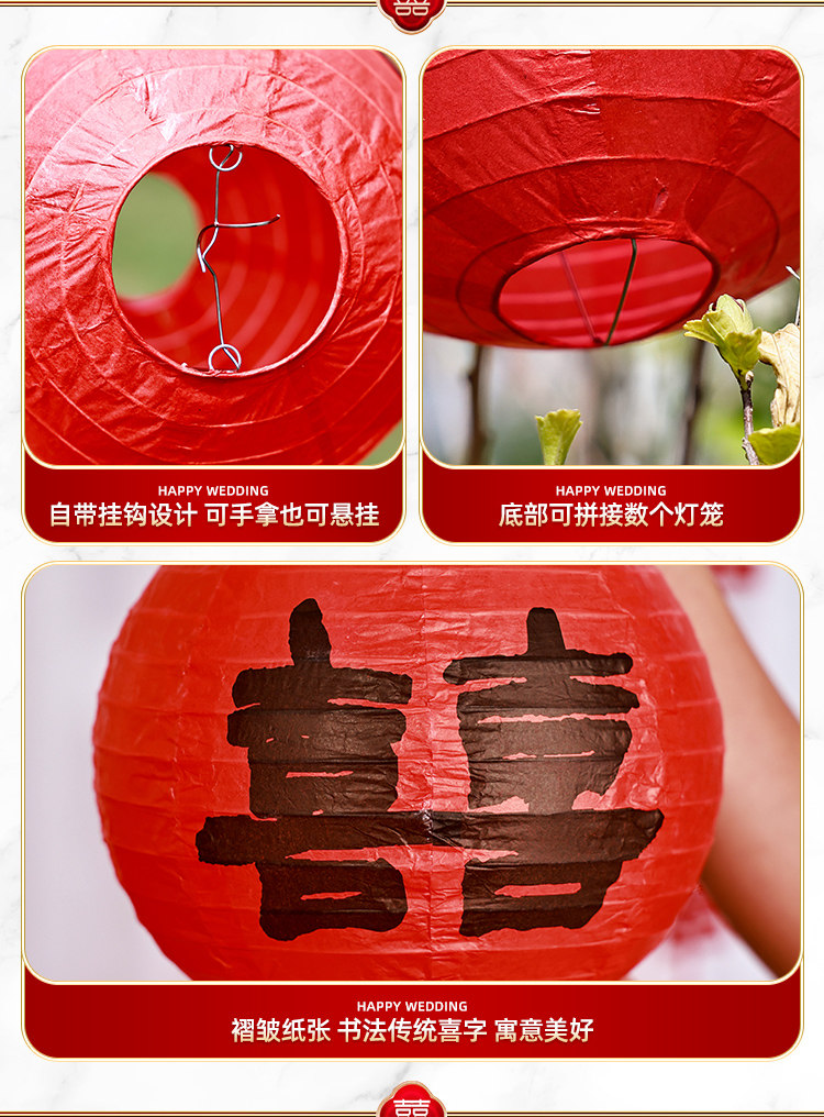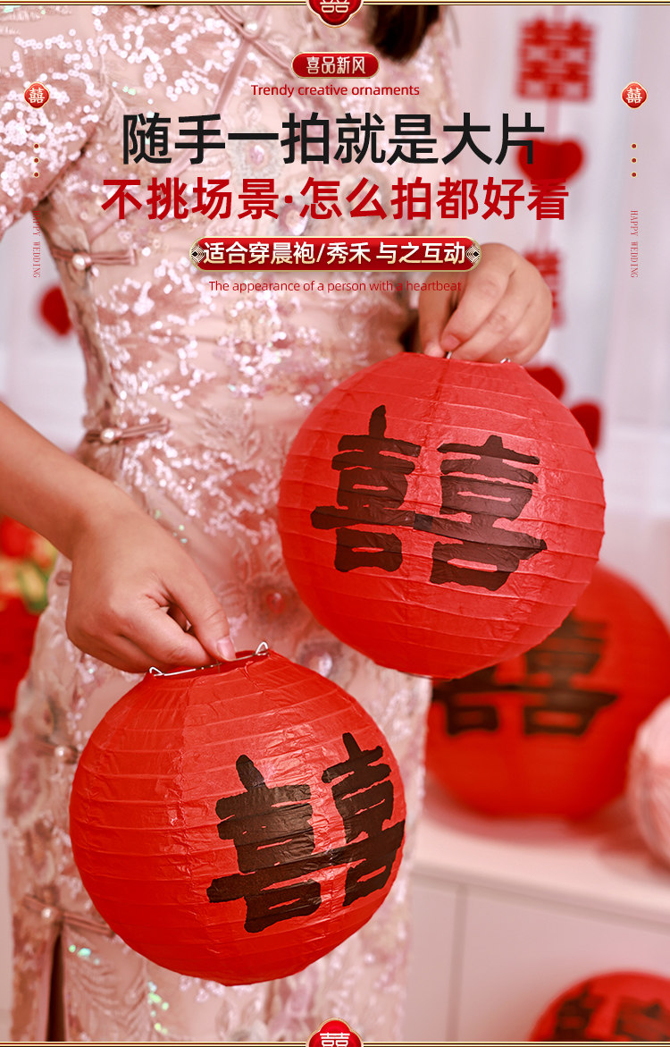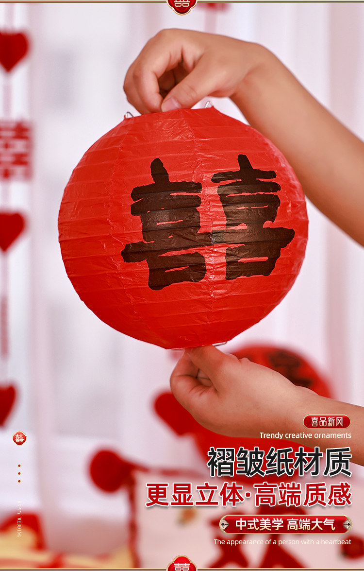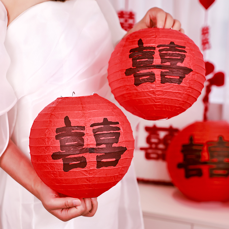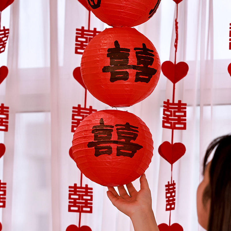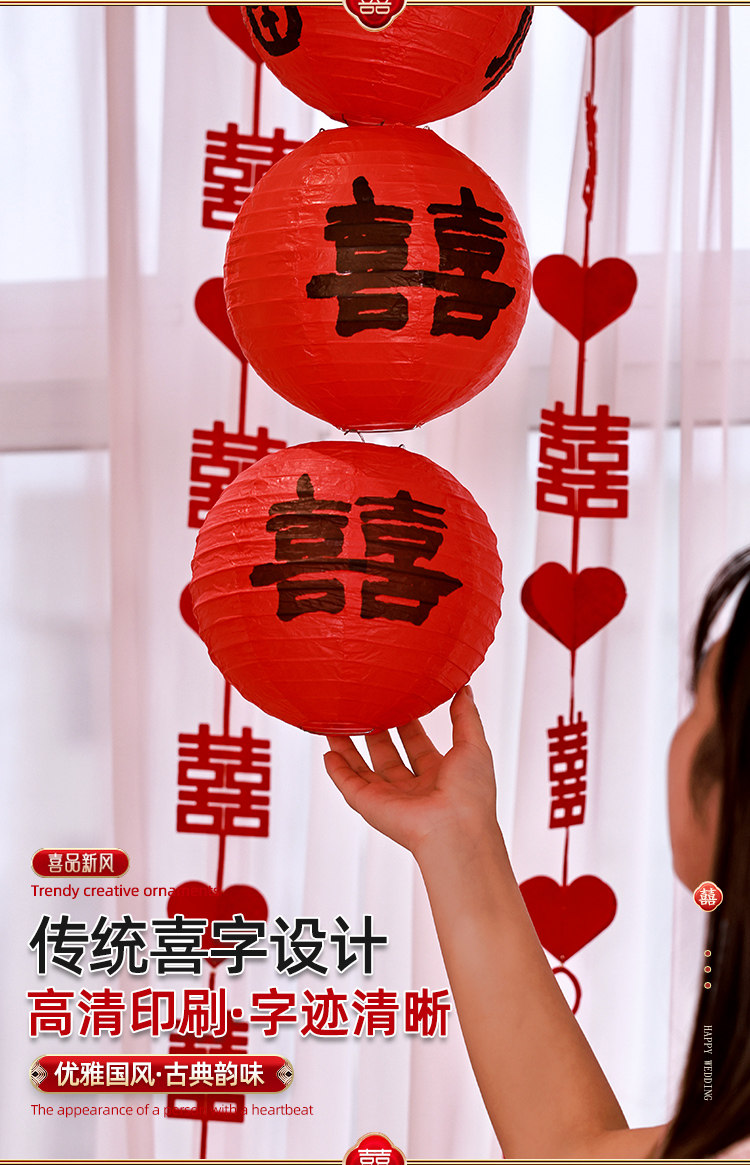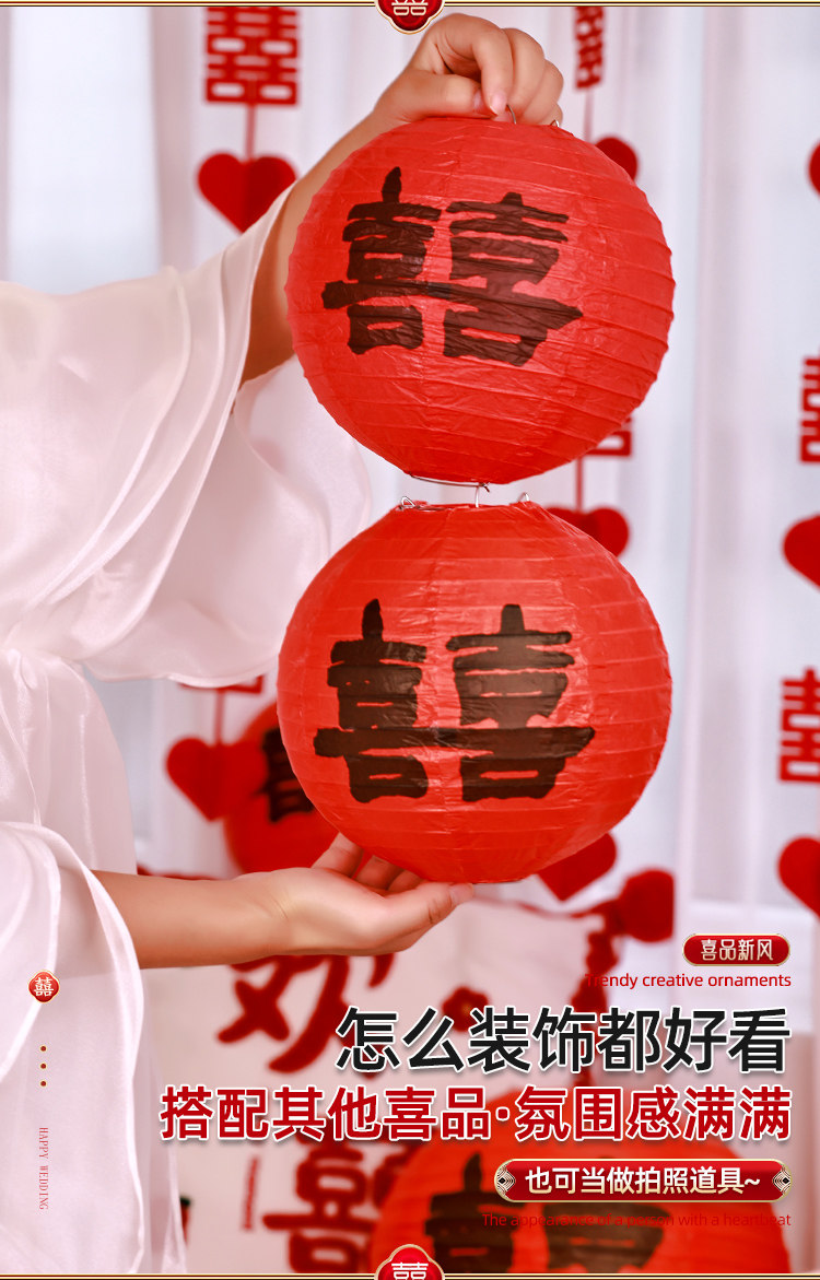 红色喜字灯笼结婚婚房布置装饰女方卧室婚礼晨袍拍照道具纸灯笼喜
