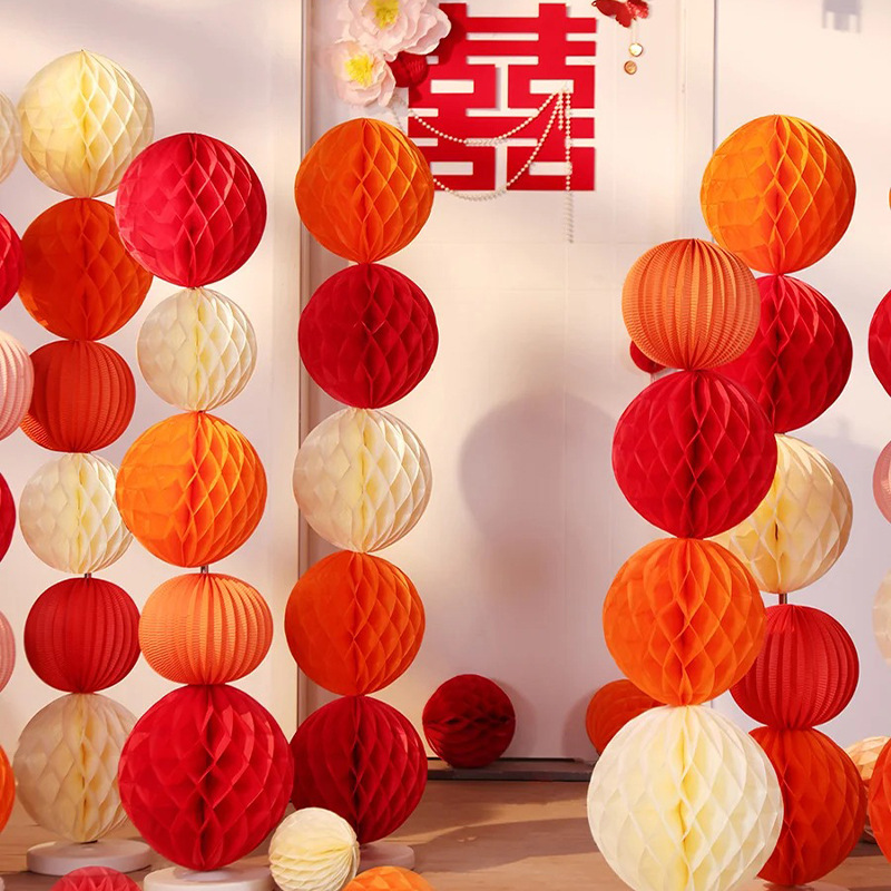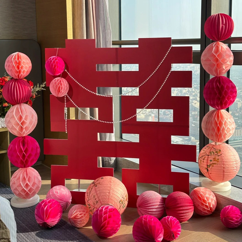 蜂窝球立柱婚房布置套装结婚卧室客厅装饰婚礼灯笼用品大全男女方