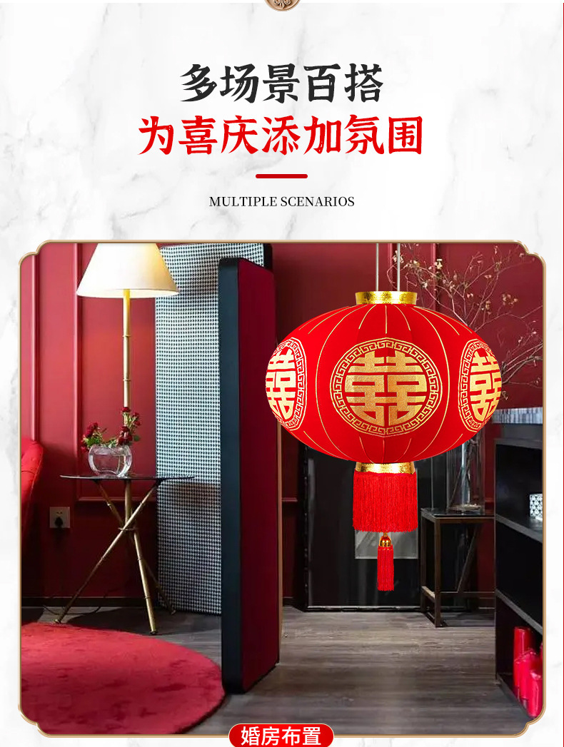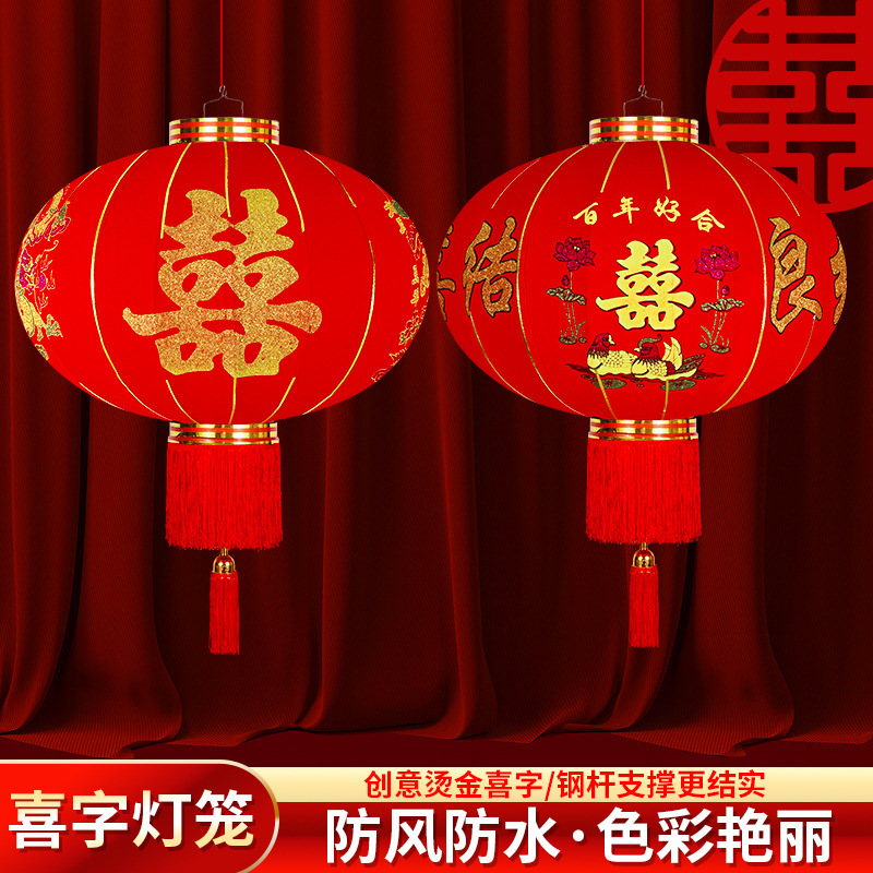 新年大红灯笼结婚喜字灯笼春节婚庆户外防水植绒灯笼乔迁阳台灯笼