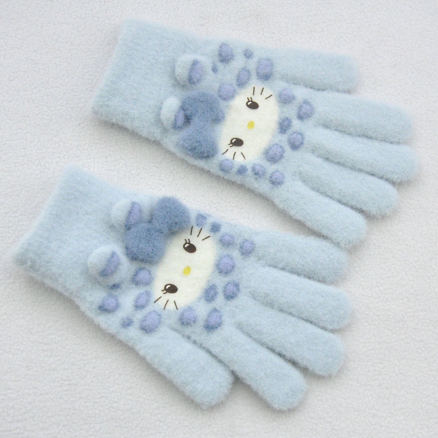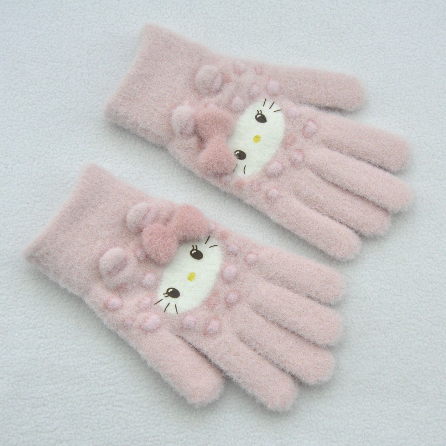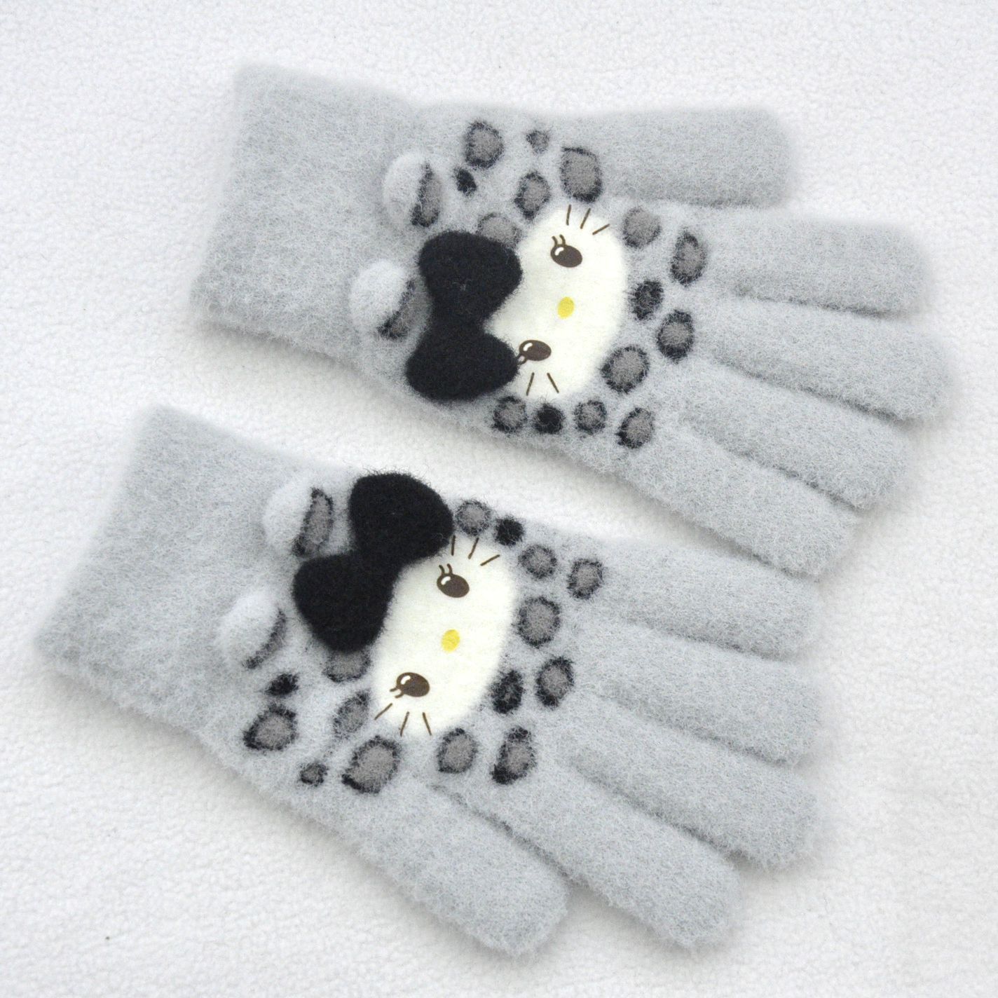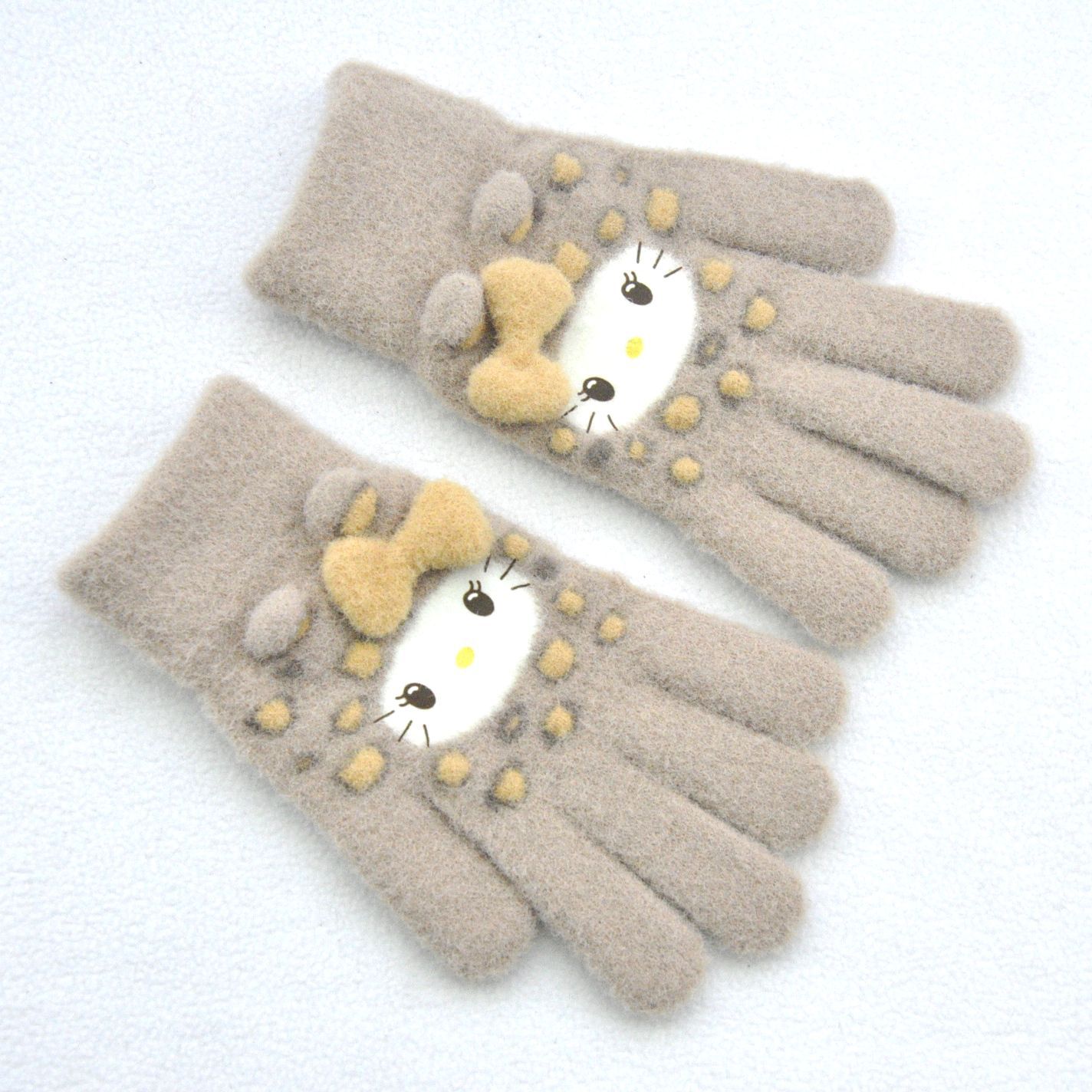 新款 加绒加厚女士可爱小猫咪提花针织手套骑车防风学生触屏手套