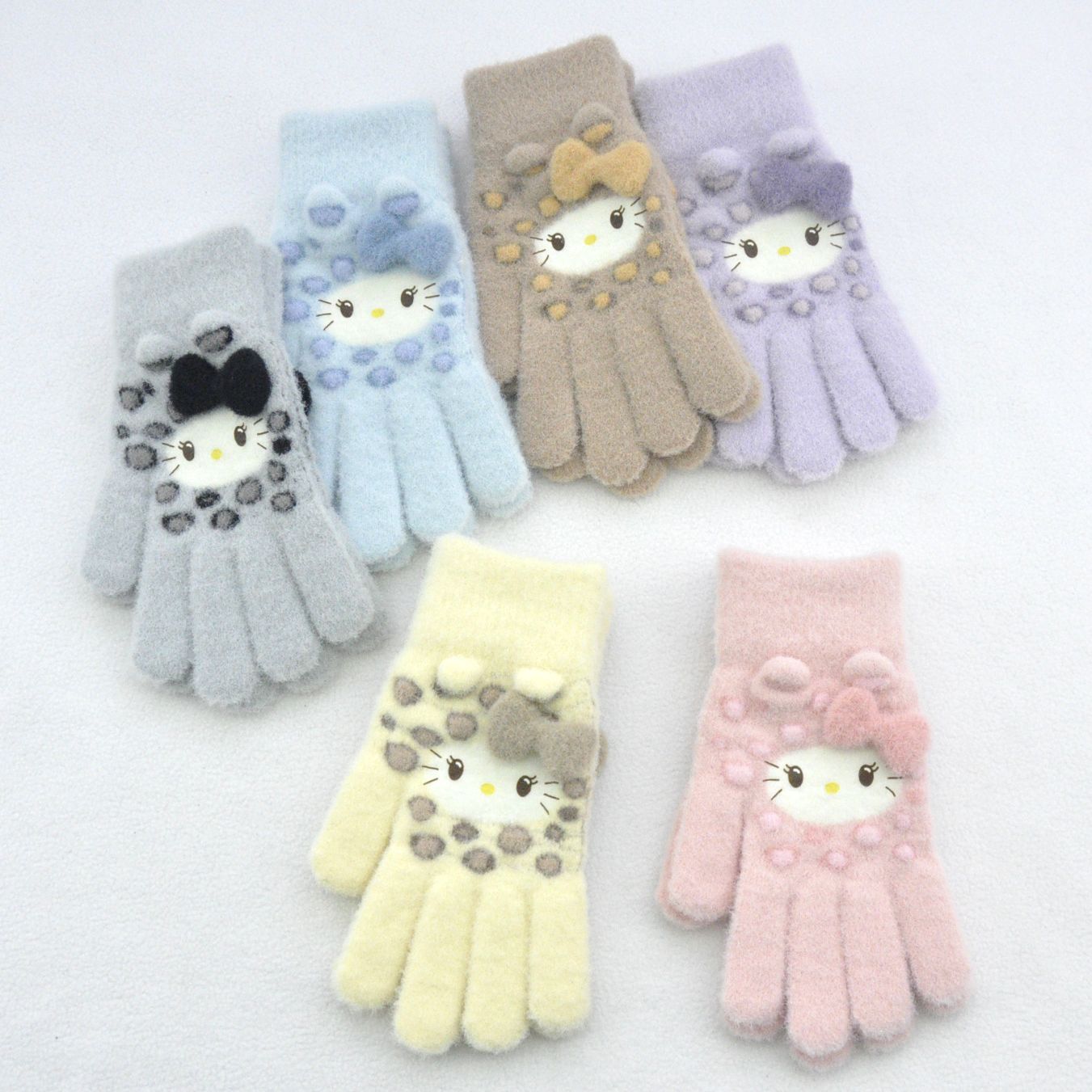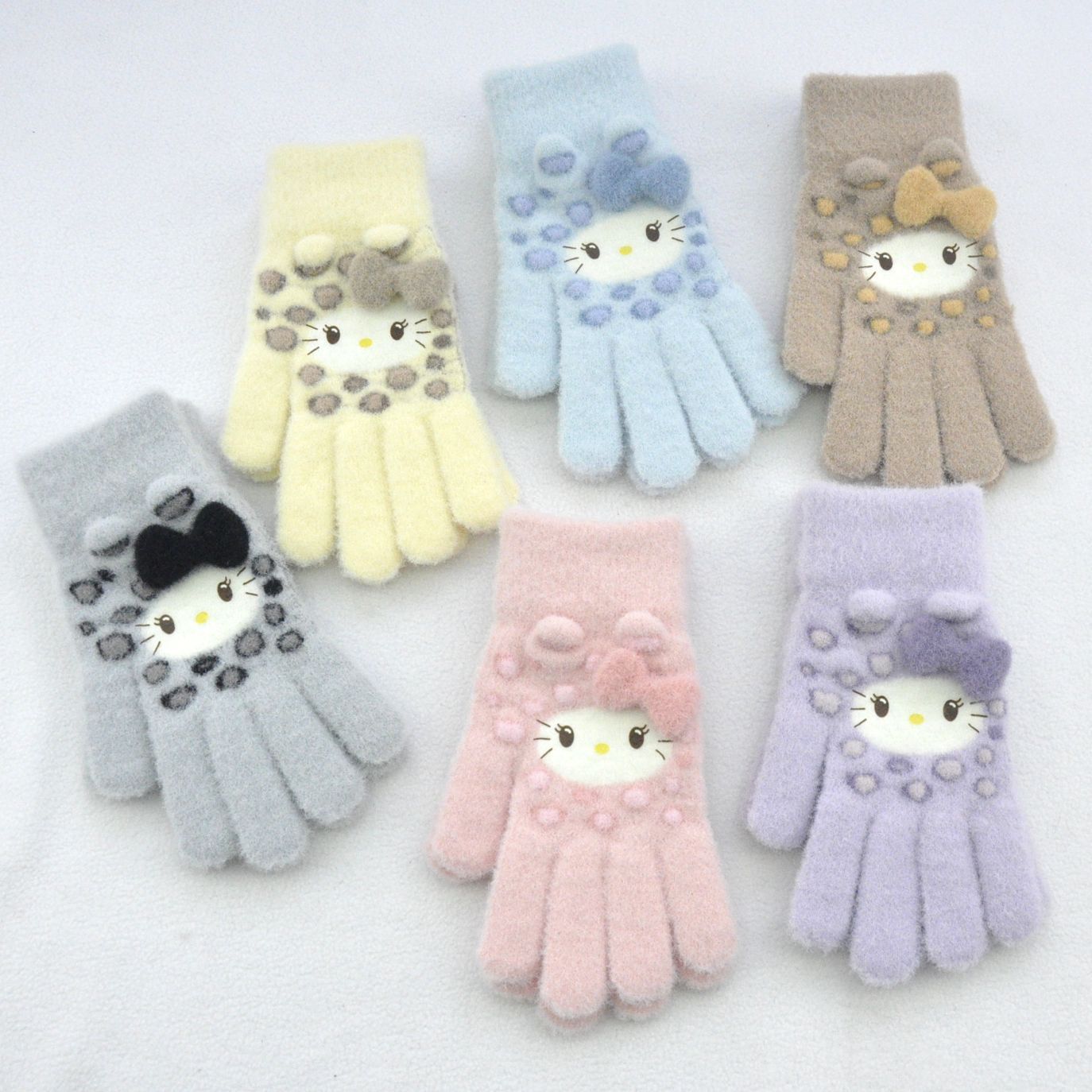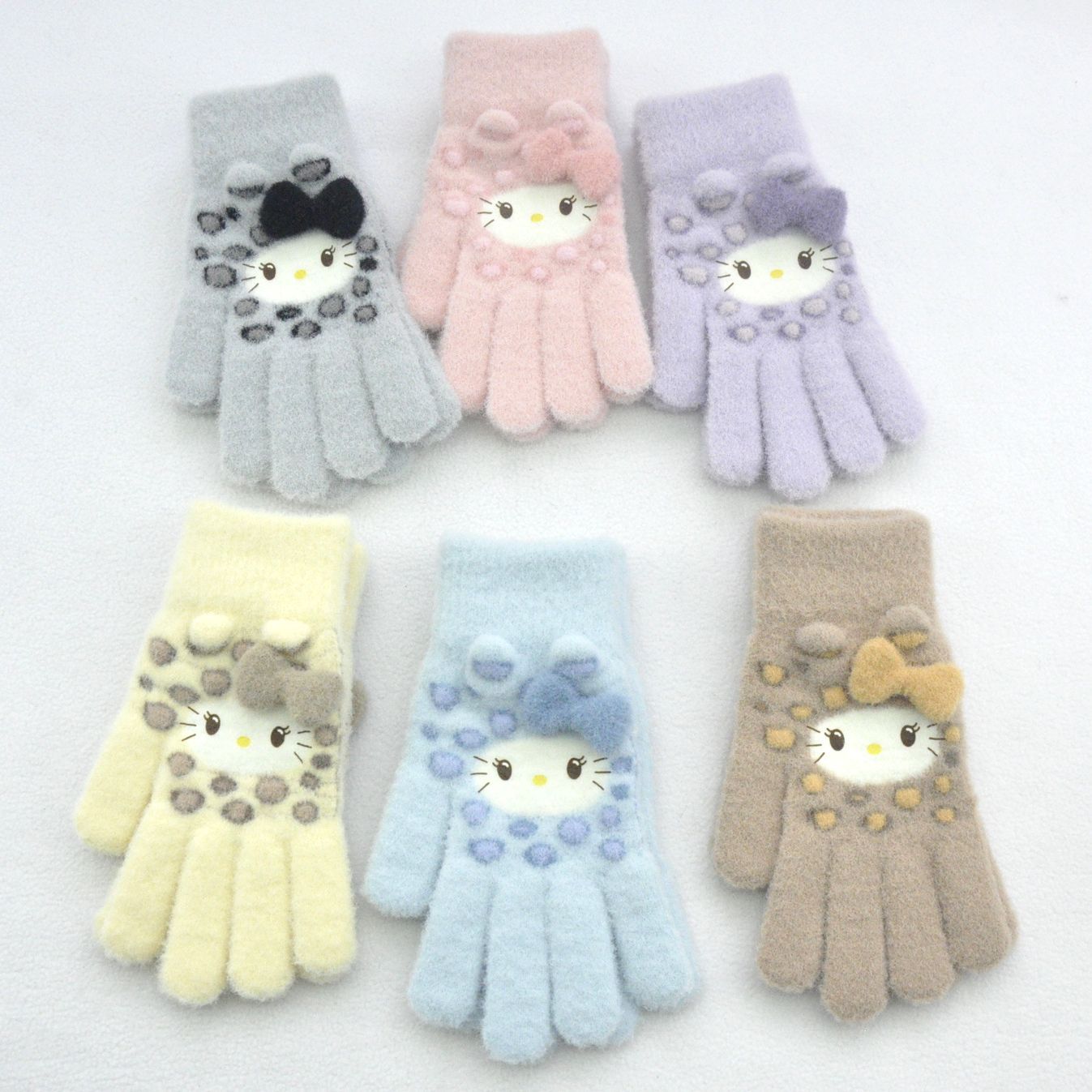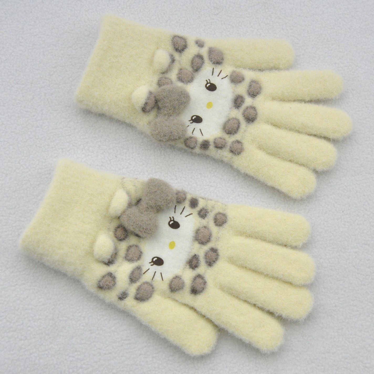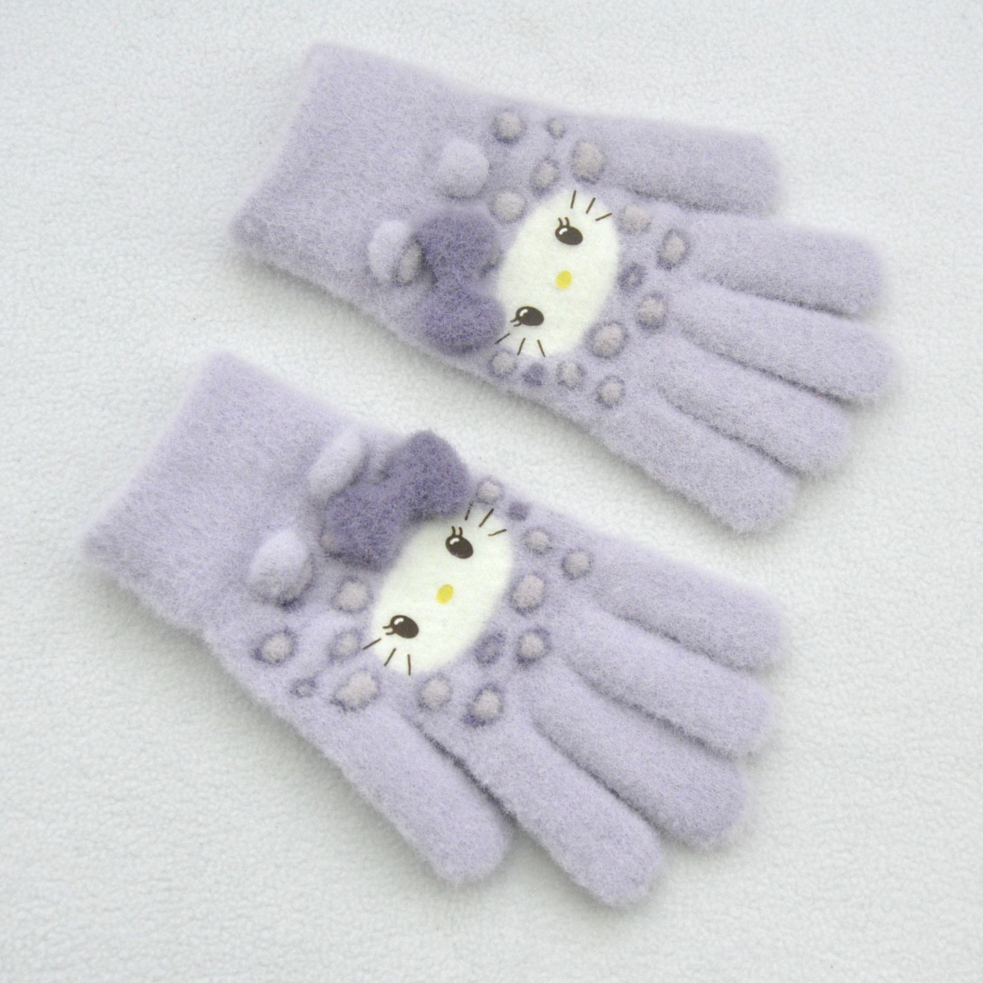 新款 加绒加厚女士可爱小猫咪提花针织手套骑车防风学生触屏手套