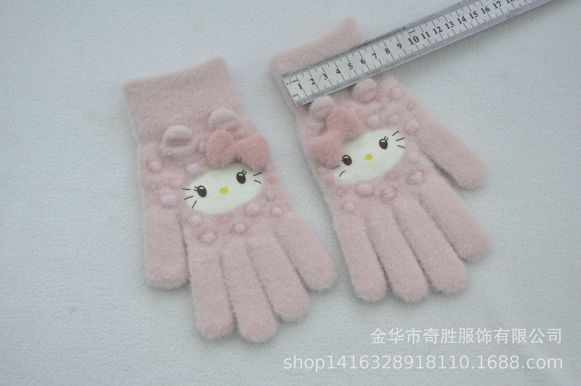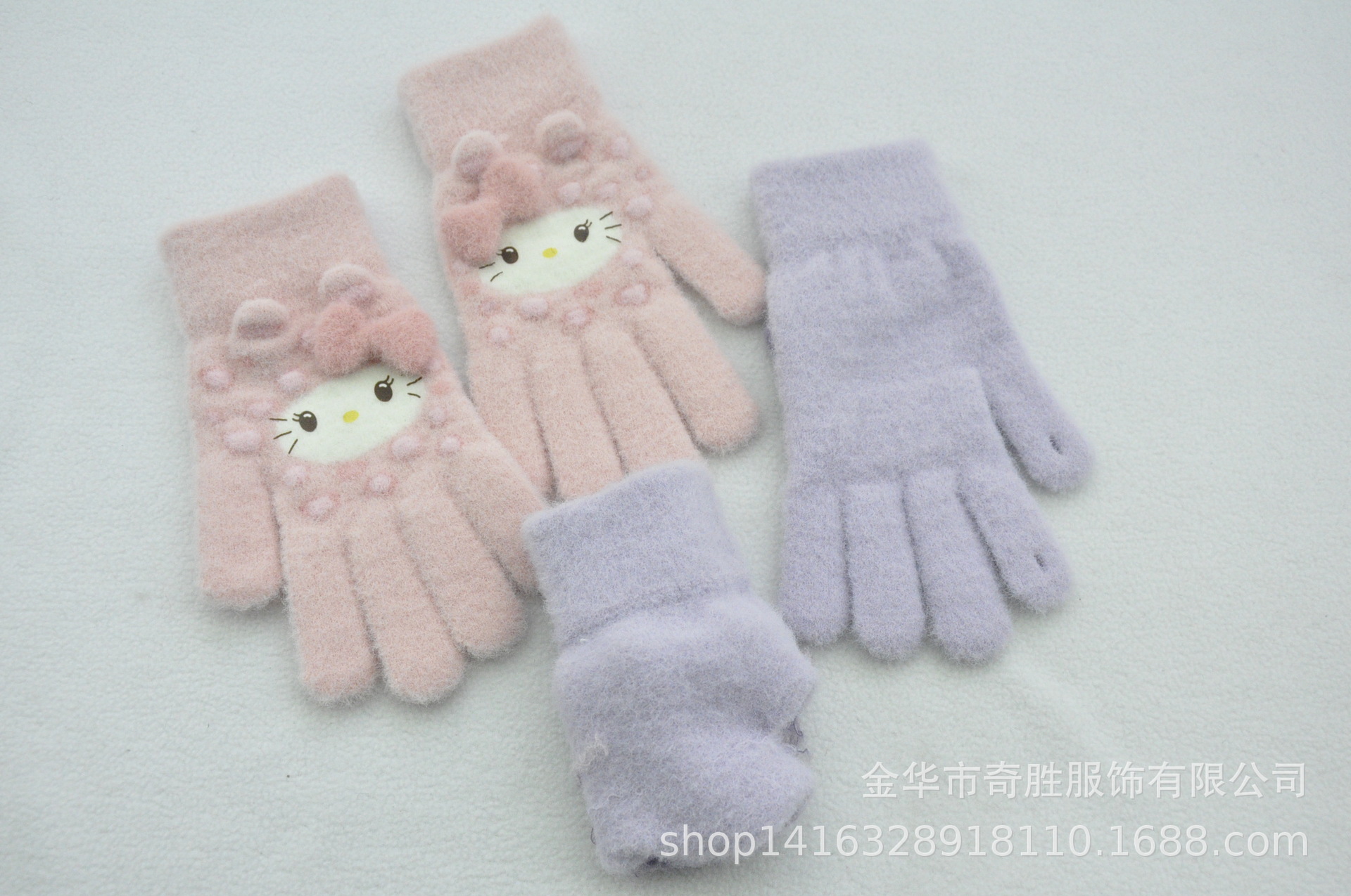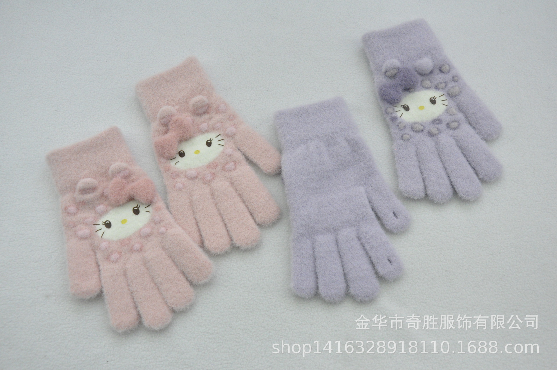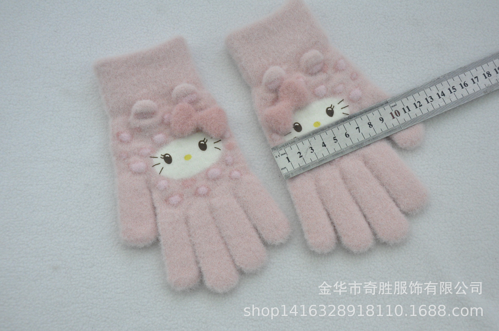 新款 加绒加厚女士可爱小猫咪提花针织手套骑车防风学生触屏手套