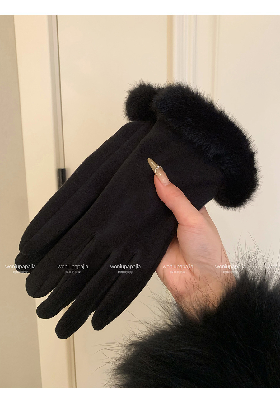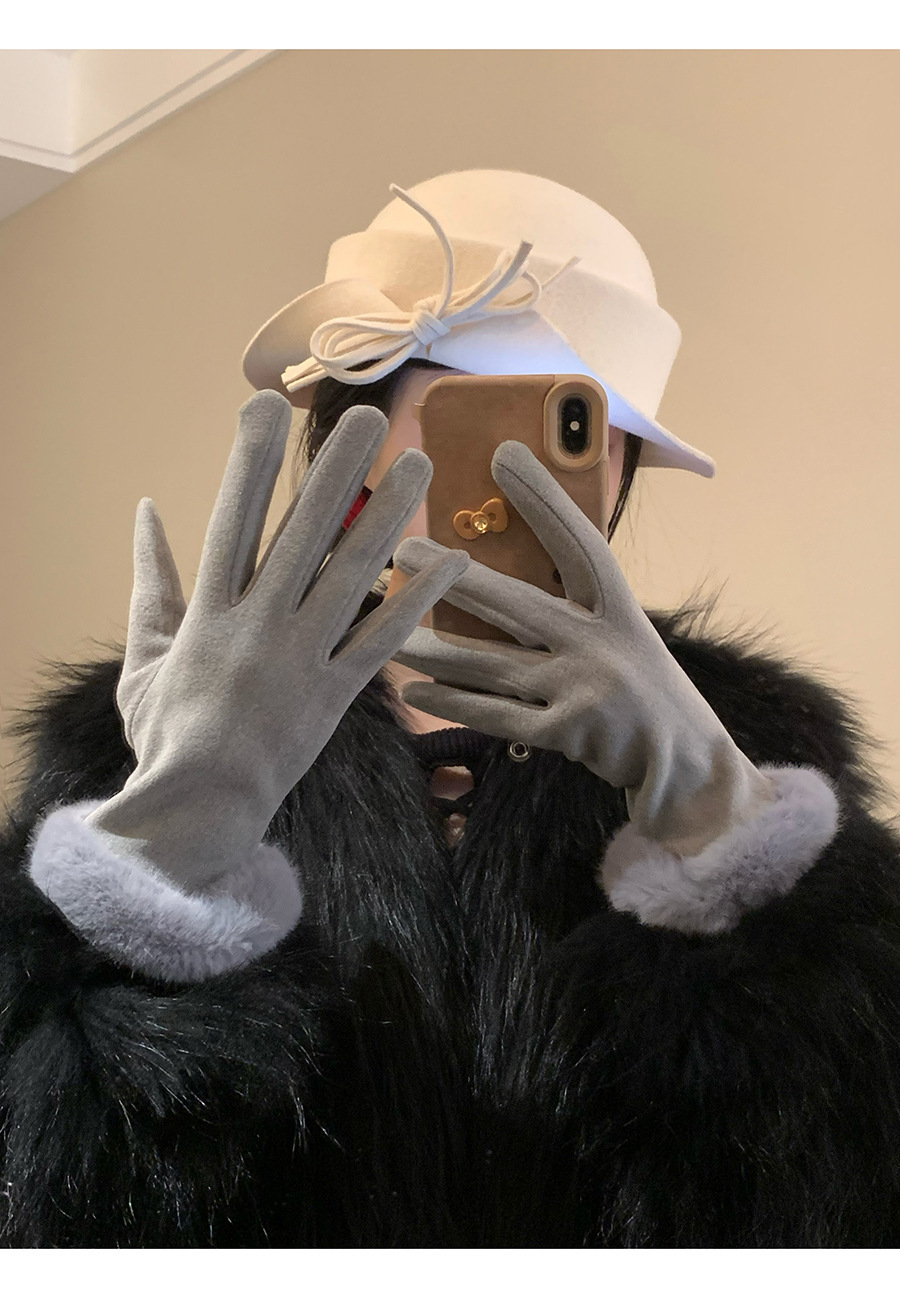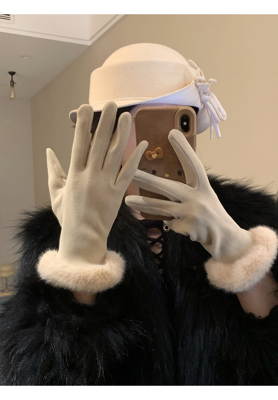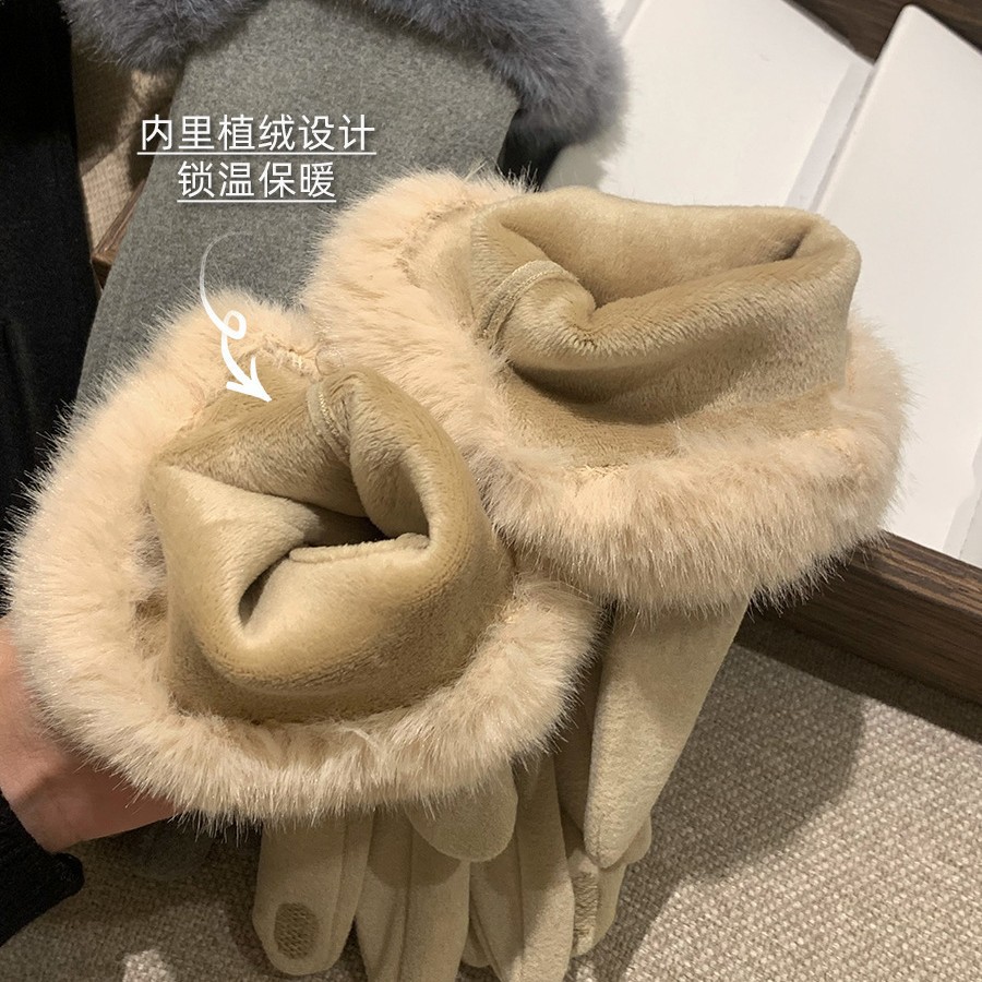 可触屏名媛千金风轻奢德绒仿兔毛手套女冬季加绒保暖防寒毛绒手套