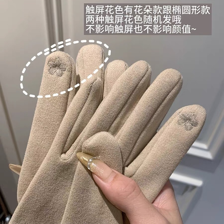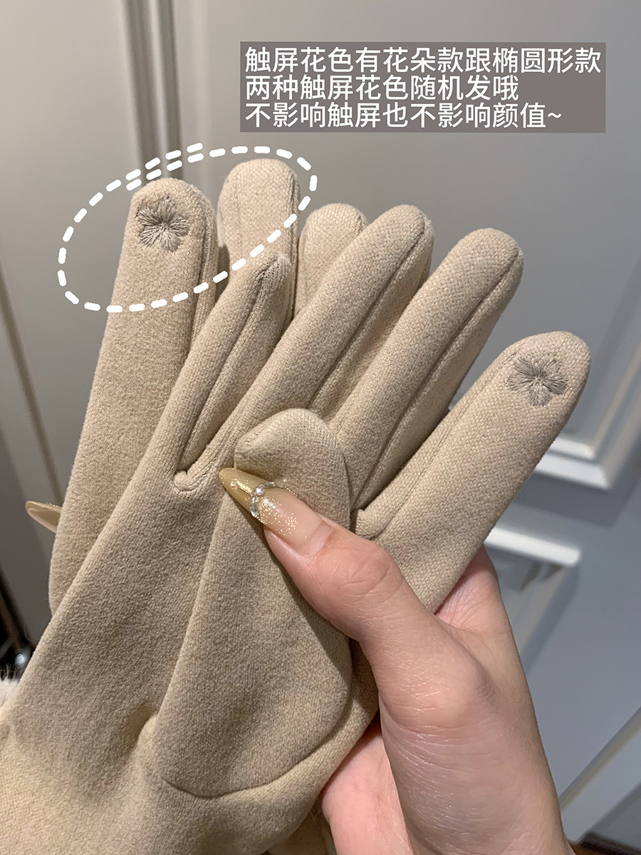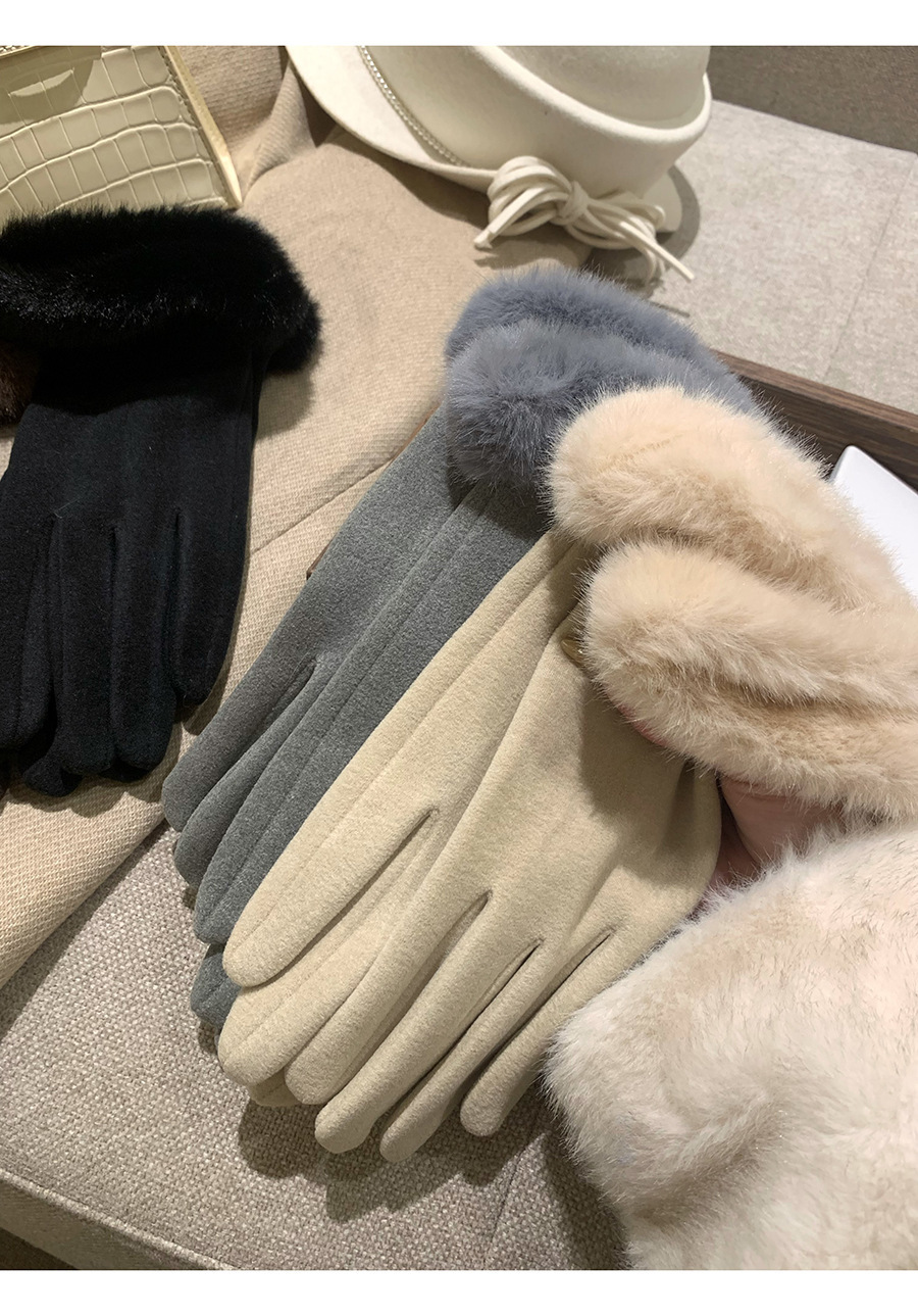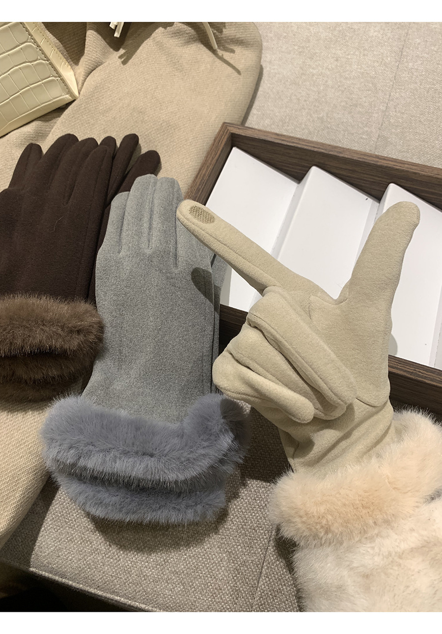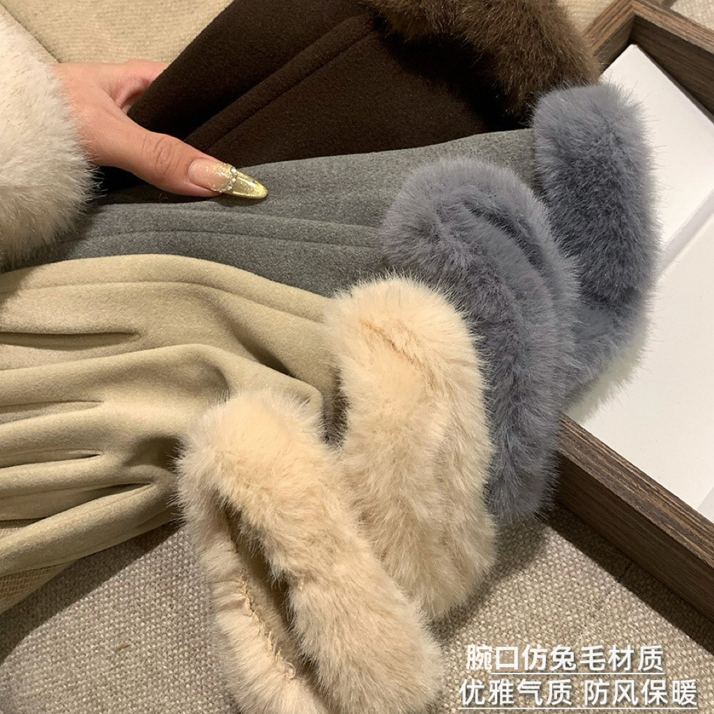 可触屏名媛千金风轻奢德绒仿兔毛手套女冬季加绒保暖防寒毛绒手套