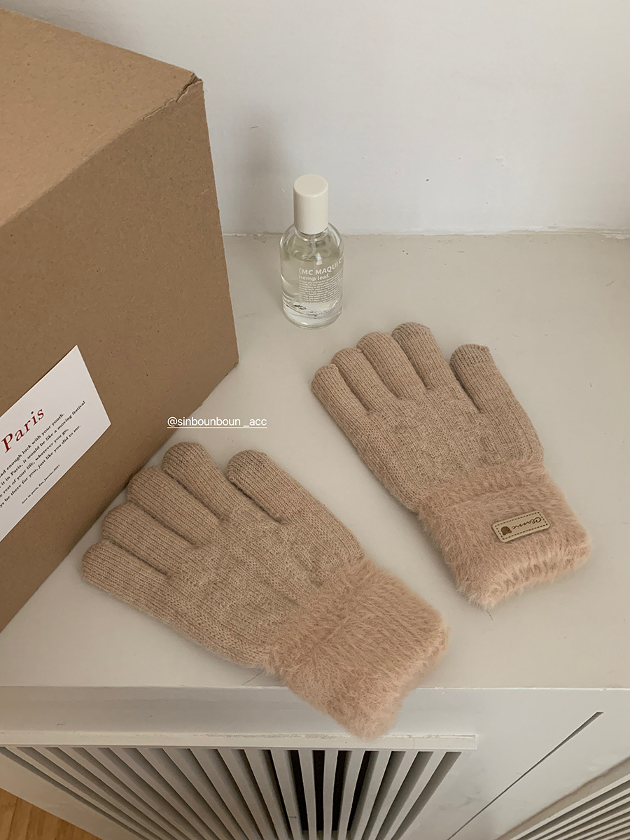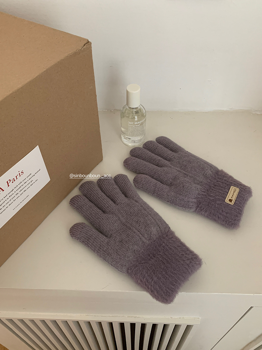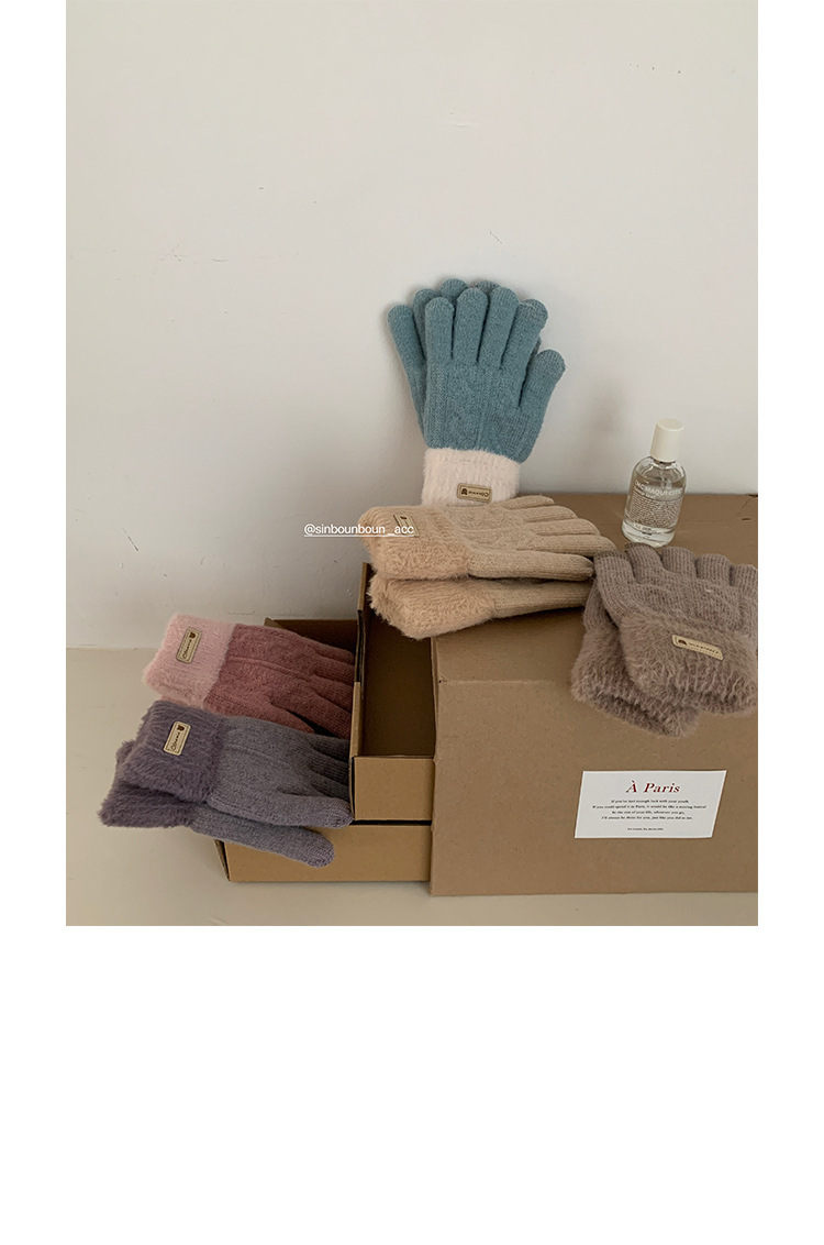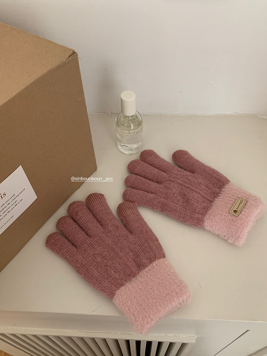 金泰韩版冬季加厚拼色手套保暖毛绒双层触屏分指针织女骑车学生