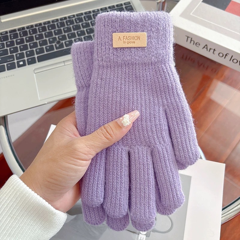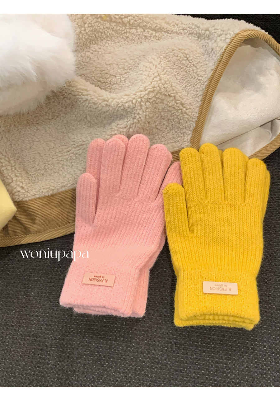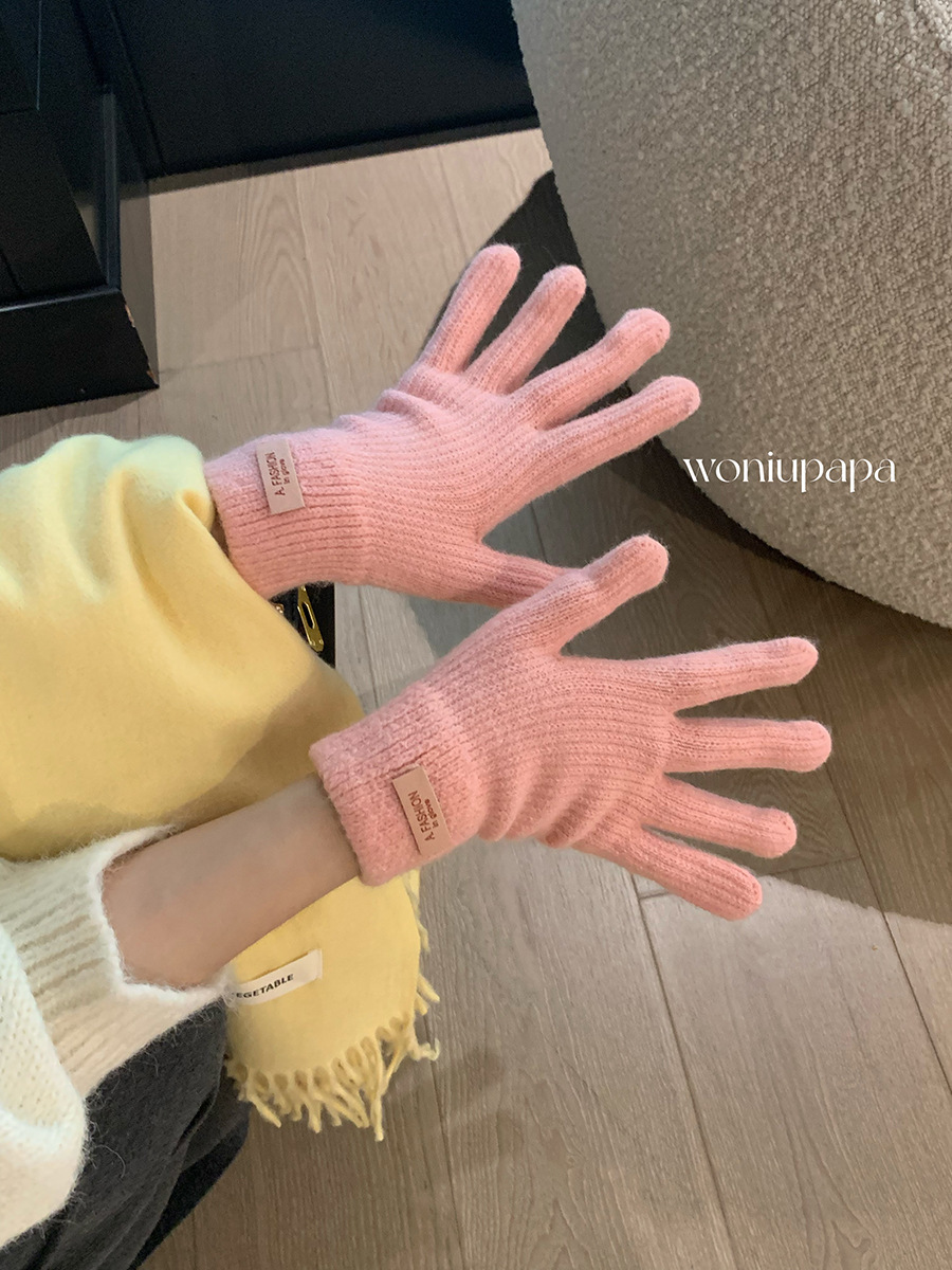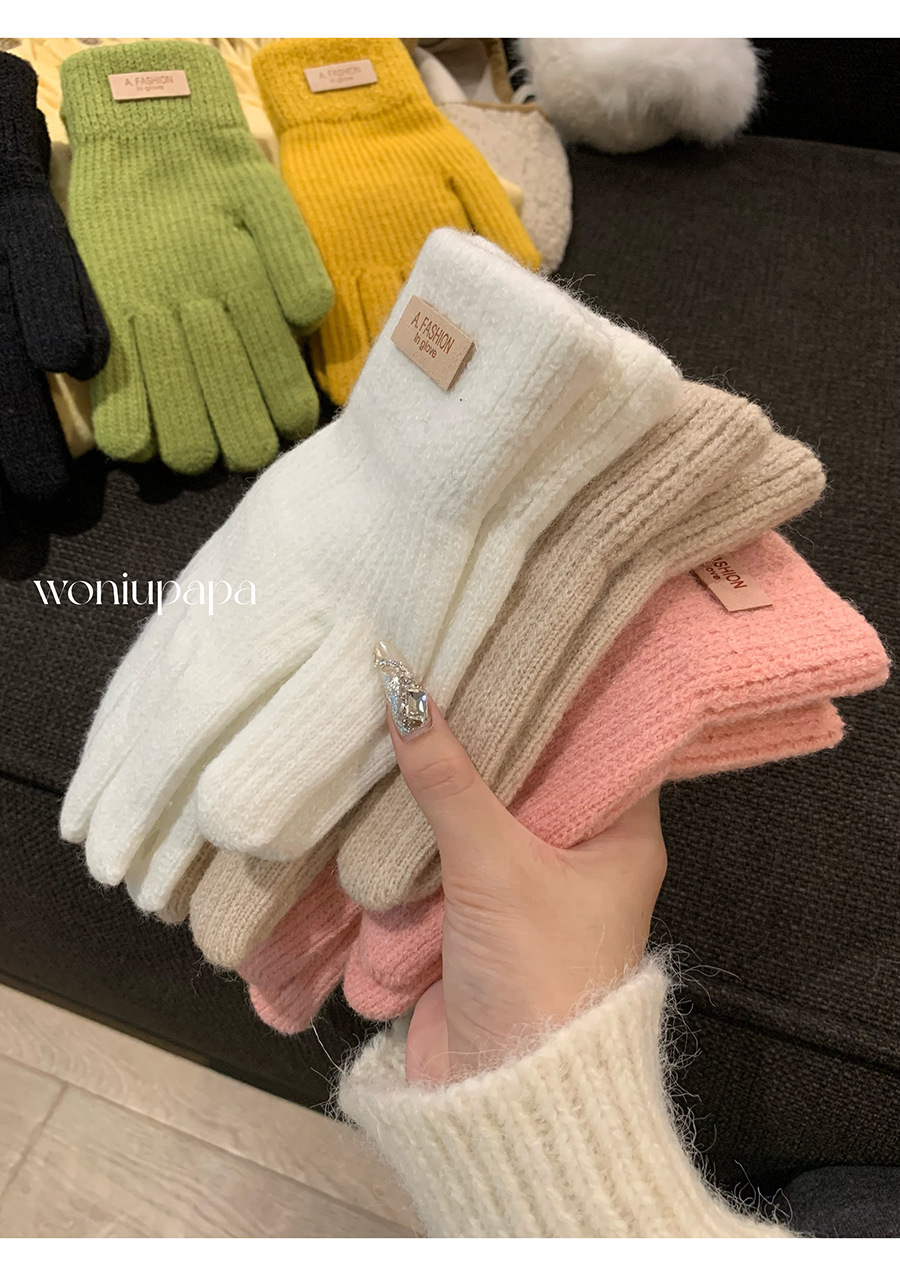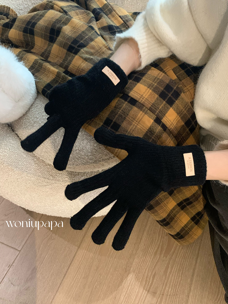 氛围感纯色针织保暖手套女2025秋冬韩系触屏新款学生百搭防冻手套