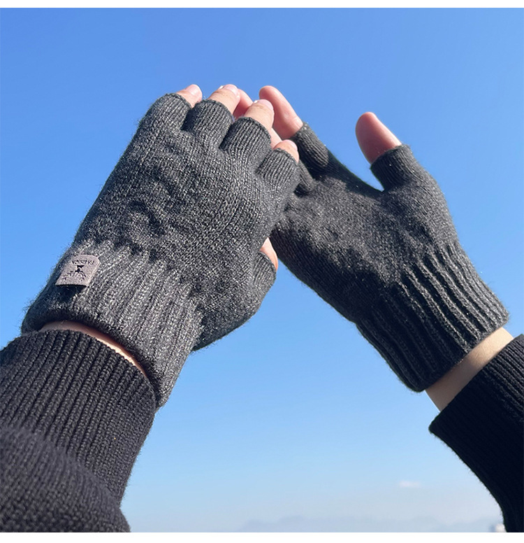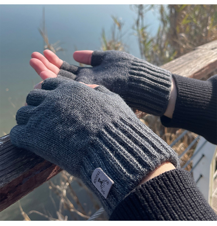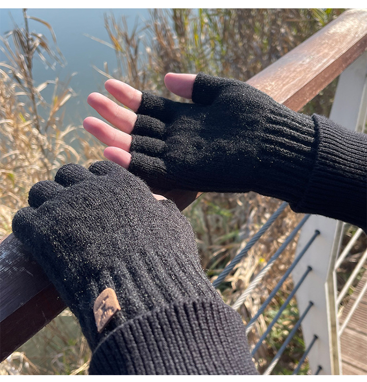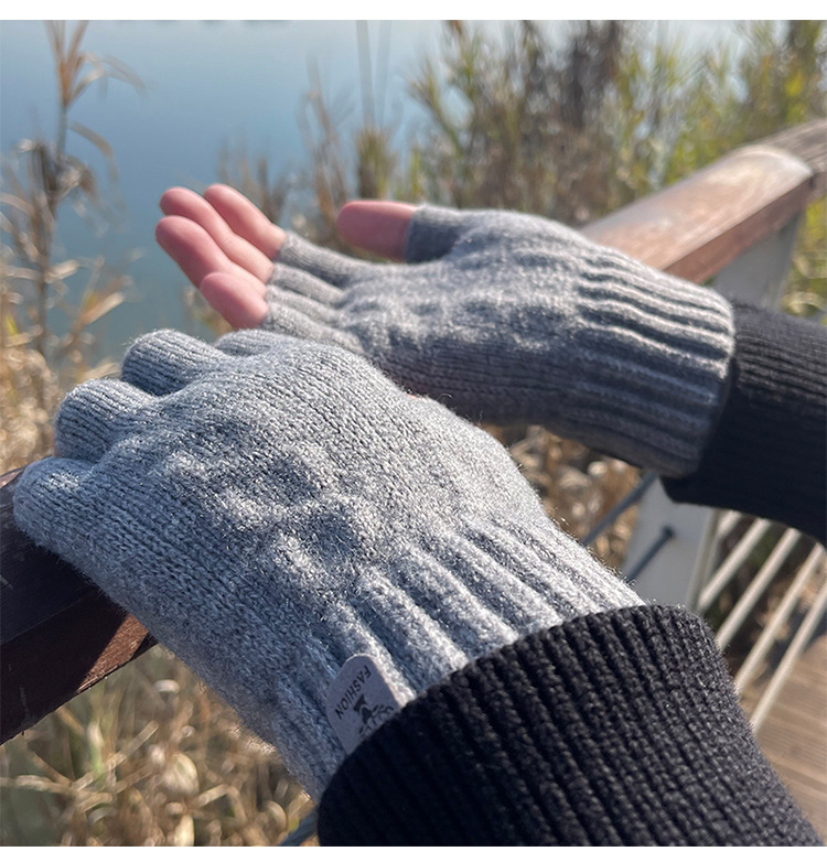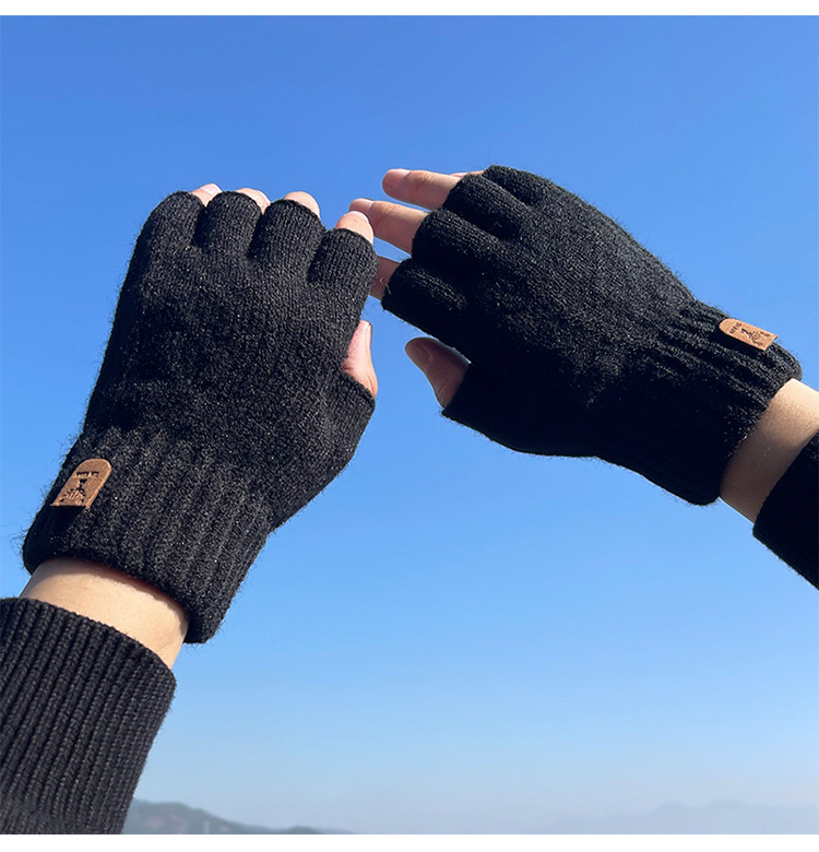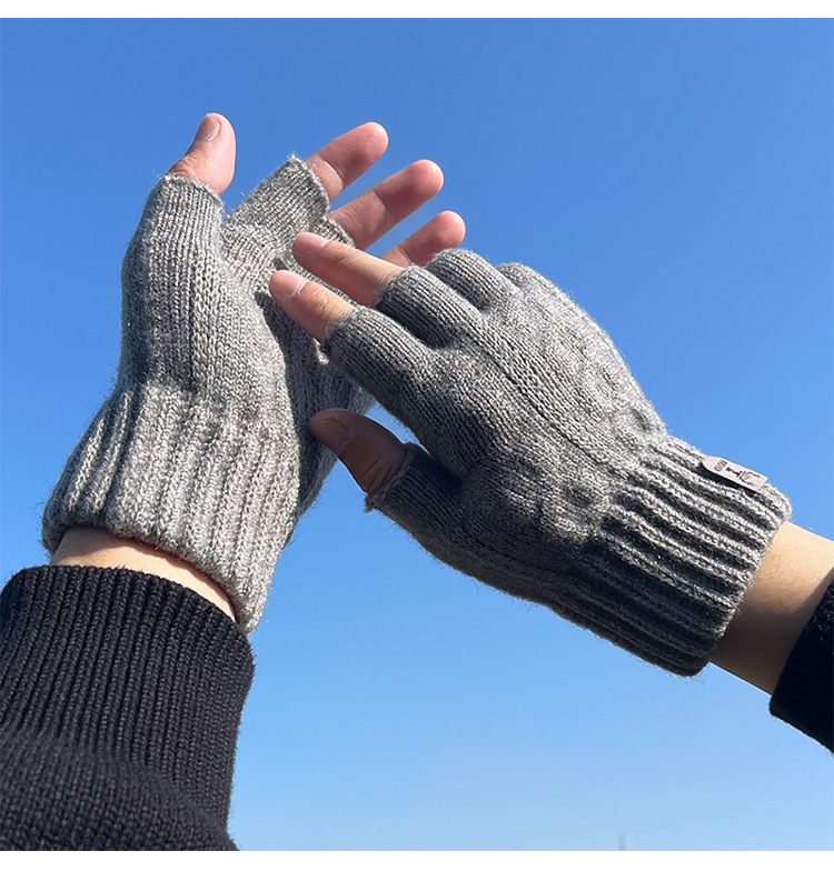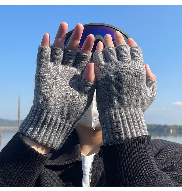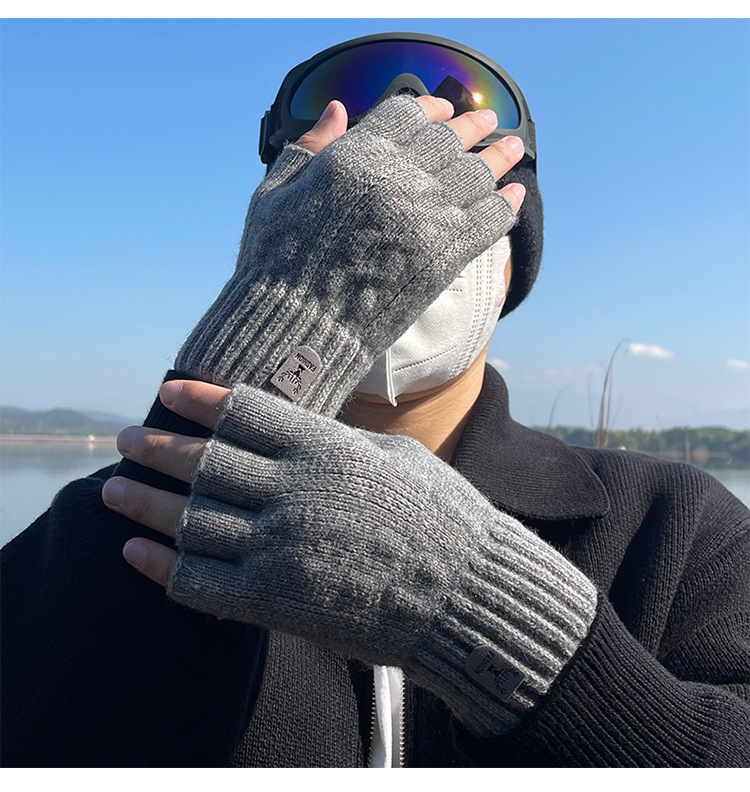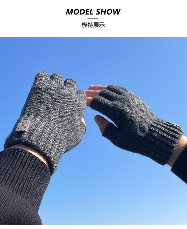 保暖半指手套男露指冬季半截无指骑行开车加厚毛线针织漏指头防寒