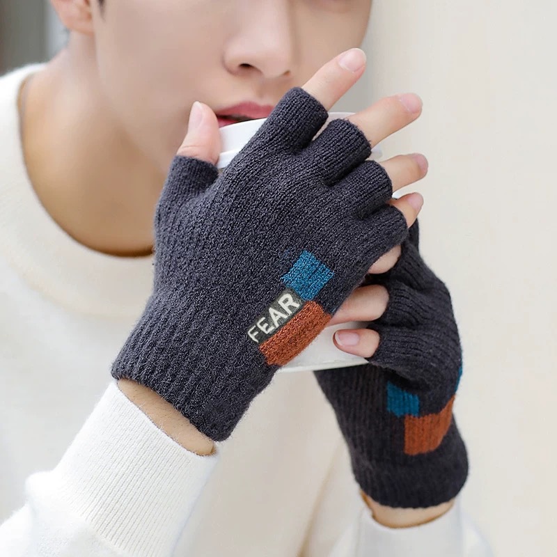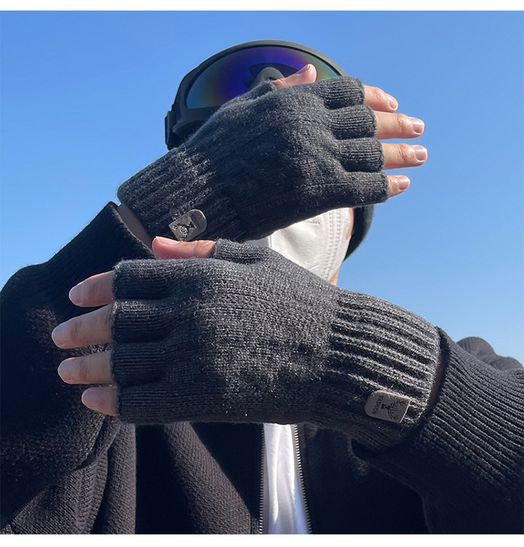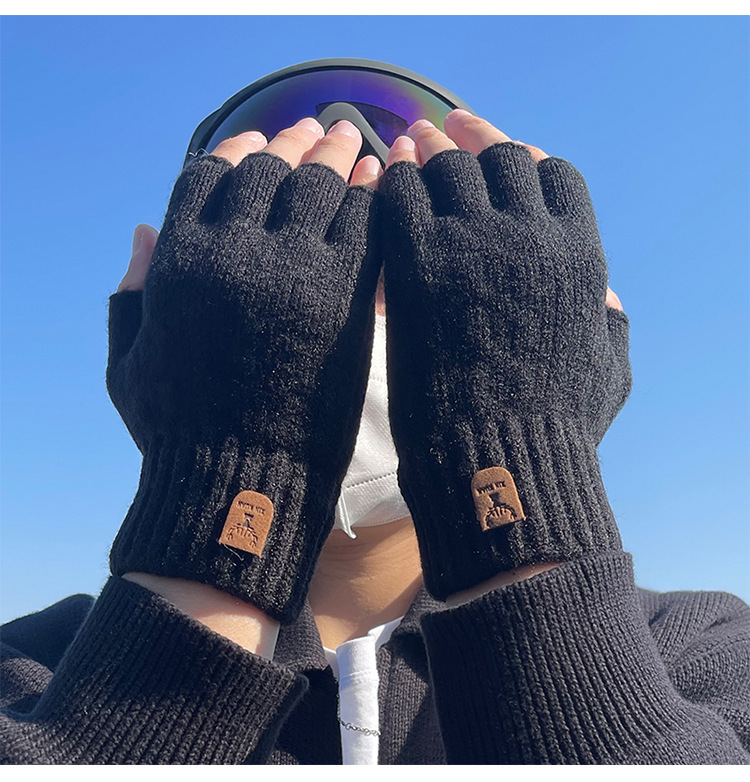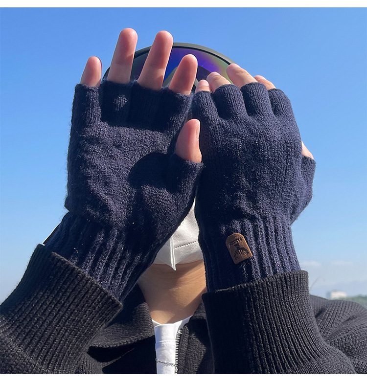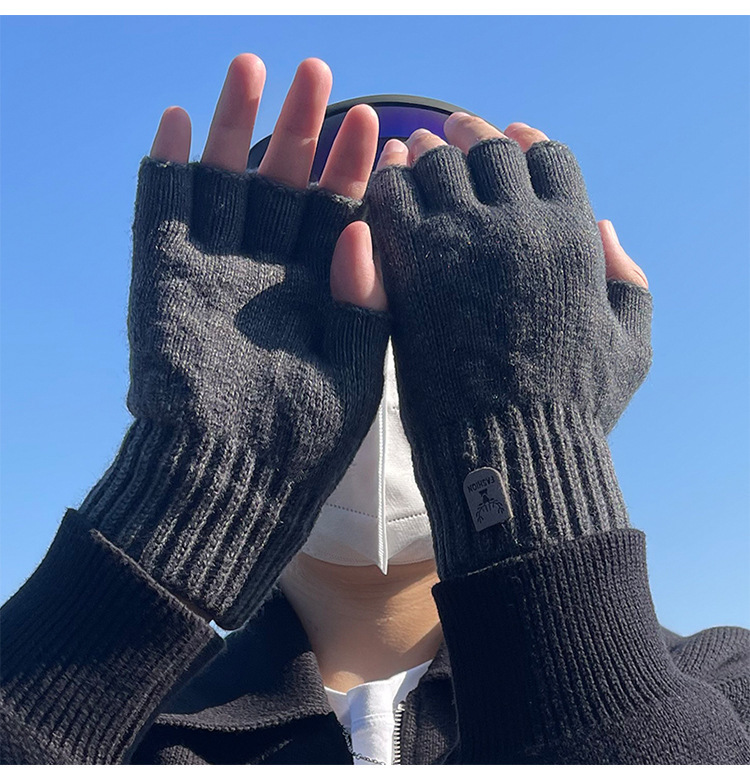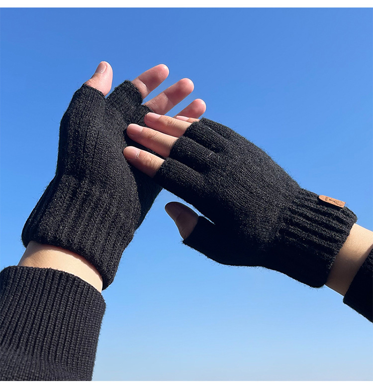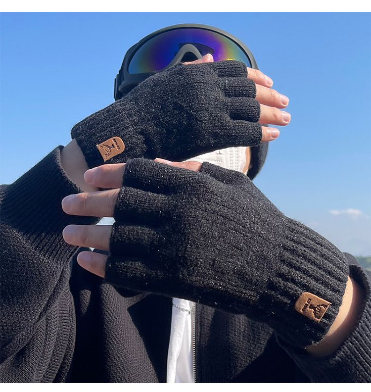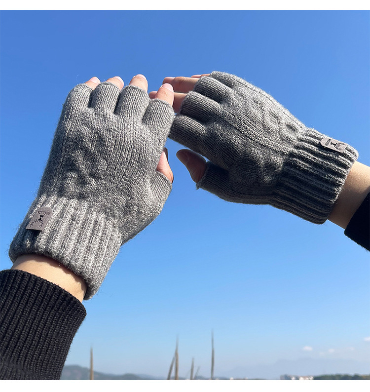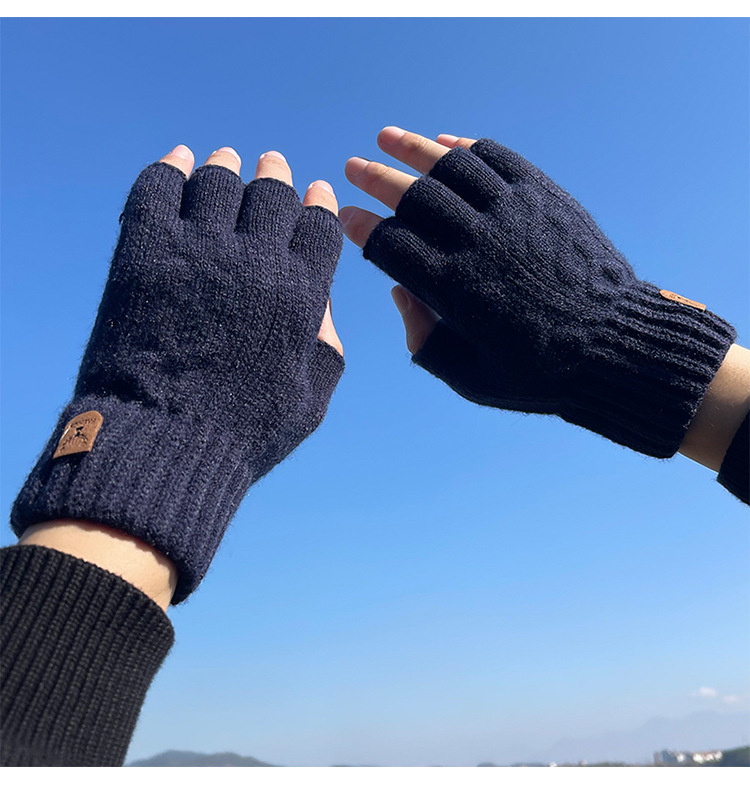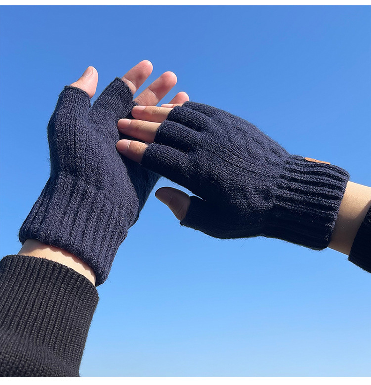 保暖半指手套男露指冬季半截无指骑行开车加厚毛线针织漏指头防寒