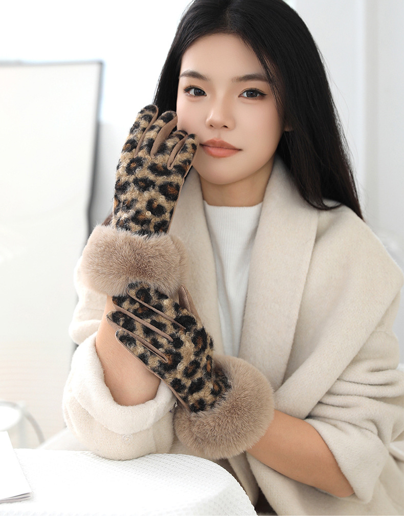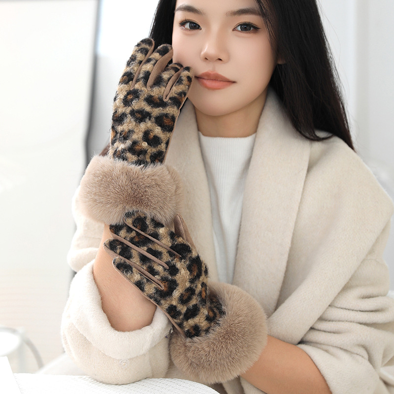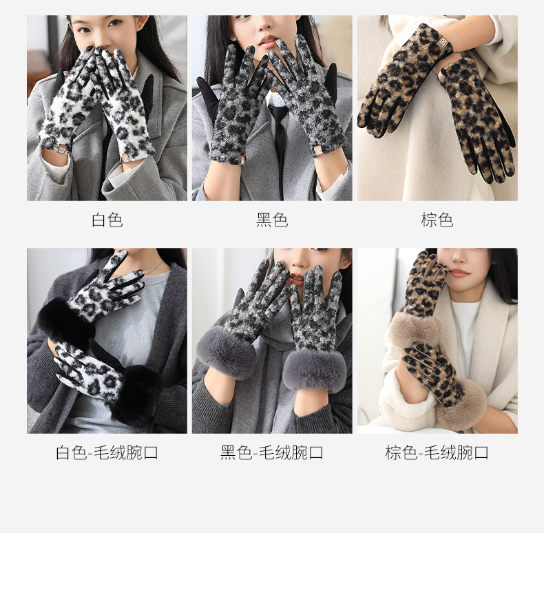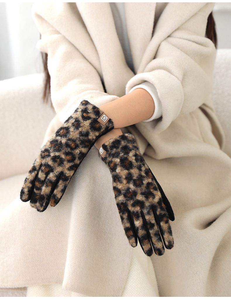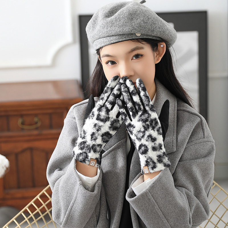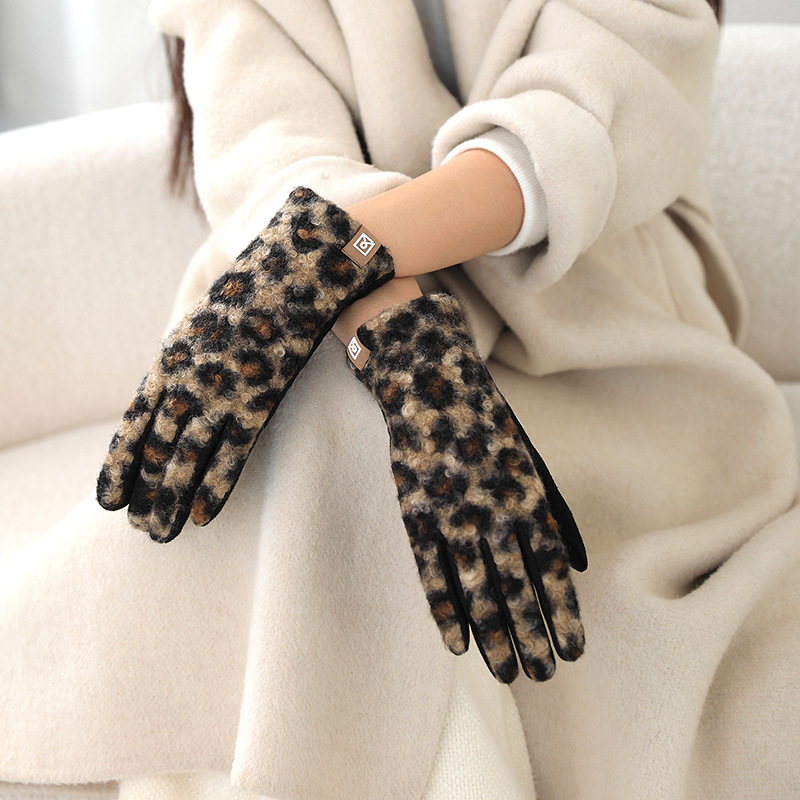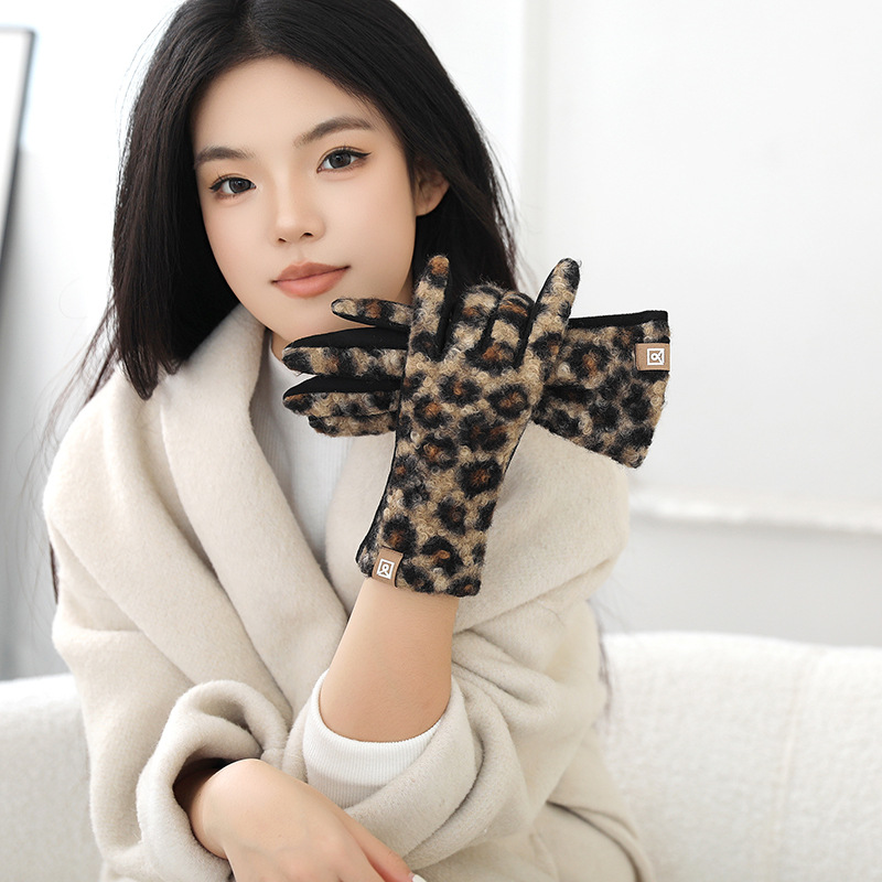 欧美创意豹纹女式触屏防风手套 时尚街头保暖防寒分指手套批发