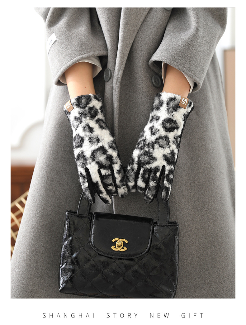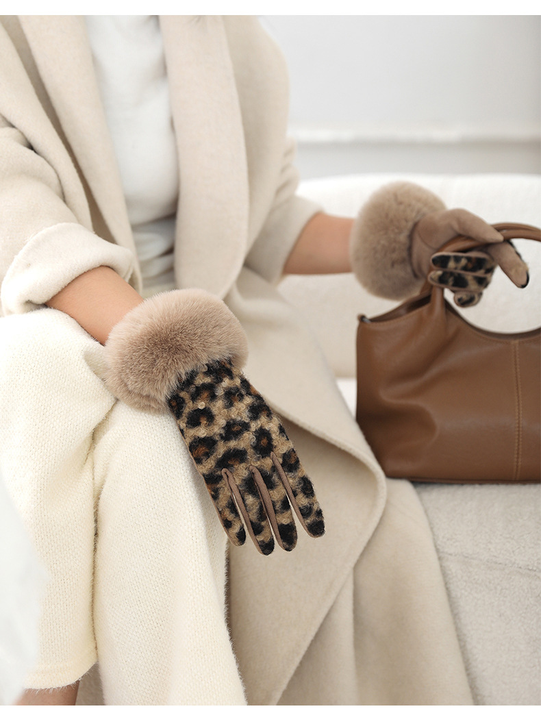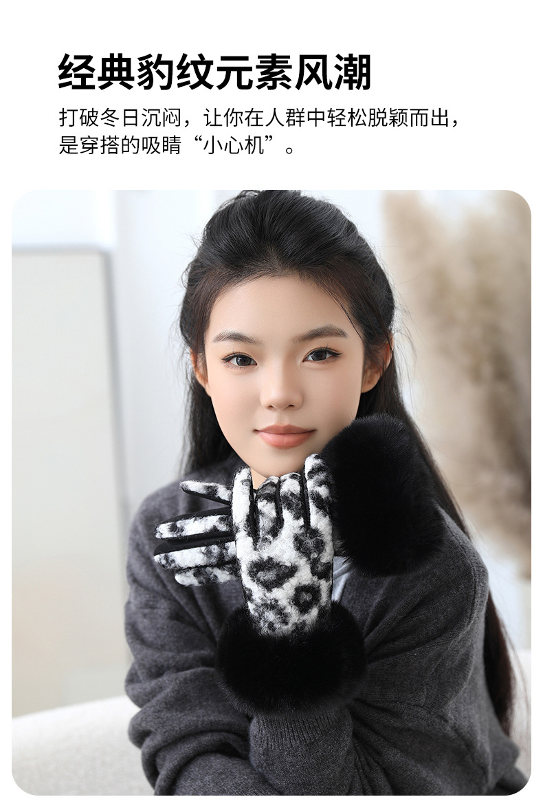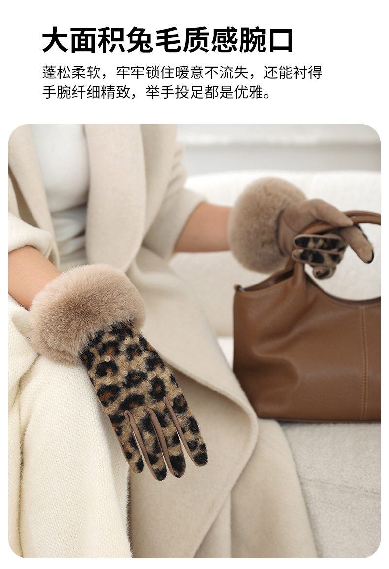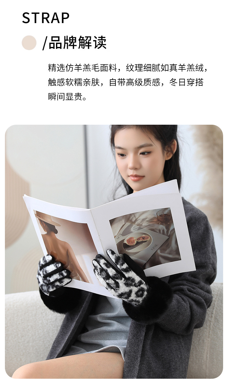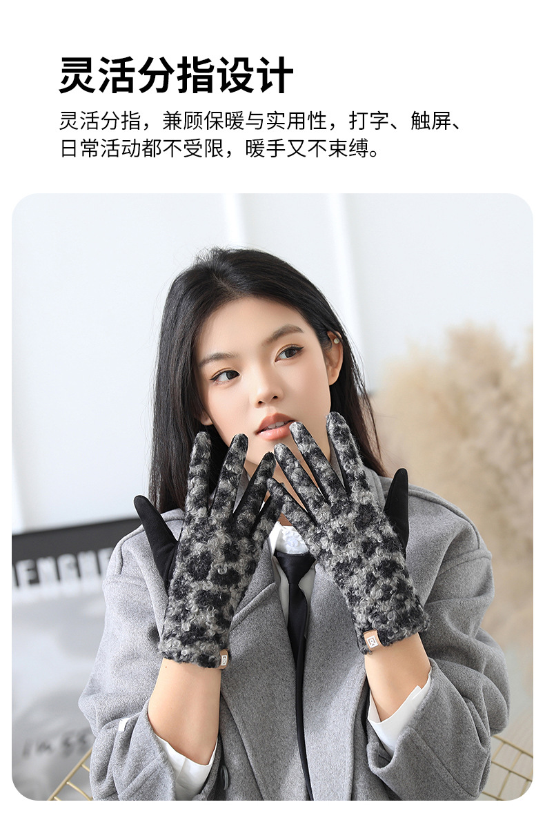 欧美创意豹纹女式触屏防风手套 时尚街头保暖防寒分指手套批发