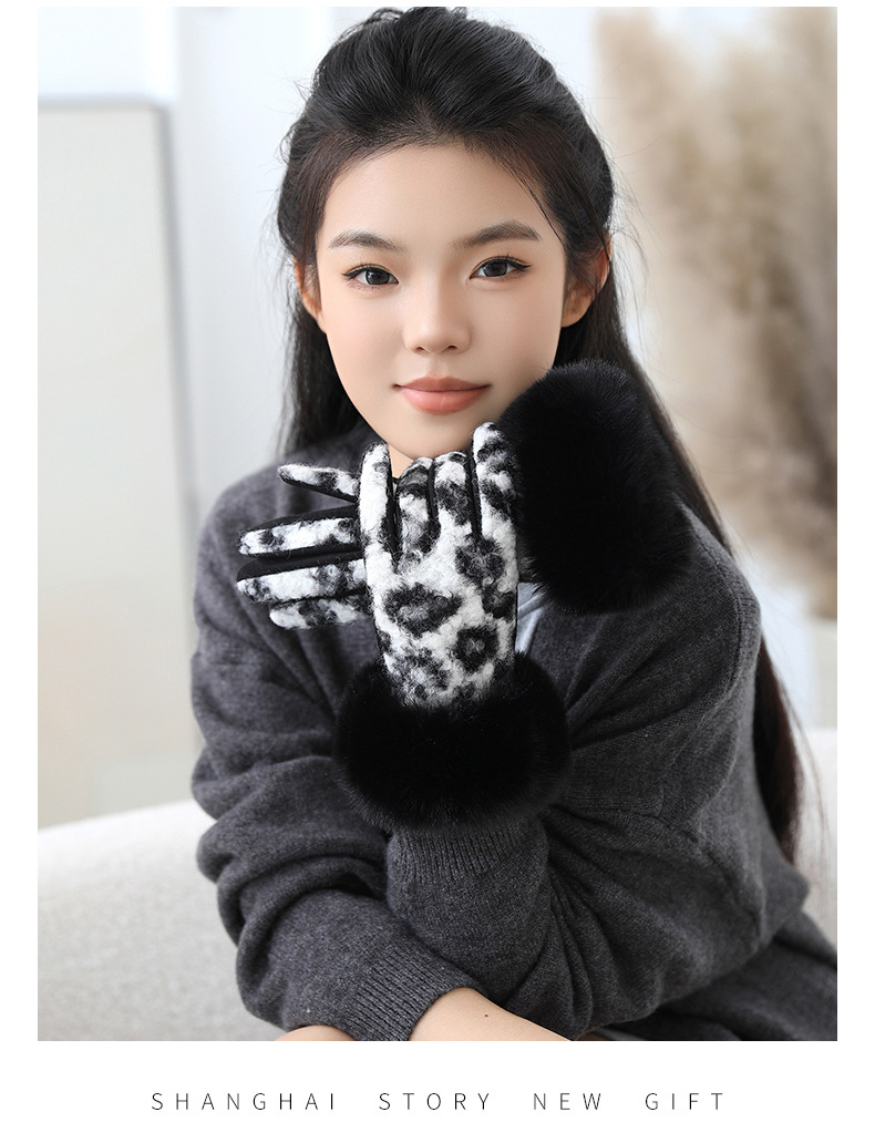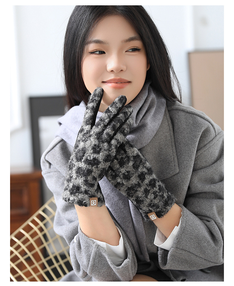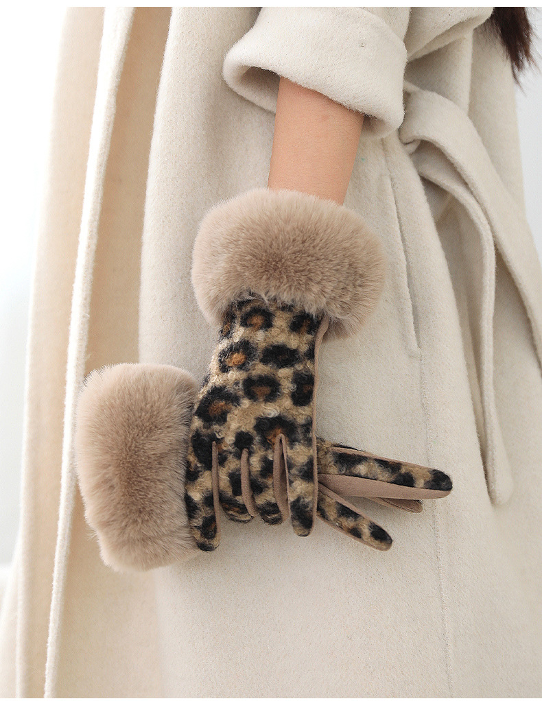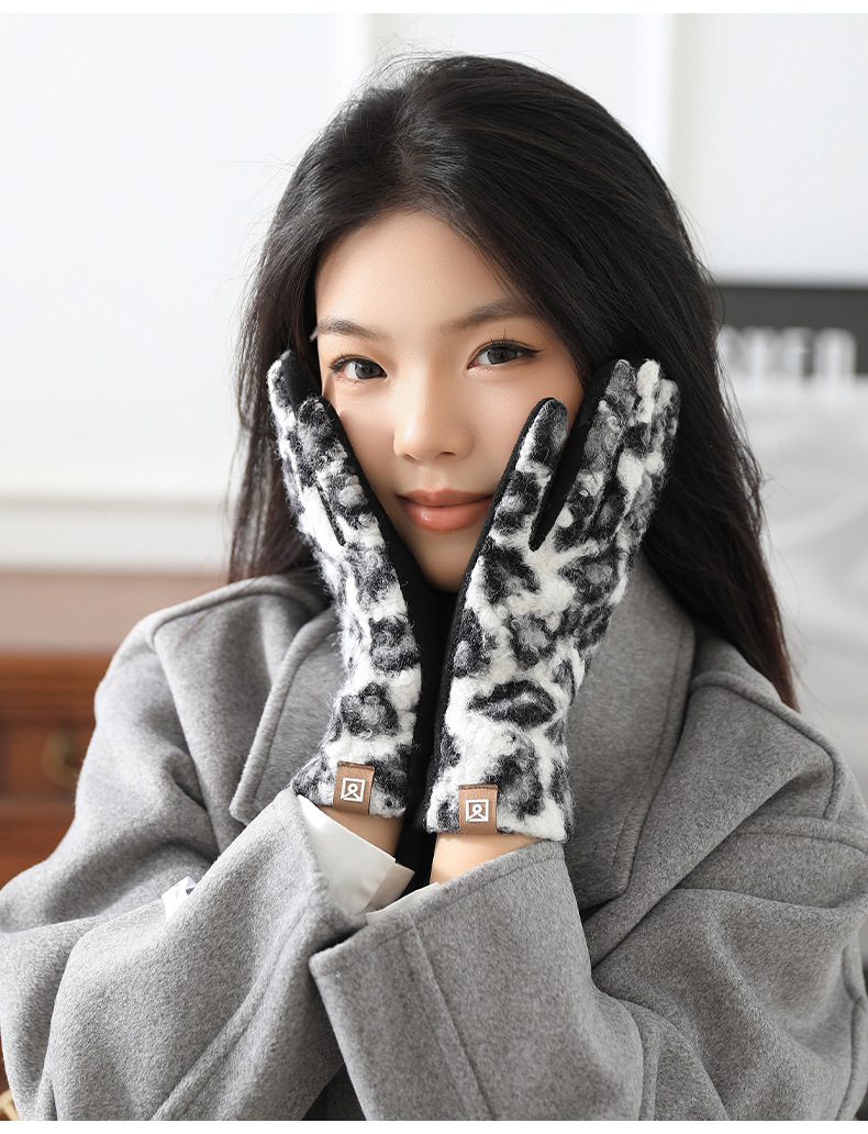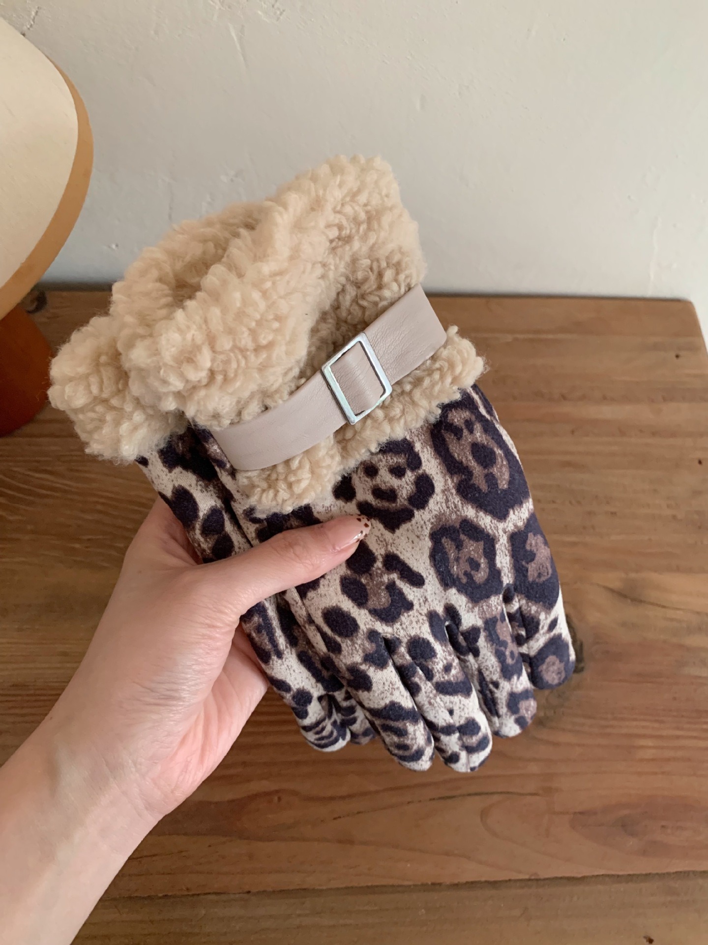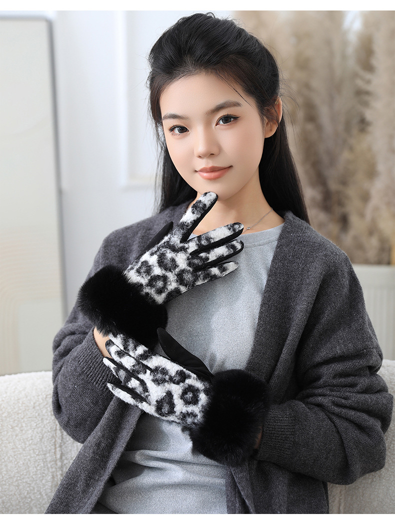 欧美创意豹纹女式触屏防风手套 时尚街头保暖防寒分指手套批发