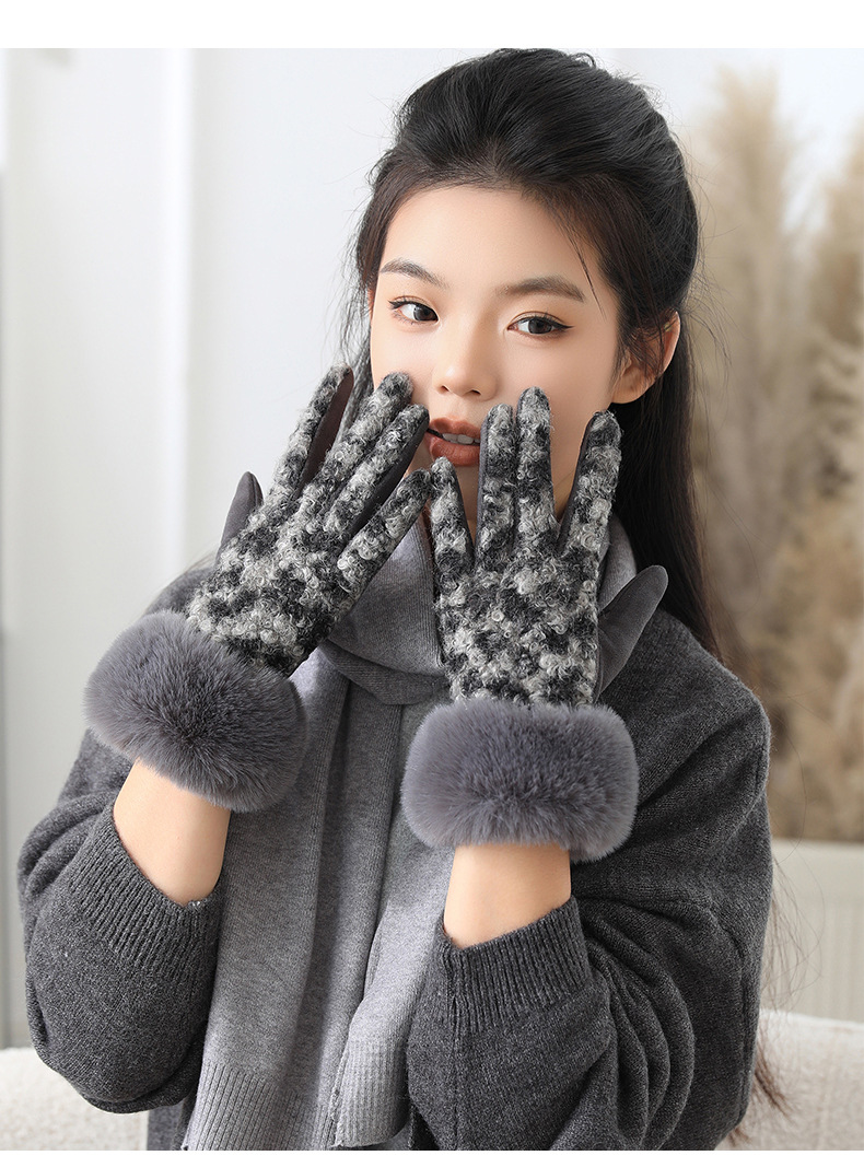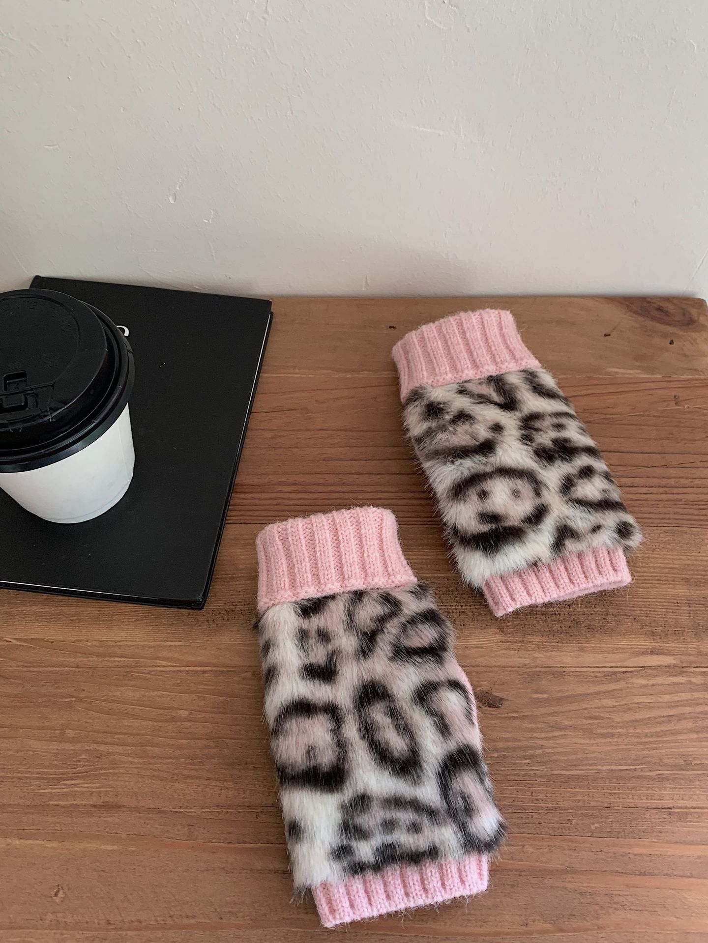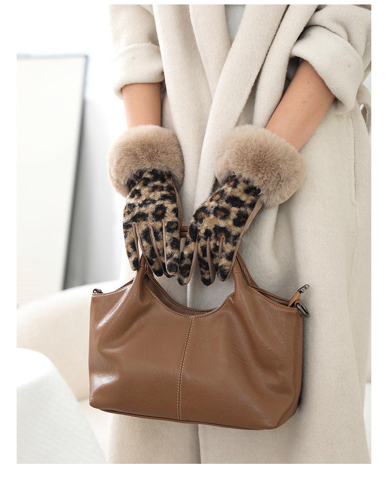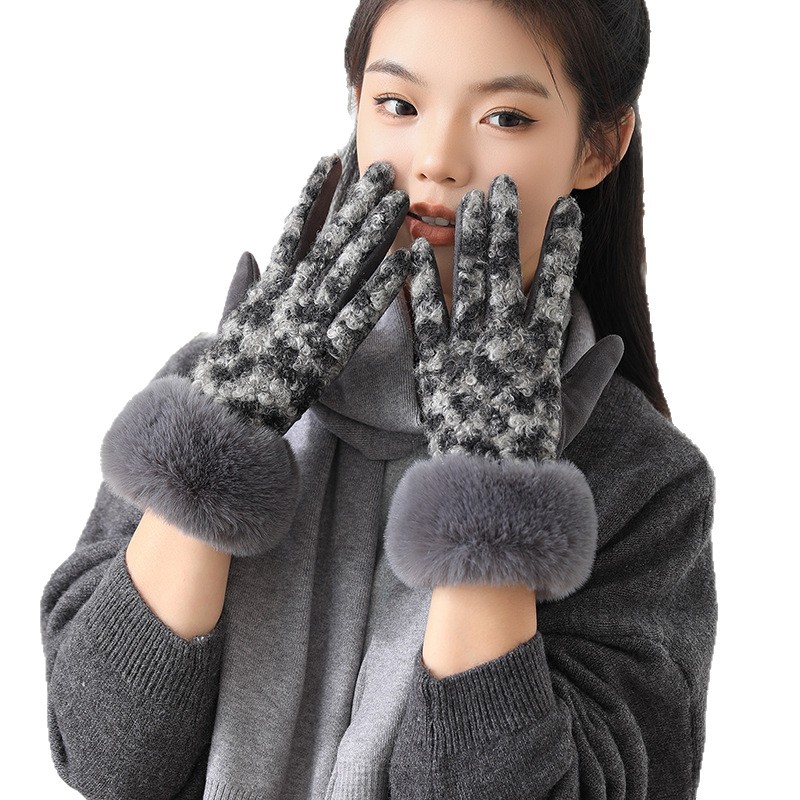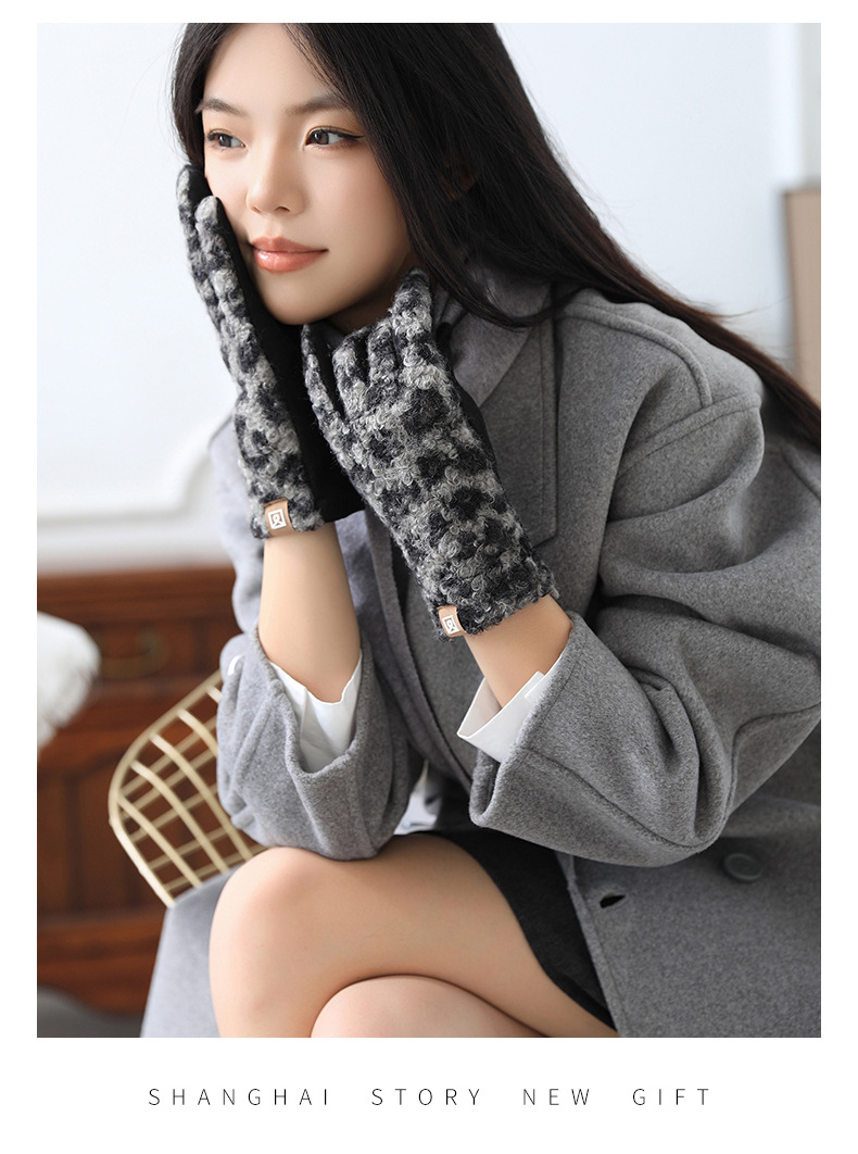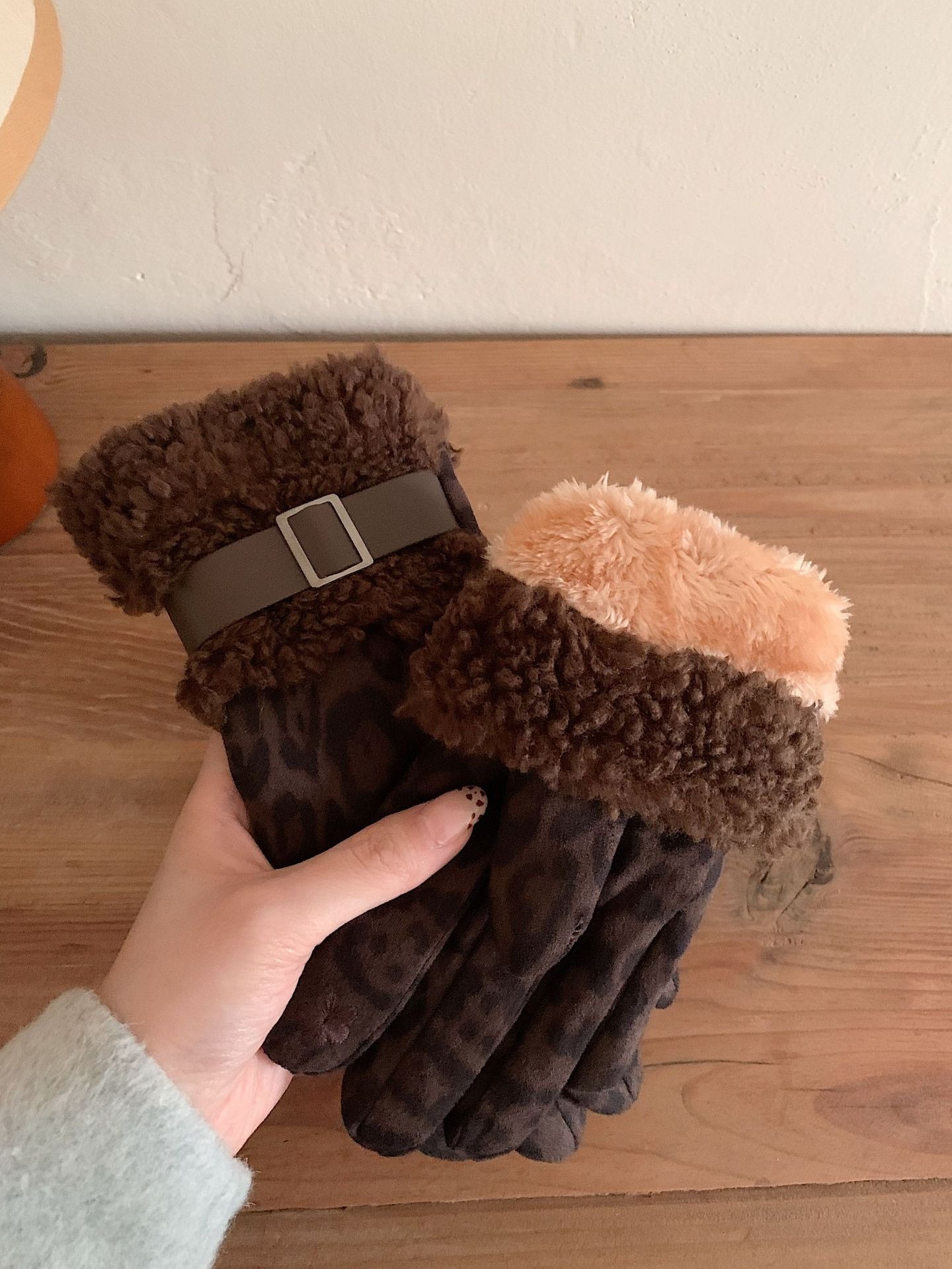 欧美创意豹纹女式触屏防风手套 时尚街头保暖防寒分指手套批发