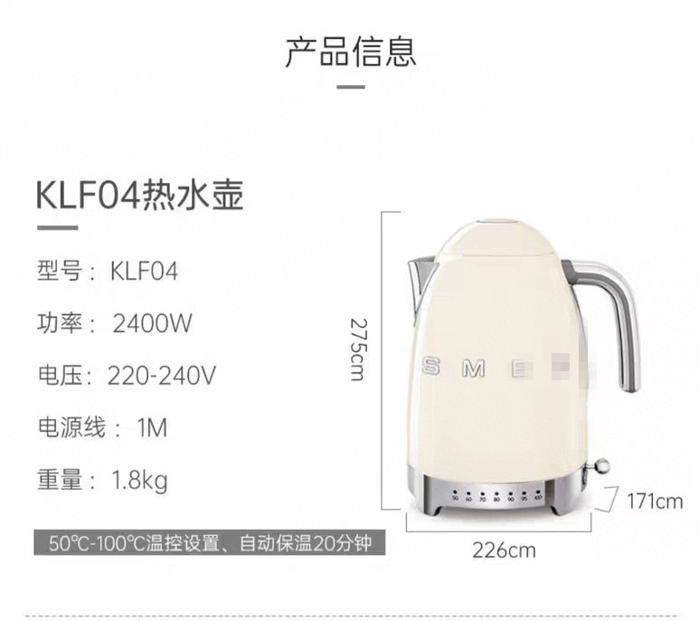 高品质SMEG斯麦格复古温控电热水壶KLF04 kettle全色1.7L
