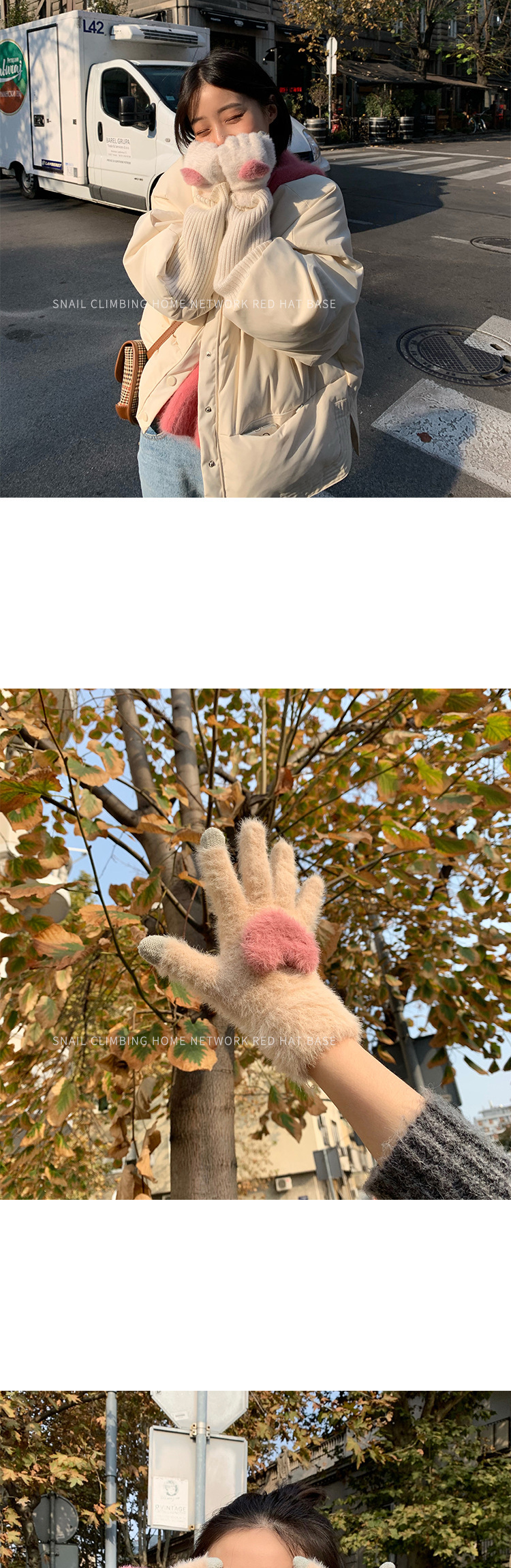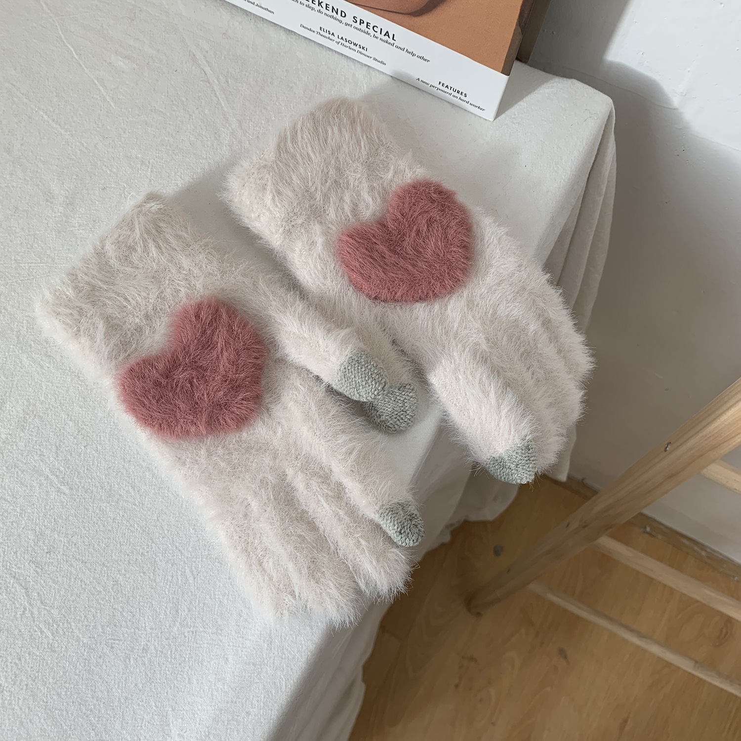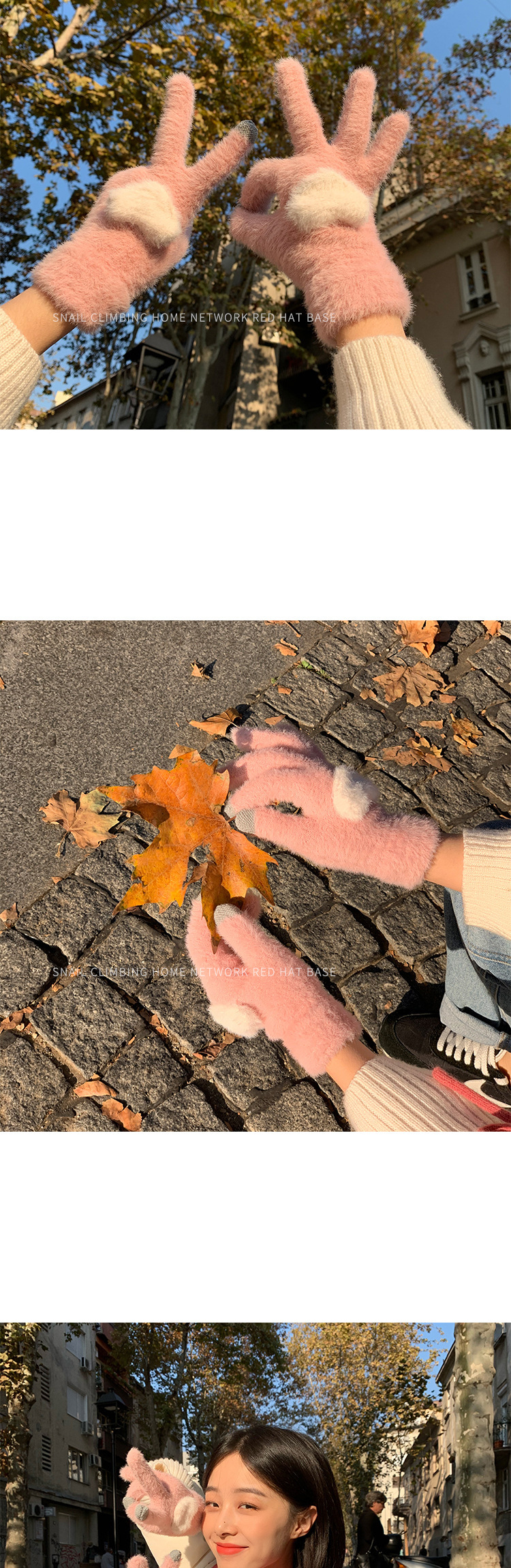 秋冬加绒保暖触屏手套甜美少女韩版可爱针织毛线分指骑行防寒学生
