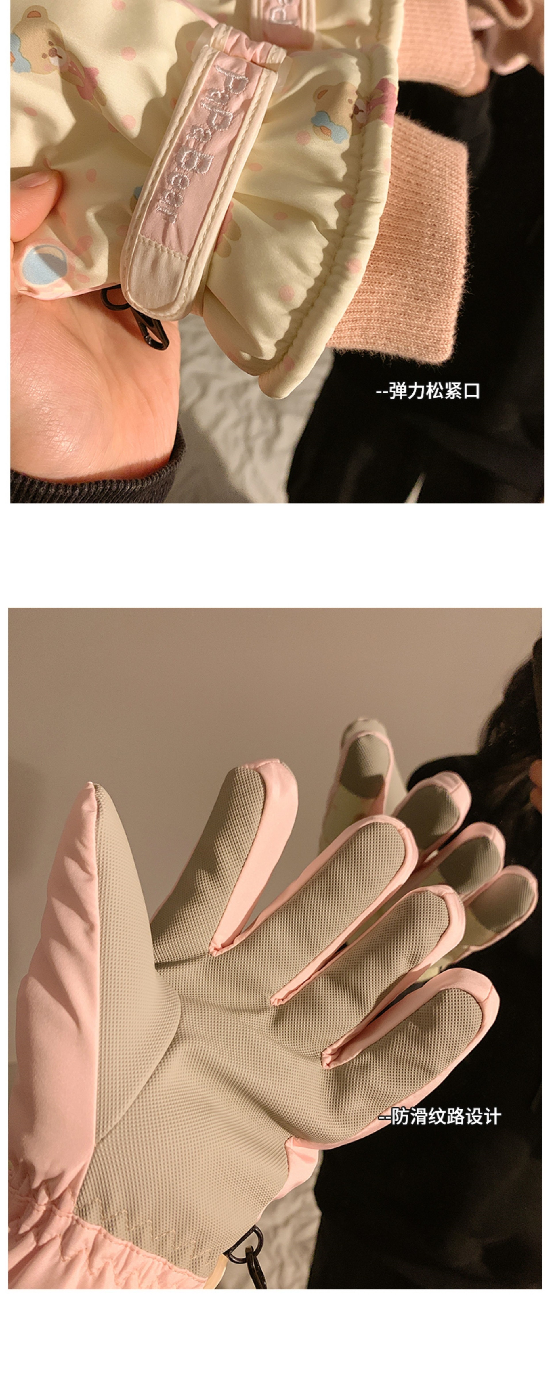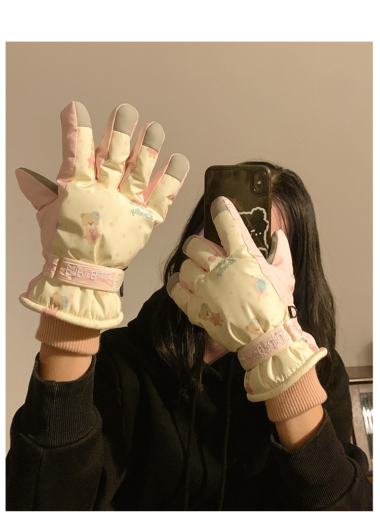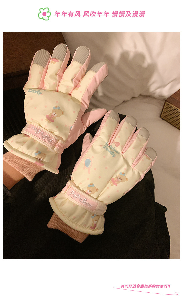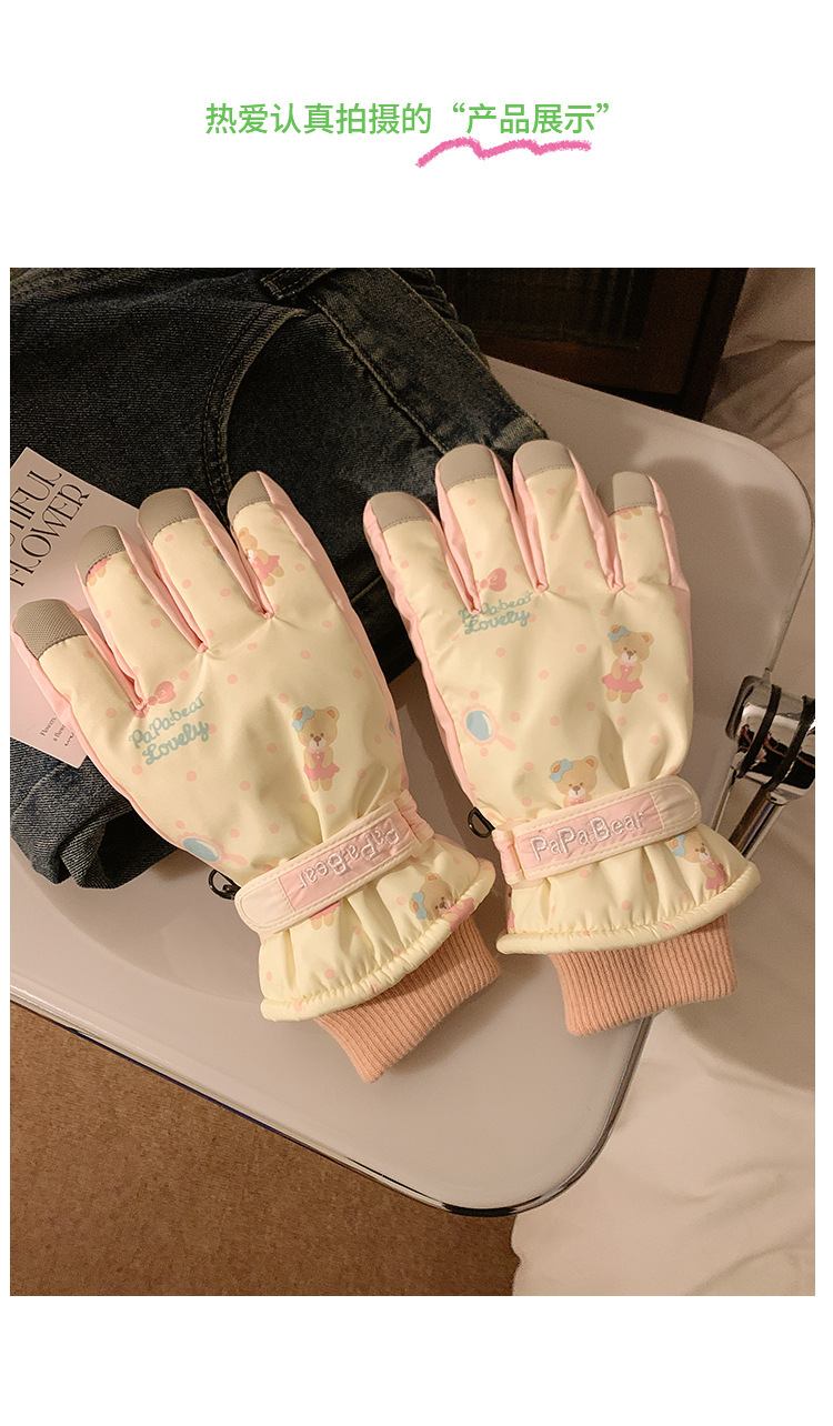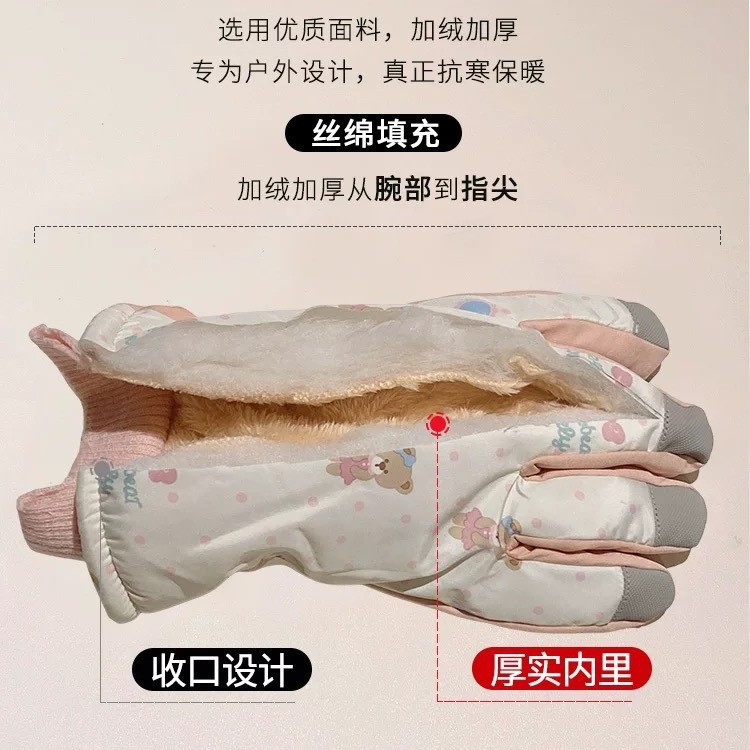 可爱粉色小熊滑雪手套2025女冬季可触屏骑行户外加绒防水保暖防风