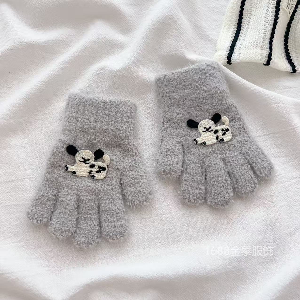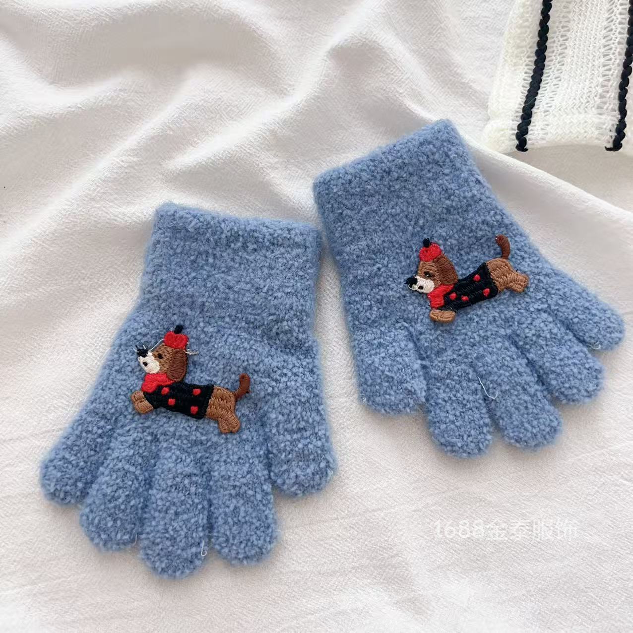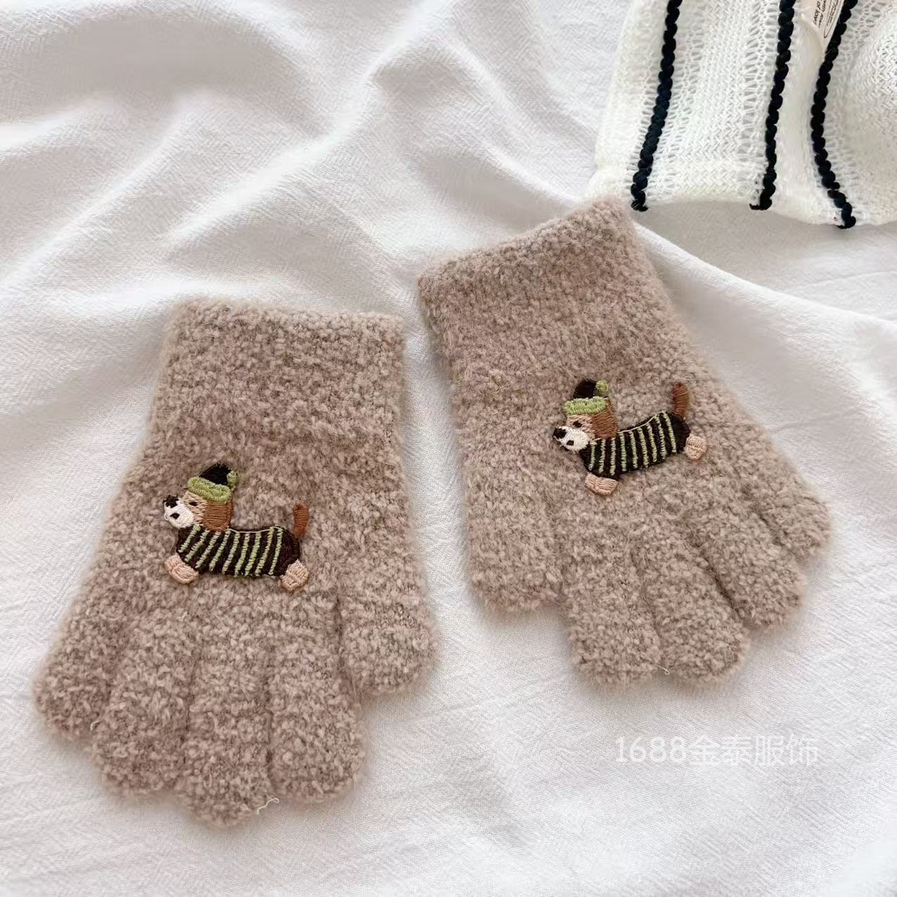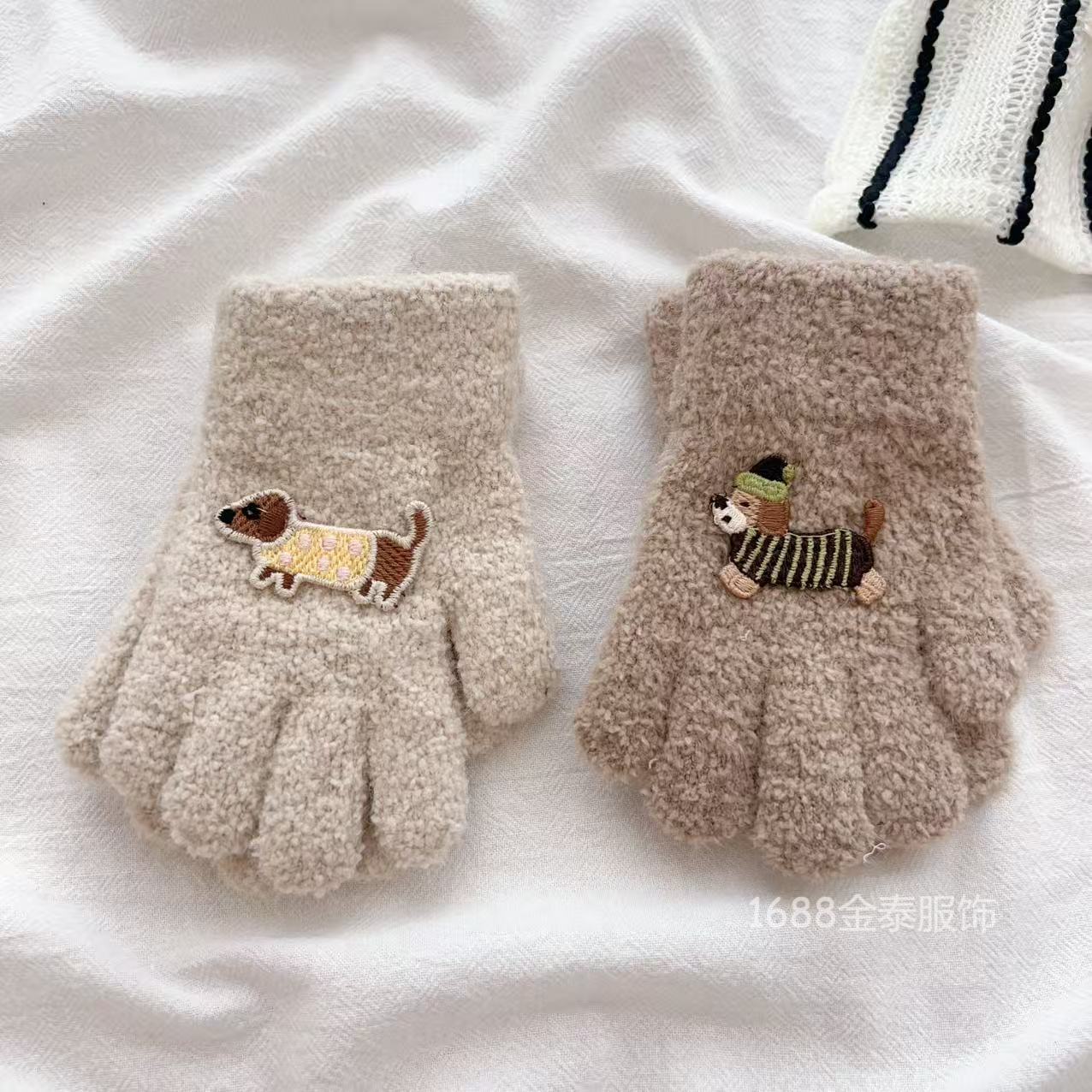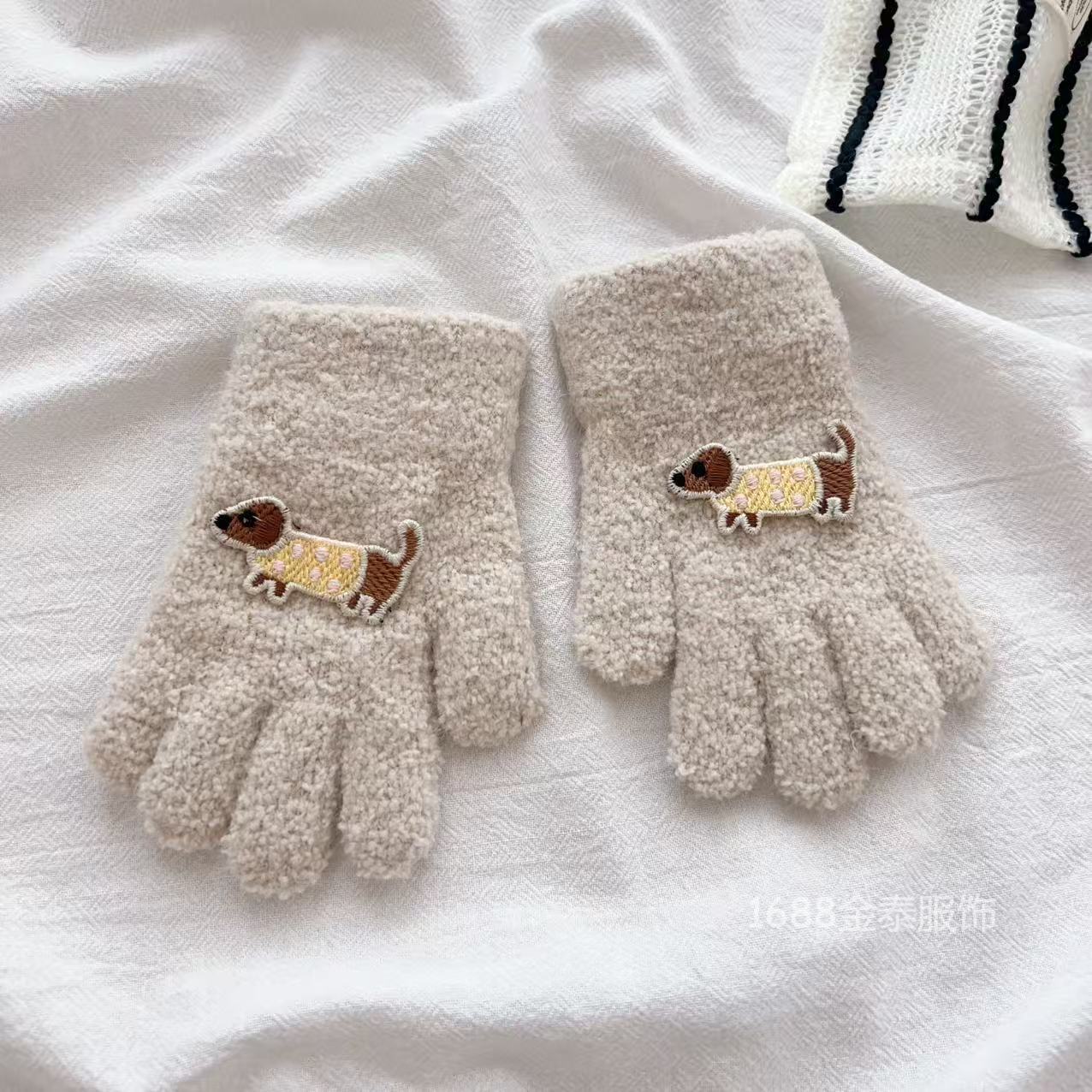 2-6岁 儿童腊肠狗手套可爱卡通冬季防寒保暖加厚男女宝五指手套批
