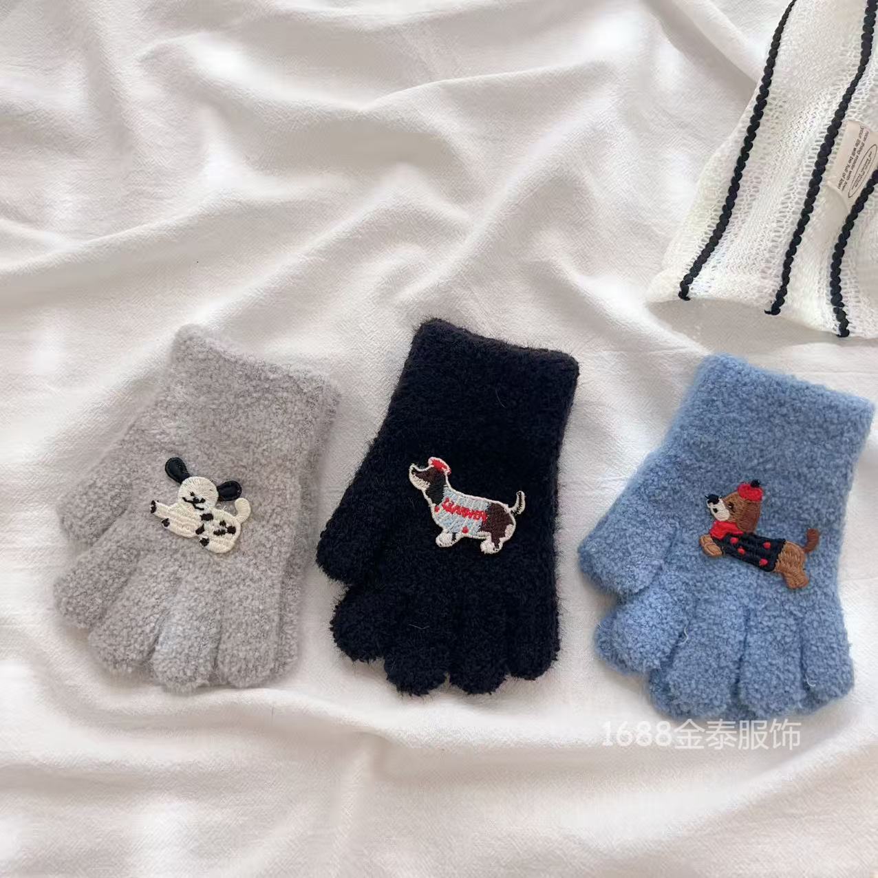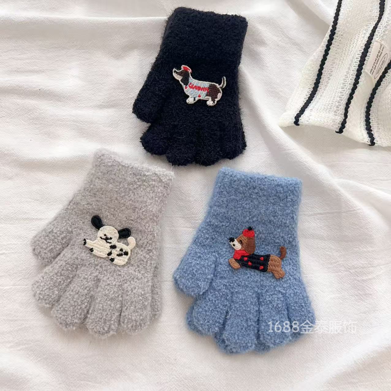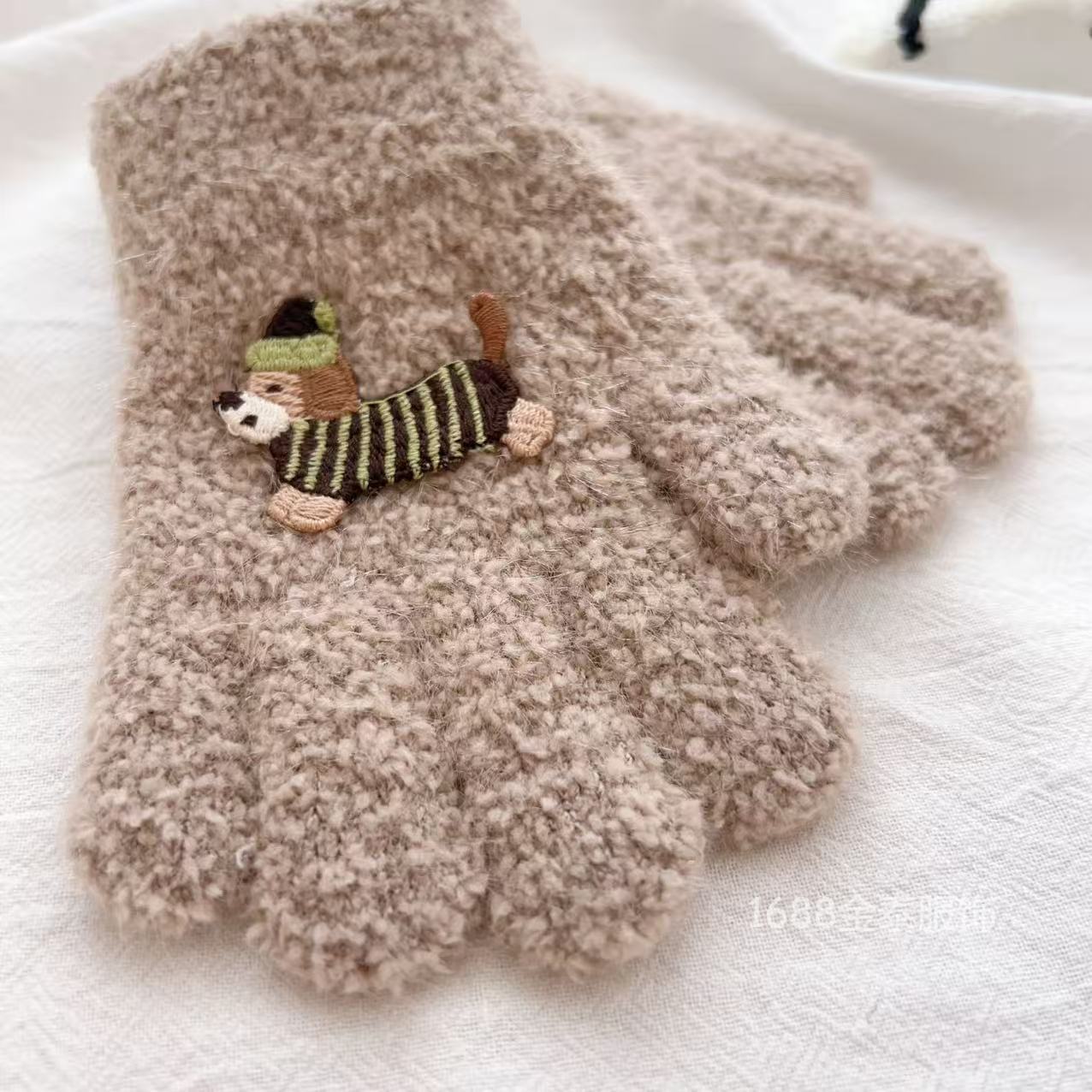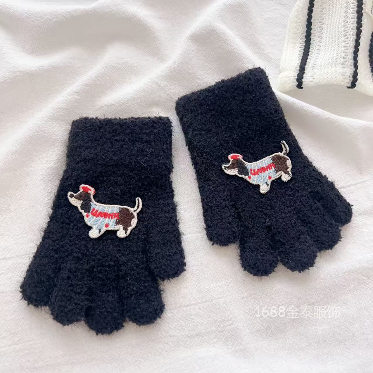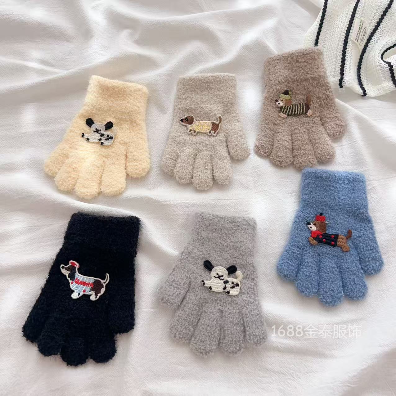 2-6岁 儿童腊肠狗手套可爱卡通冬季防寒保暖加厚男女宝五指手套批
