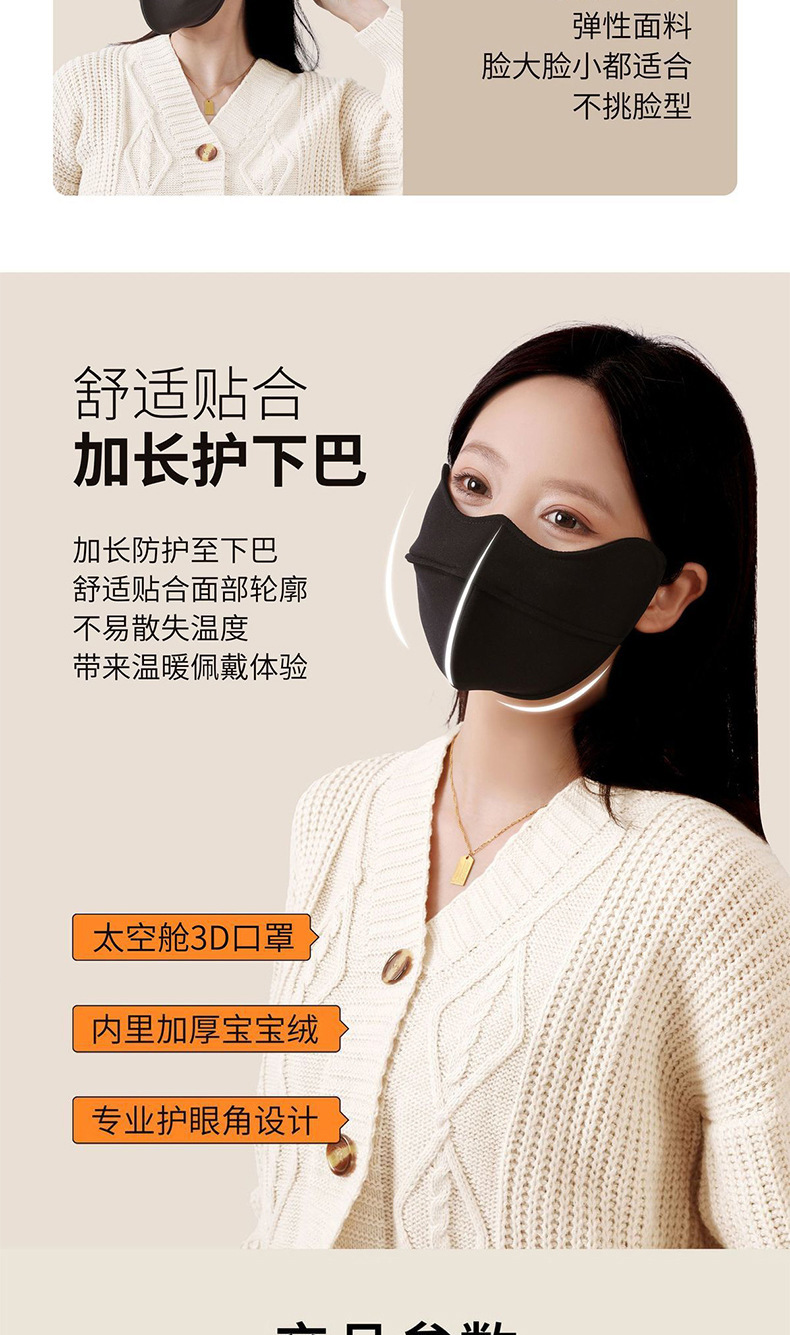 立体保暖口罩女高颜值护眼角显脸小冬季加厚防风防寒骑行透气面罩