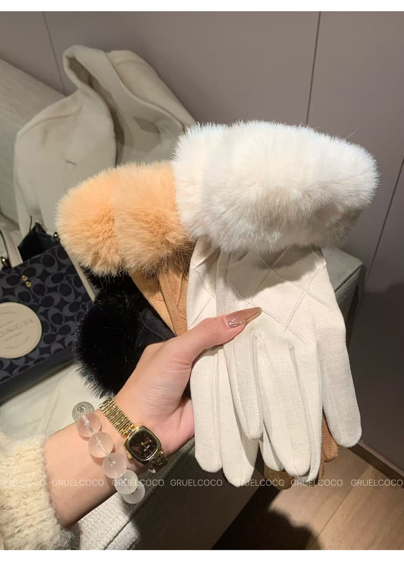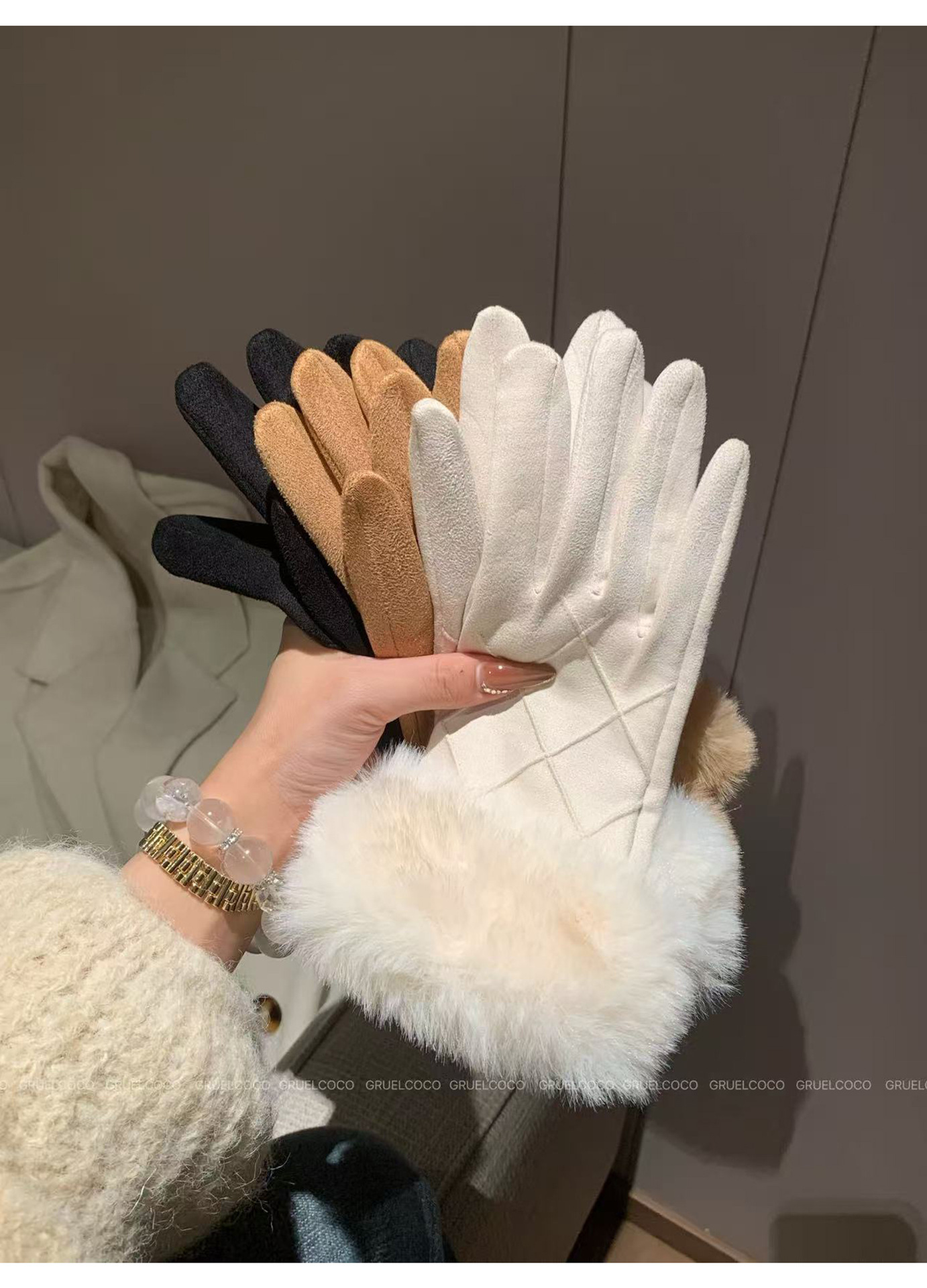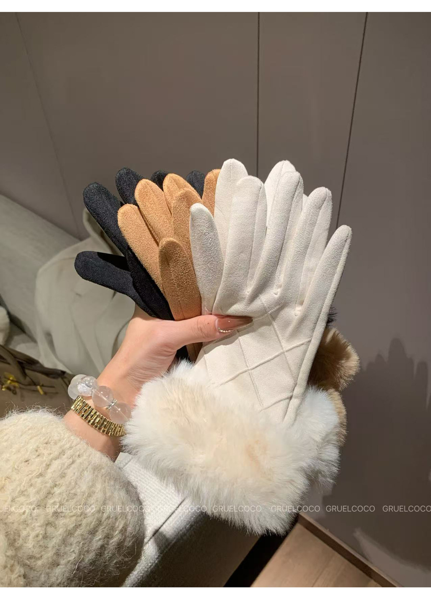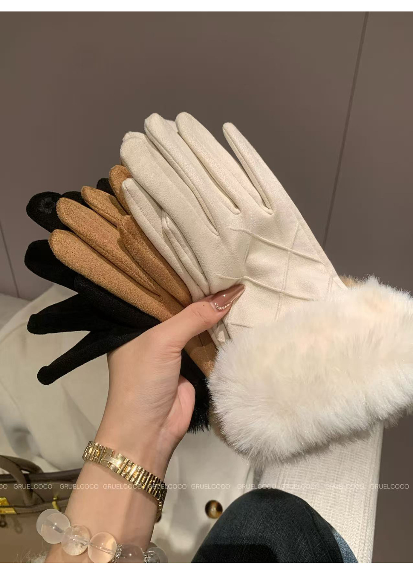 手套保暖女冬季2025新款加绒加厚防寒骑行开车防风触屏麂皮绒手套