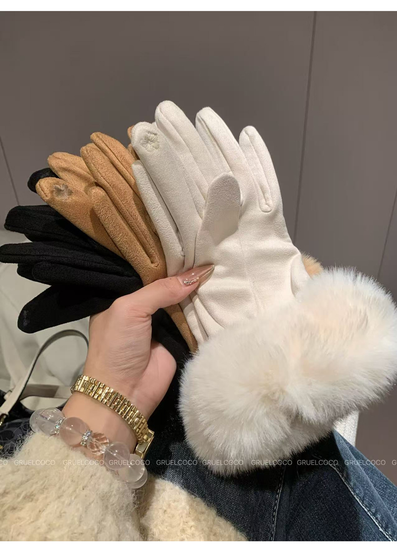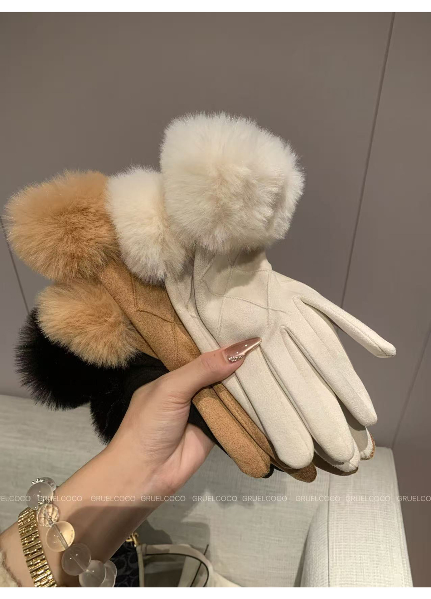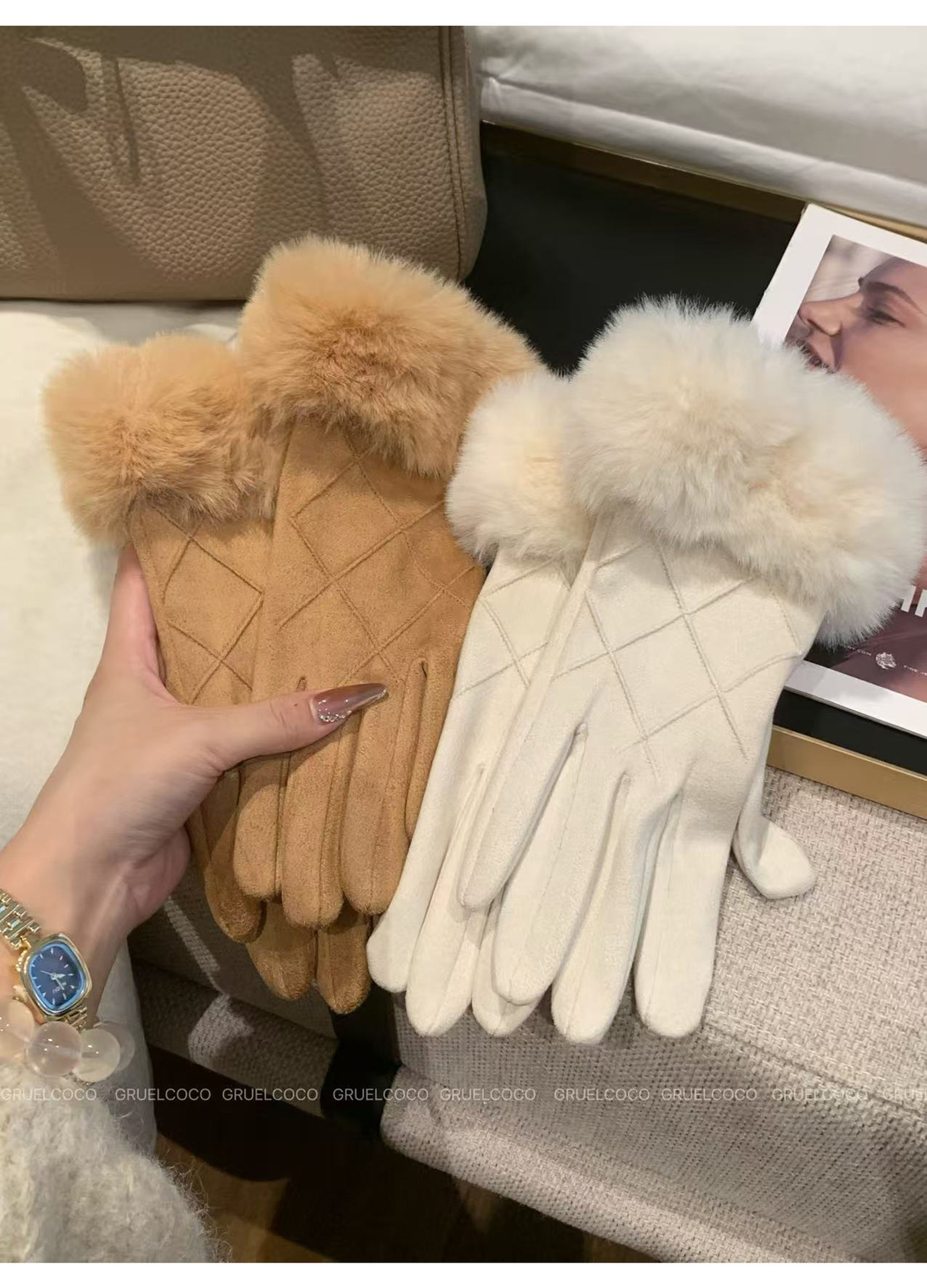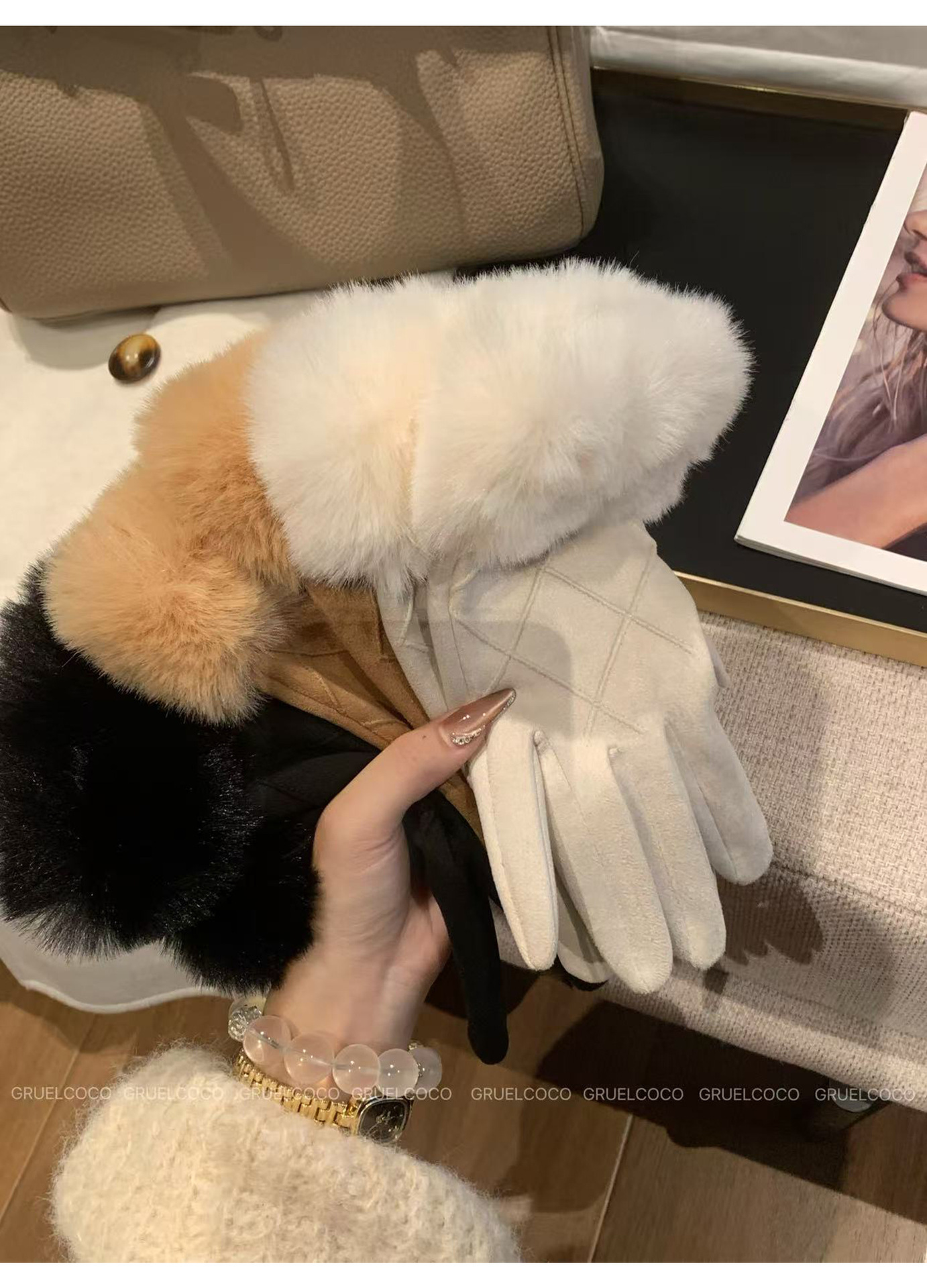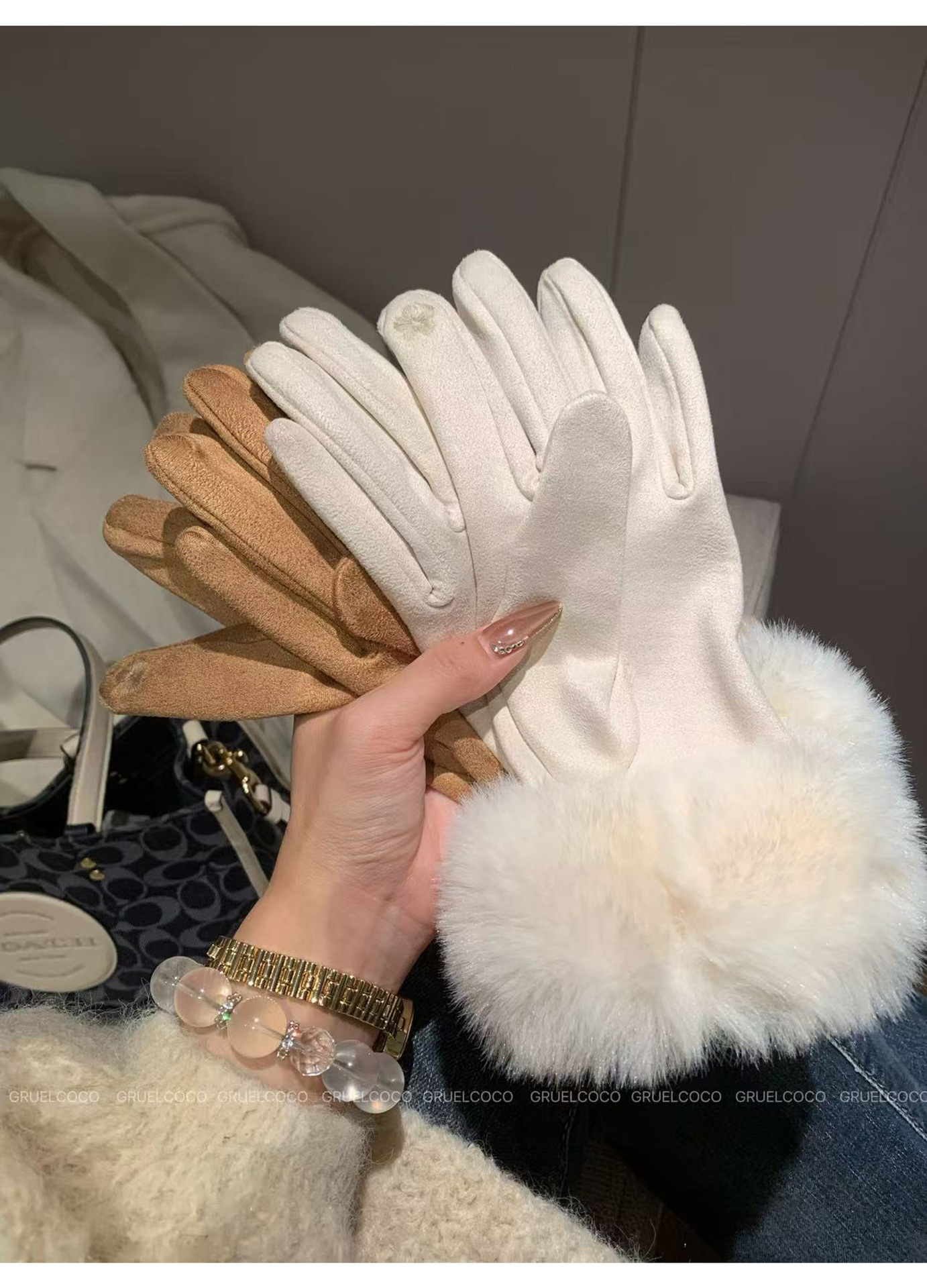 手套保暖女冬季2025新款加绒加厚防寒骑行开车防风触屏麂皮绒手套
