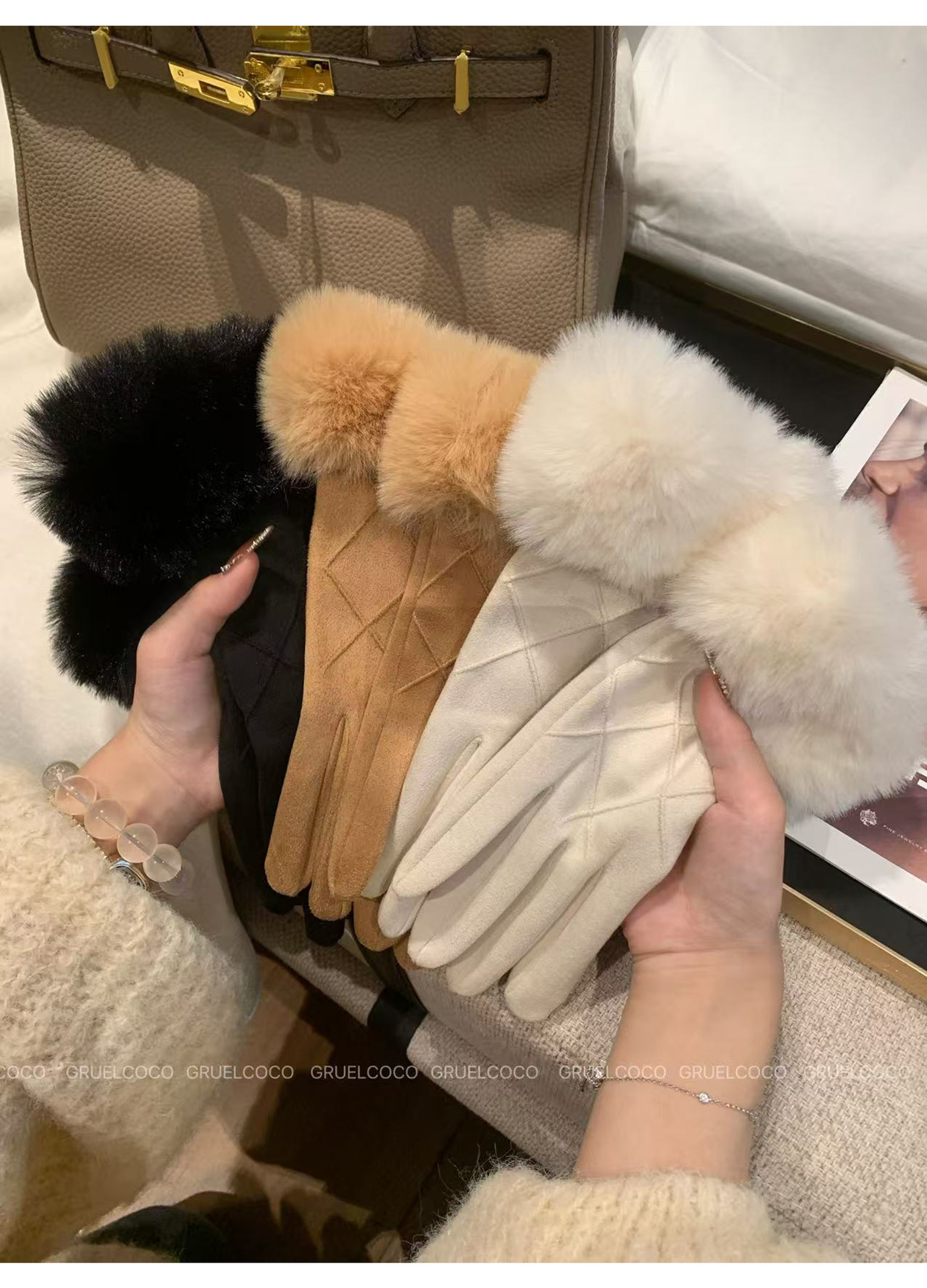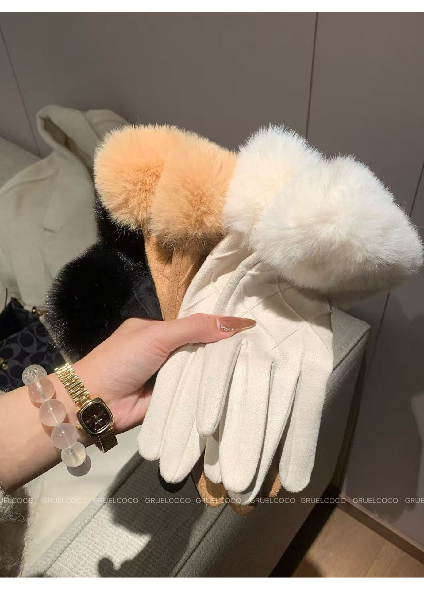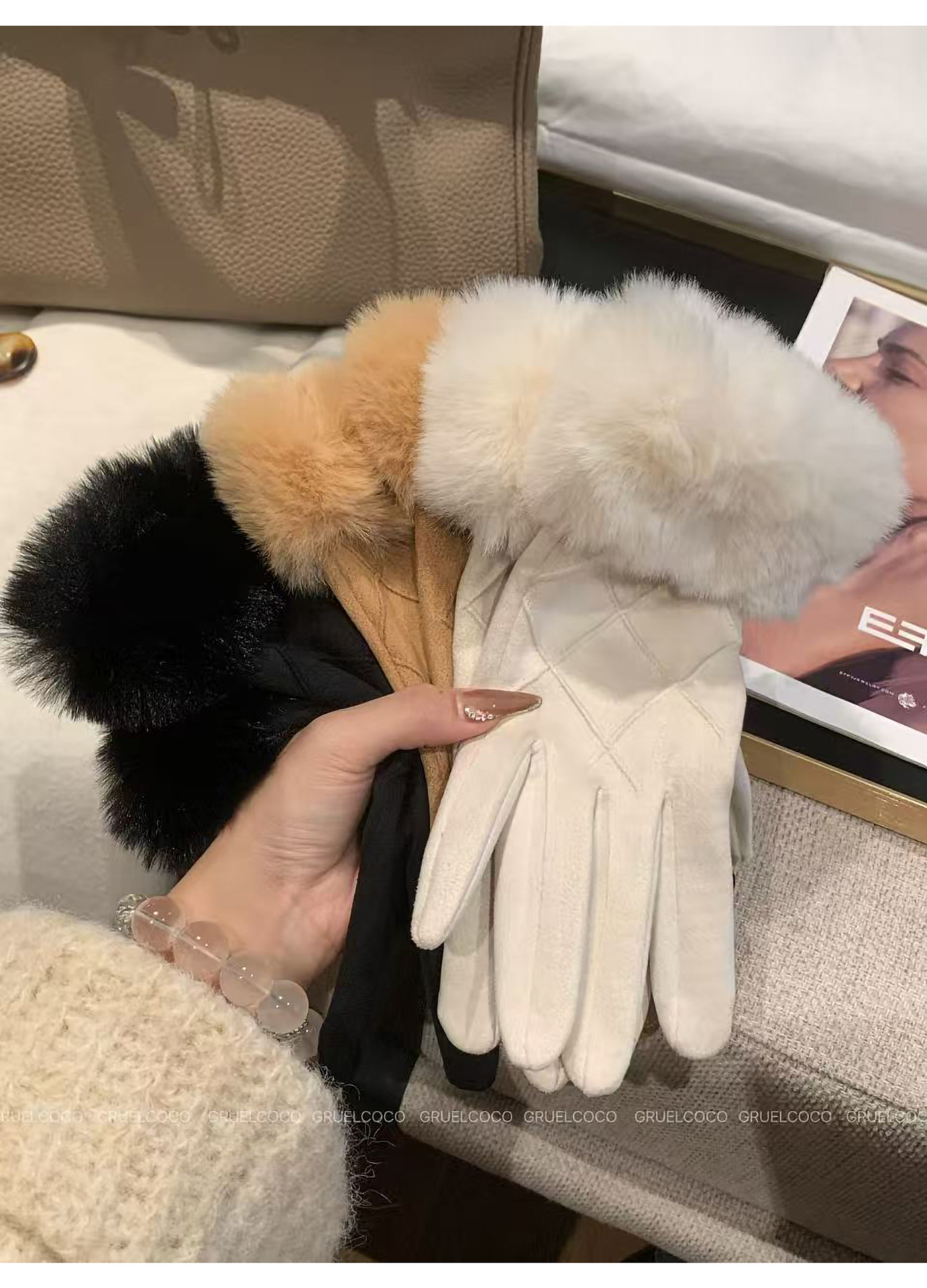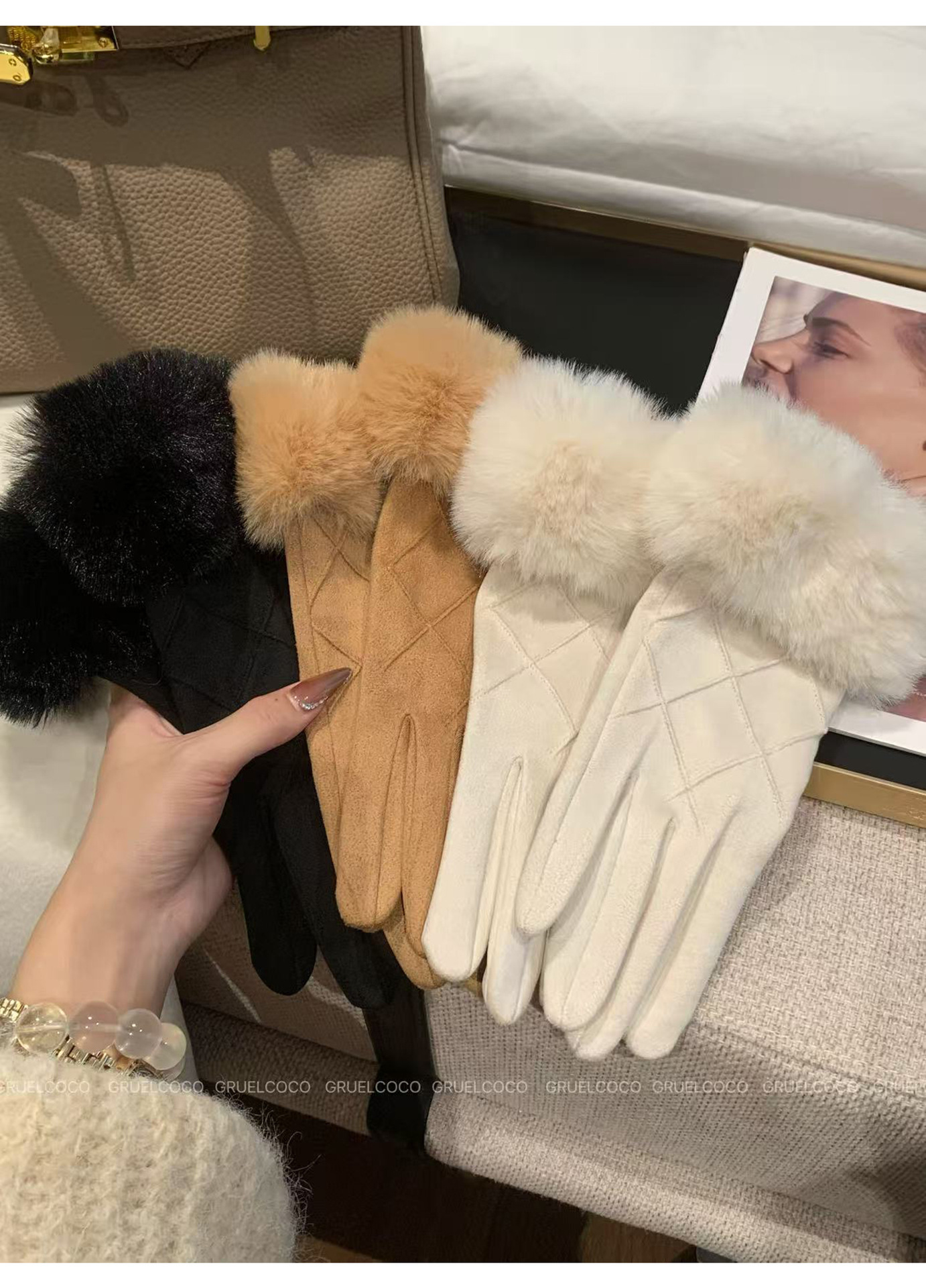 手套保暖女冬季2025新款加绒加厚防寒骑行开车防风触屏麂皮绒手套