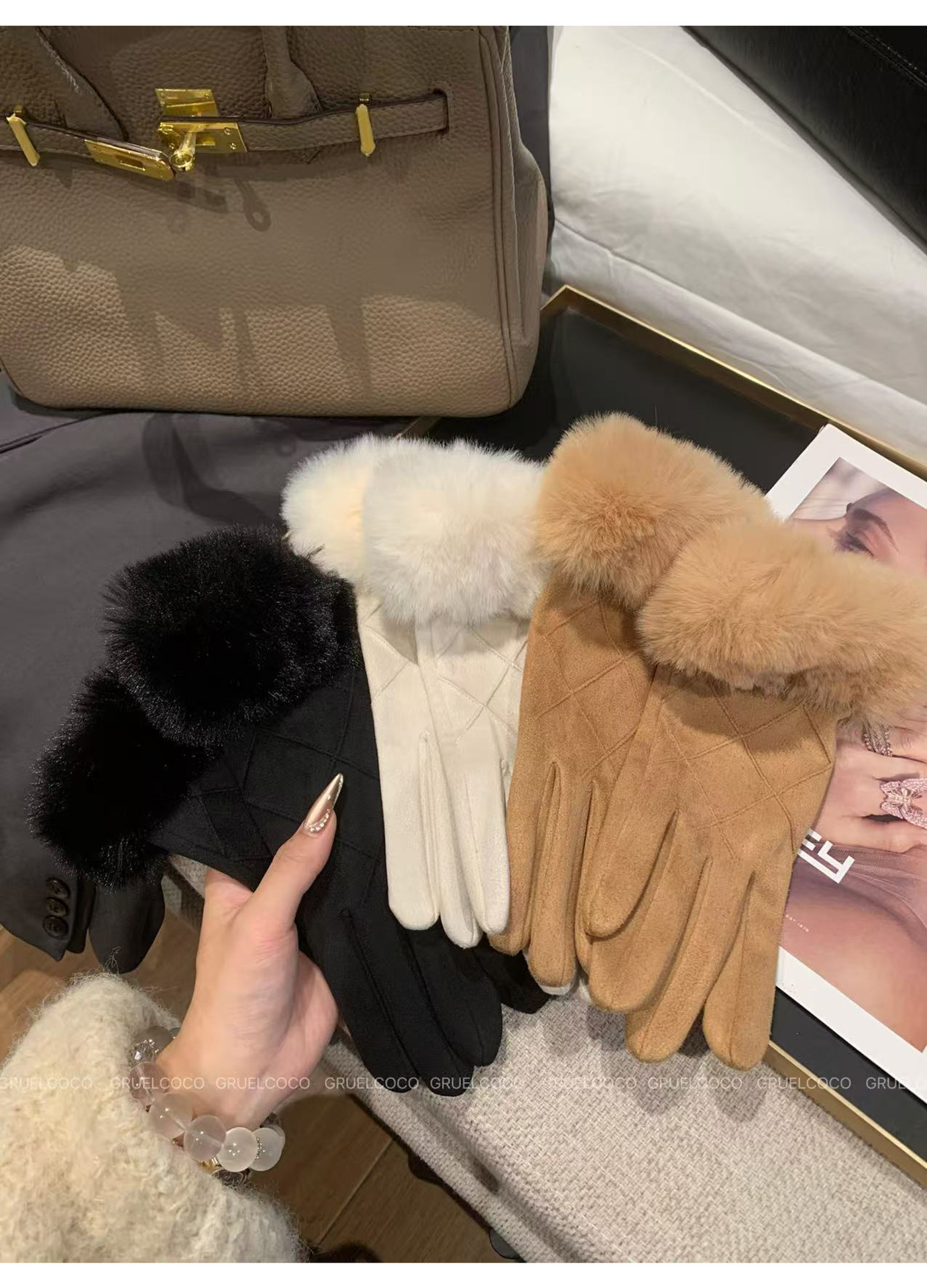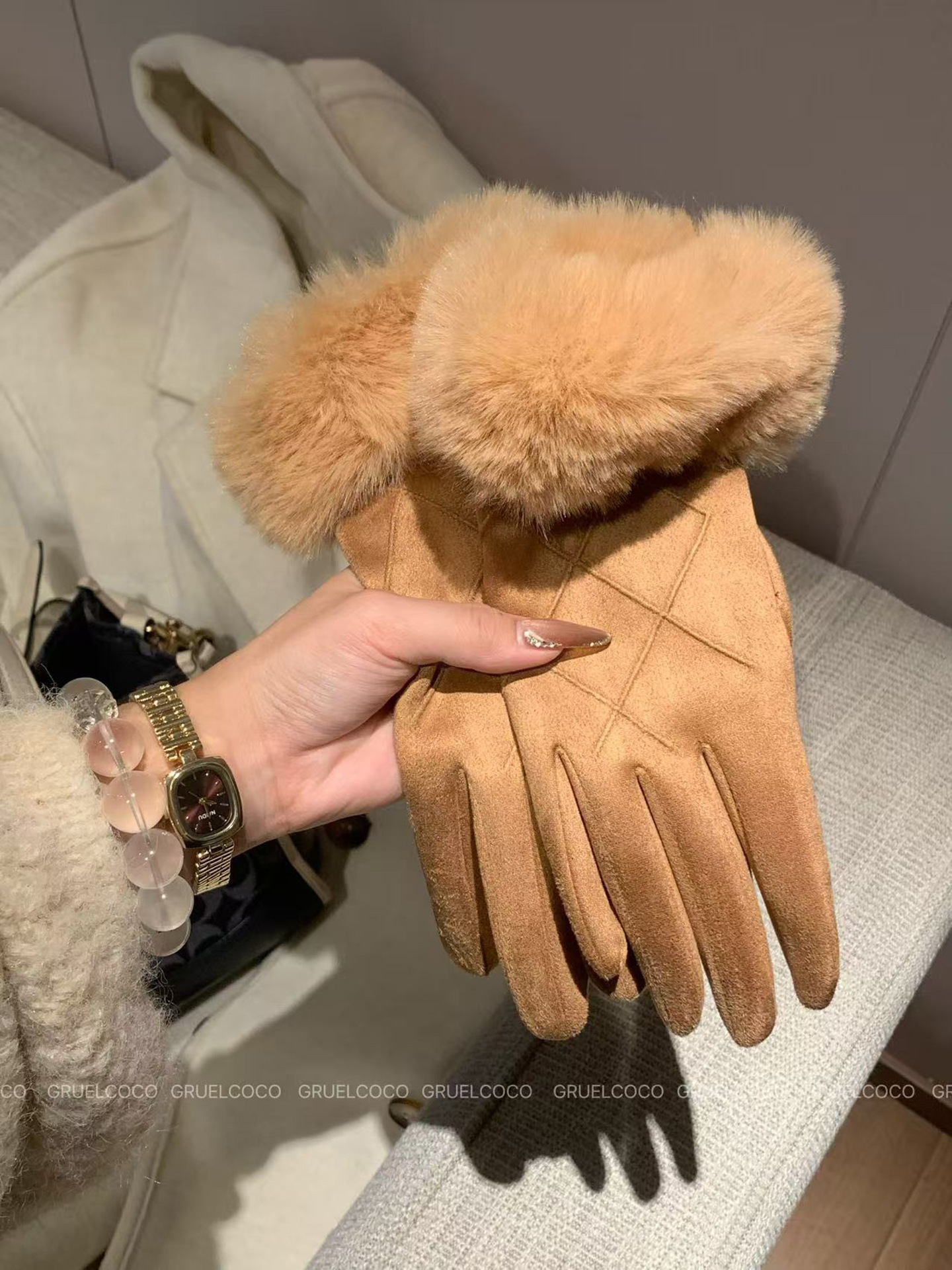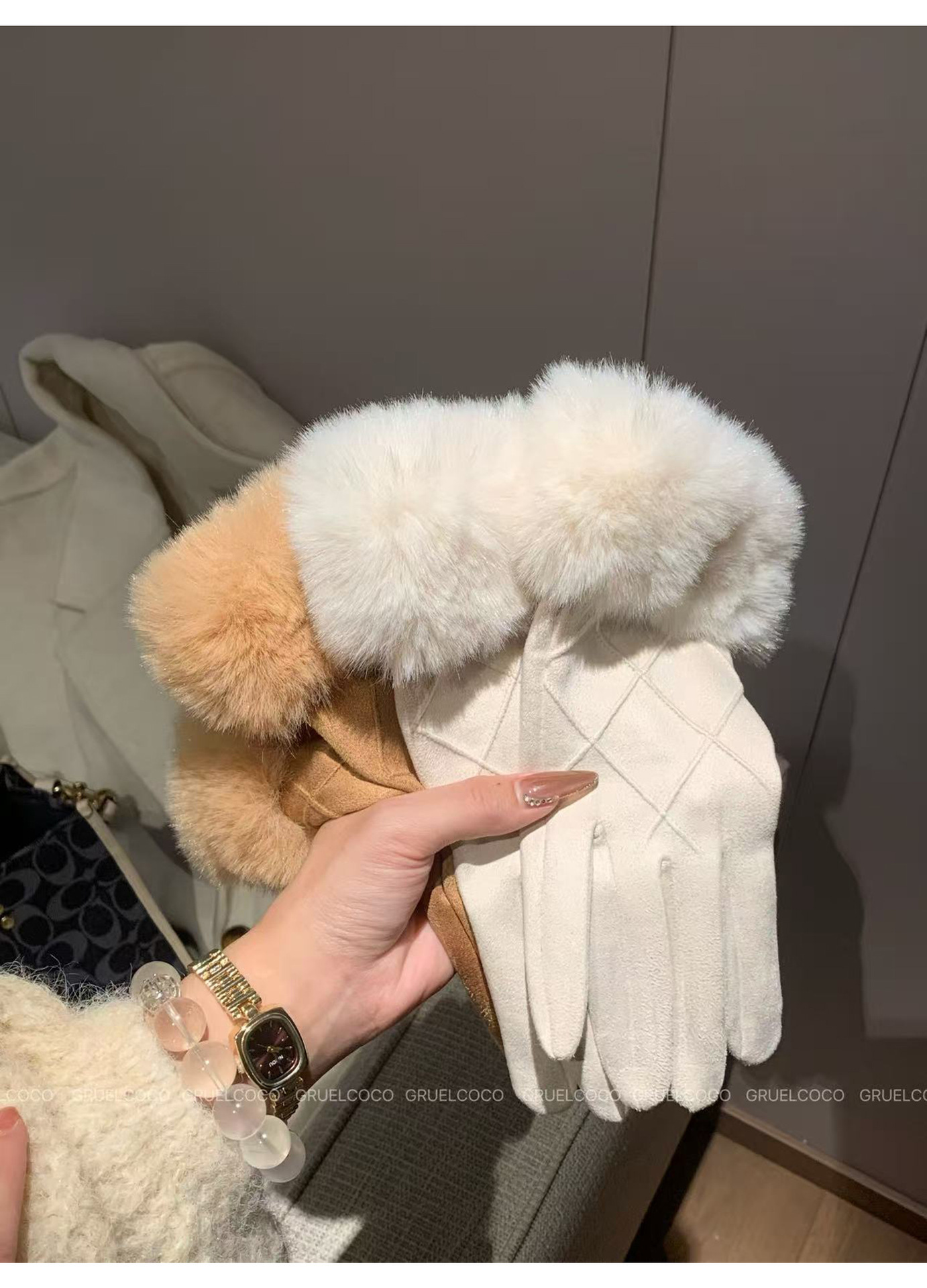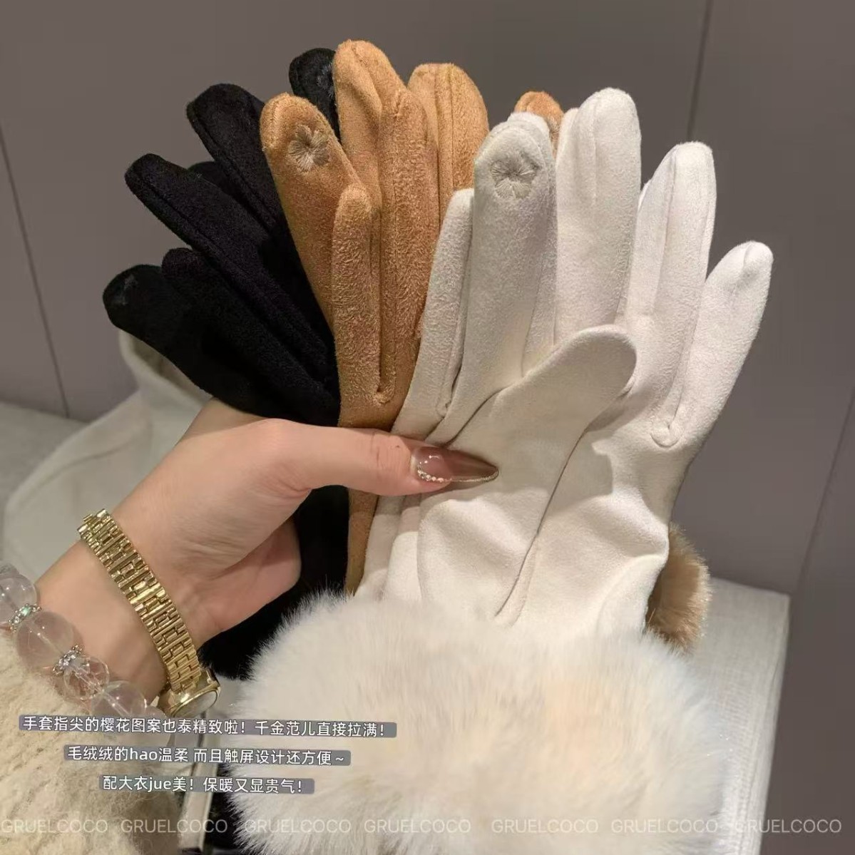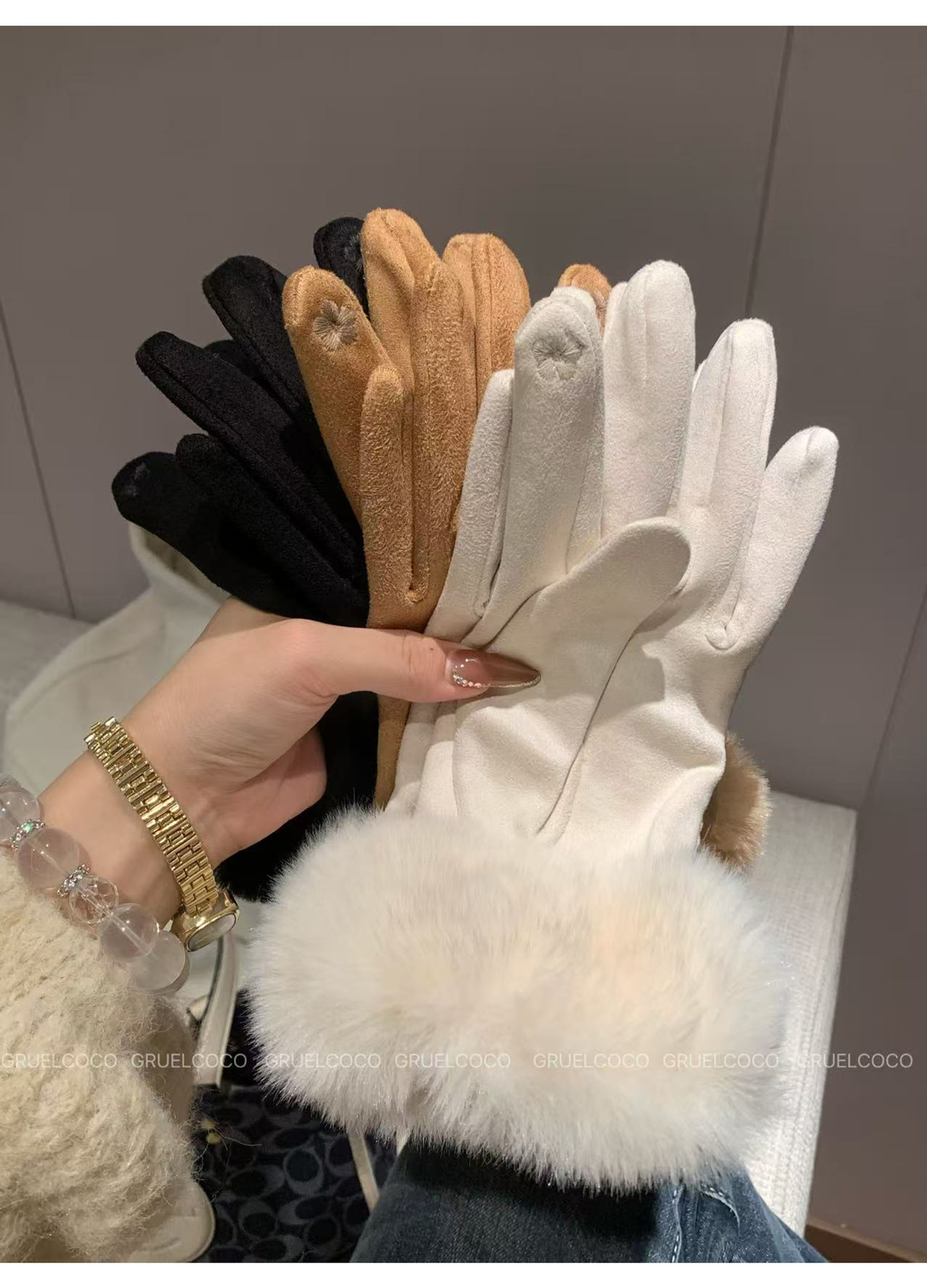手套保暖女冬季2025新款加绒加厚防寒骑行开车防风触屏麂皮绒手套