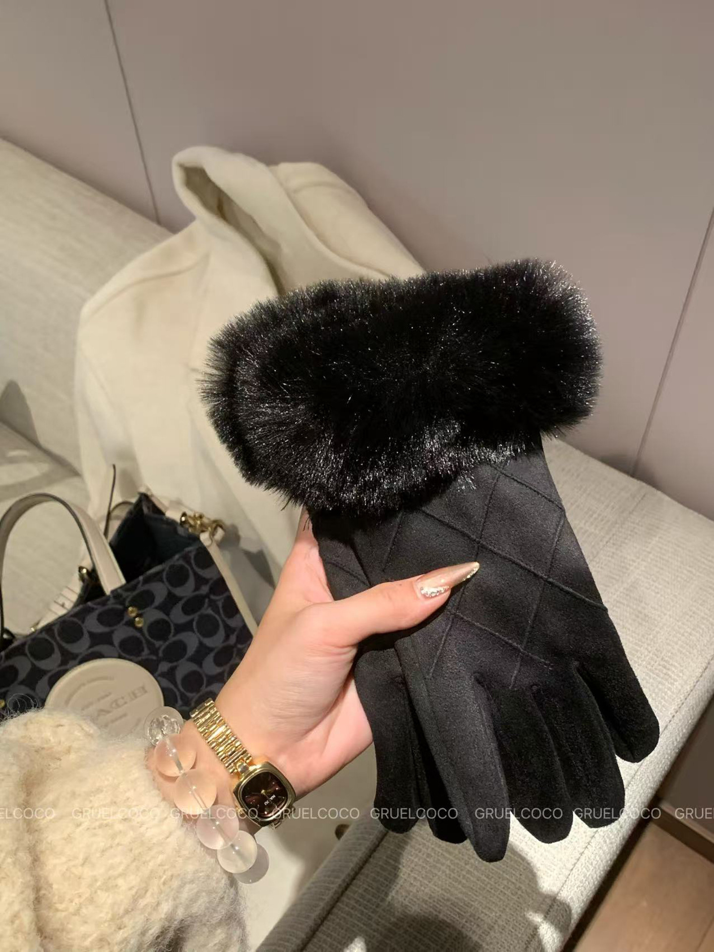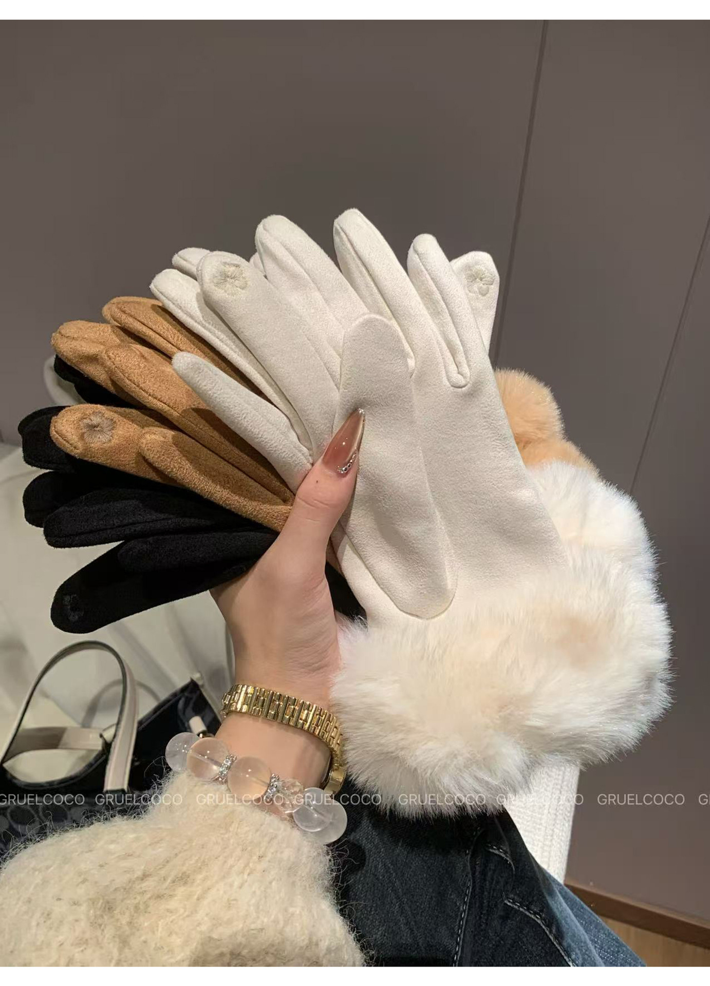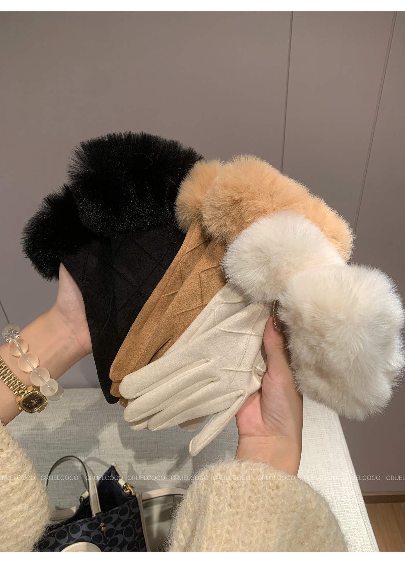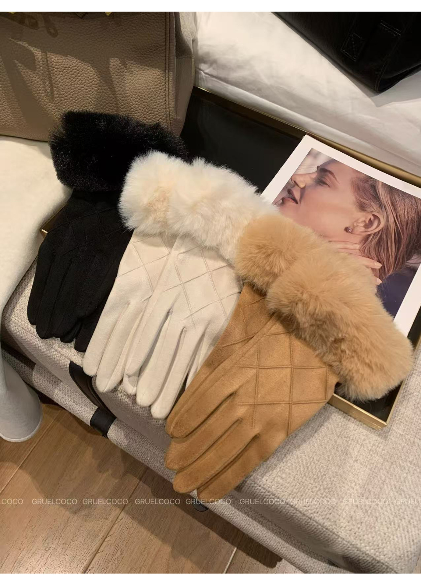 手套保暖女冬季2025新款加绒加厚防寒骑行开车防风触屏麂皮绒手套