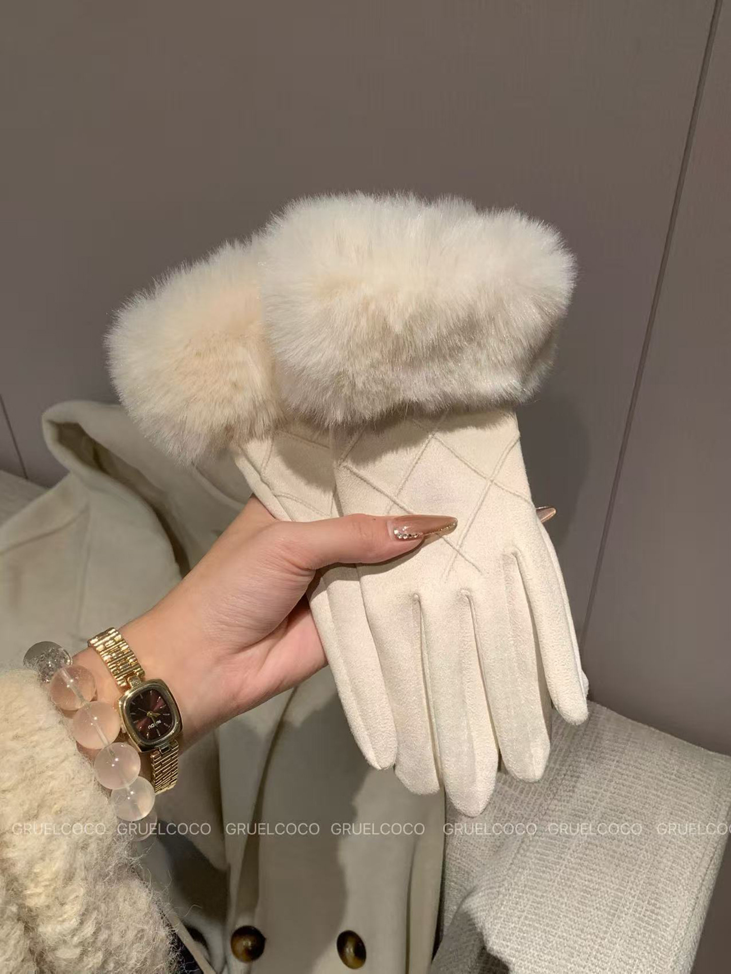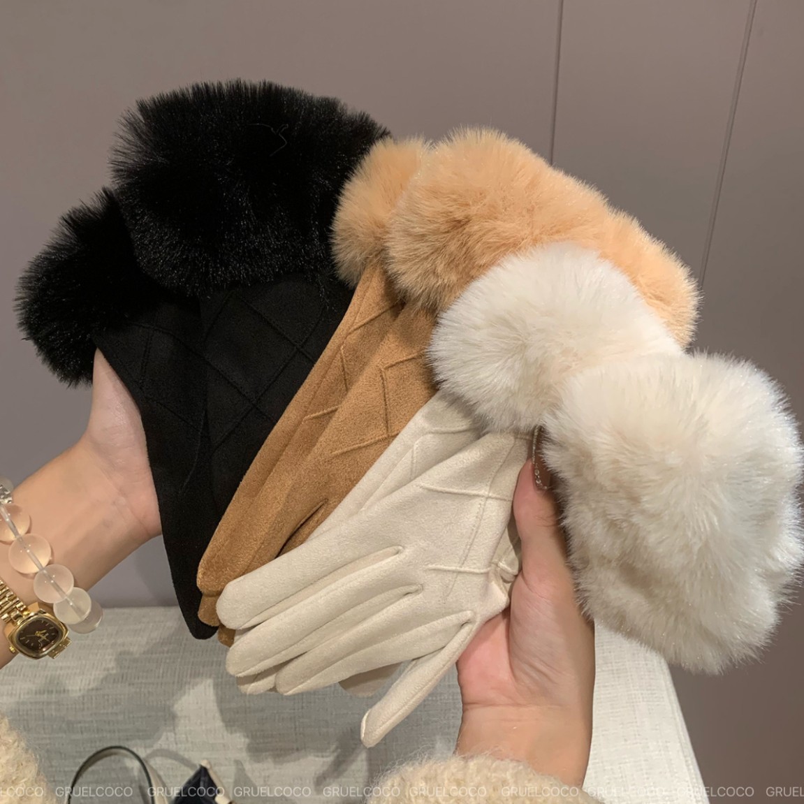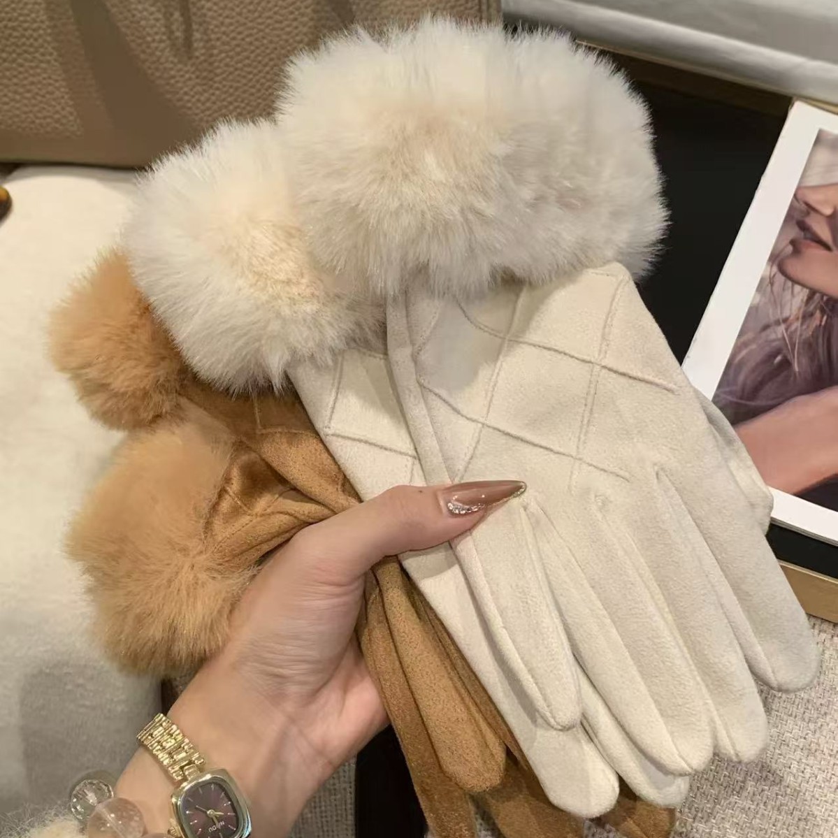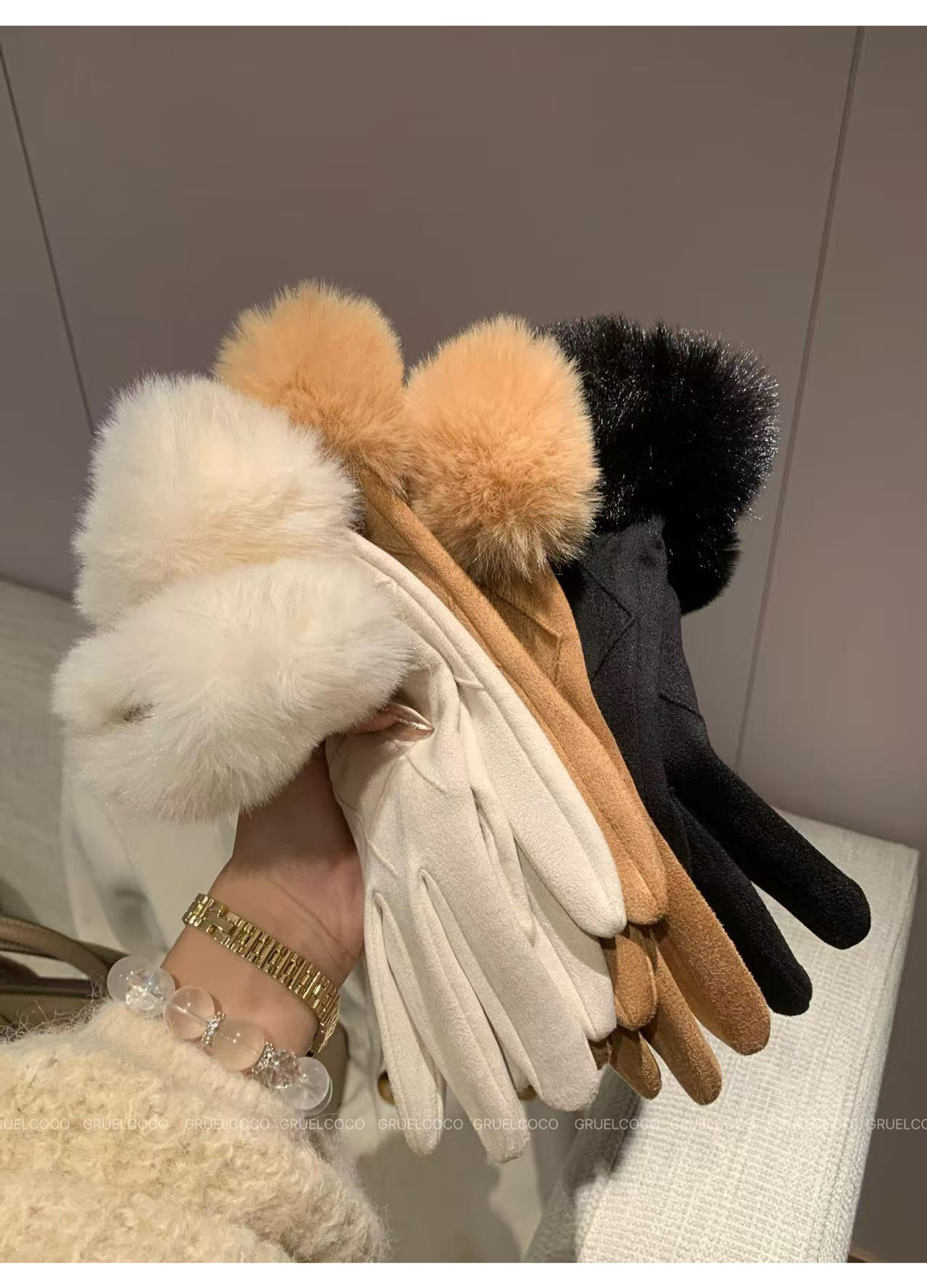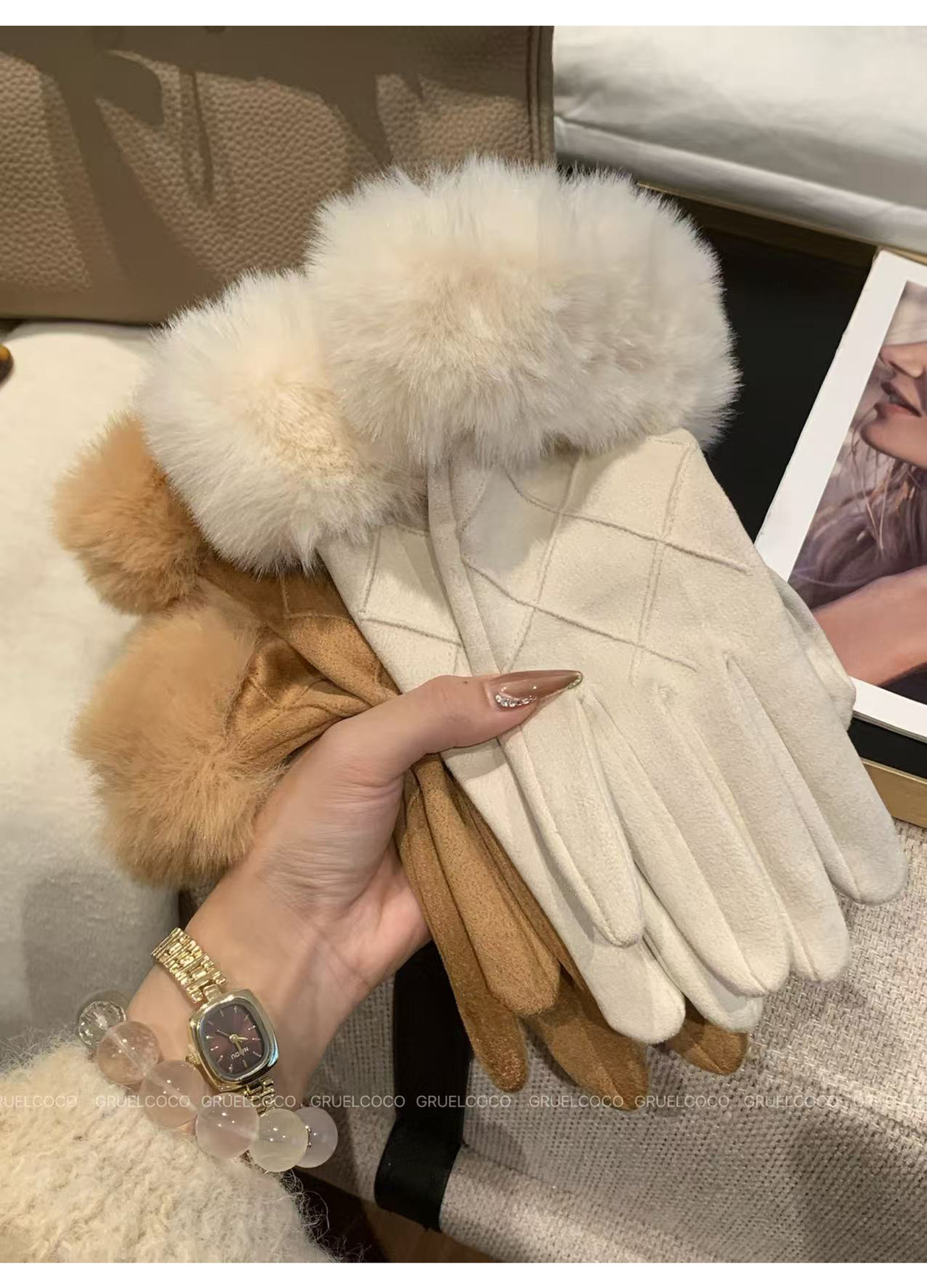 手套保暖女冬季2025新款加绒加厚防寒骑行开车防风触屏麂皮绒手套