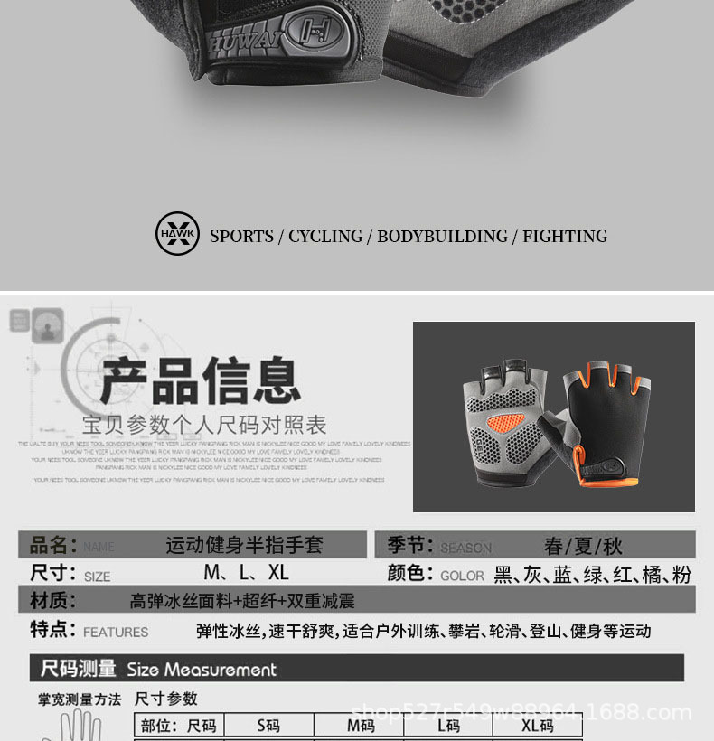 运动健身半指手套男女防滑耐磨锻炼哑铃瑜伽轻薄透气批发多色可选