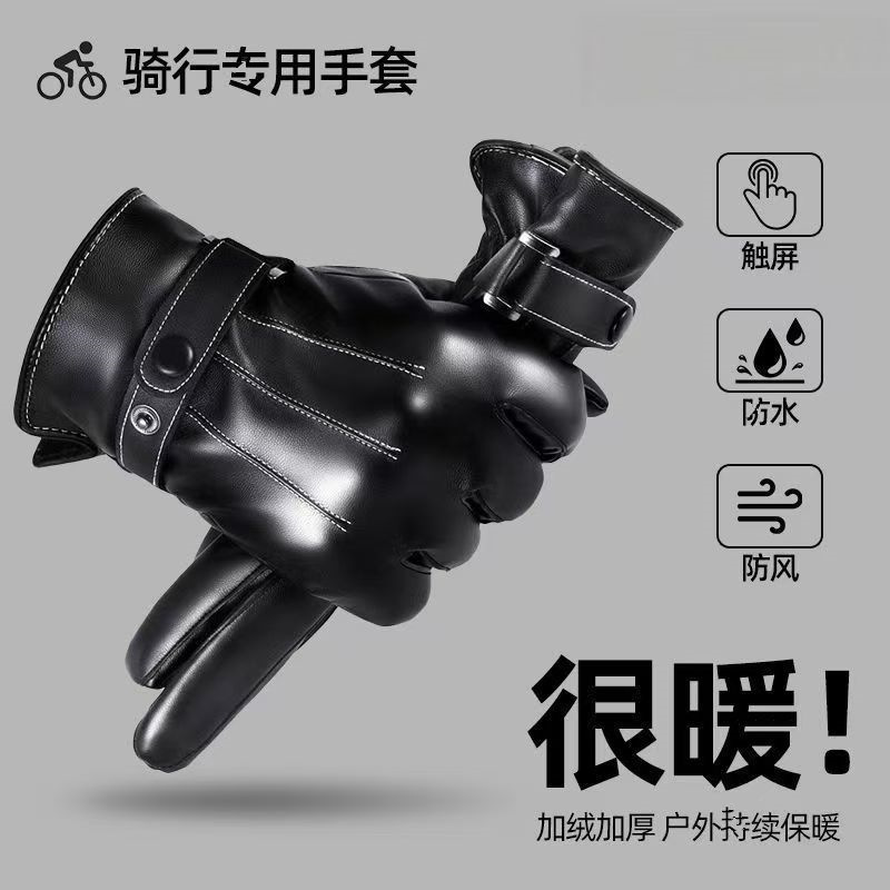 手套男冬骑行加绒加厚保暖防寒皮手套女骑车摩托车触屏帅气手套