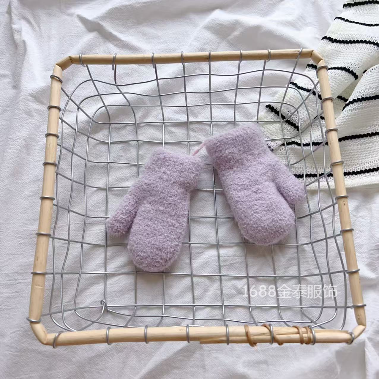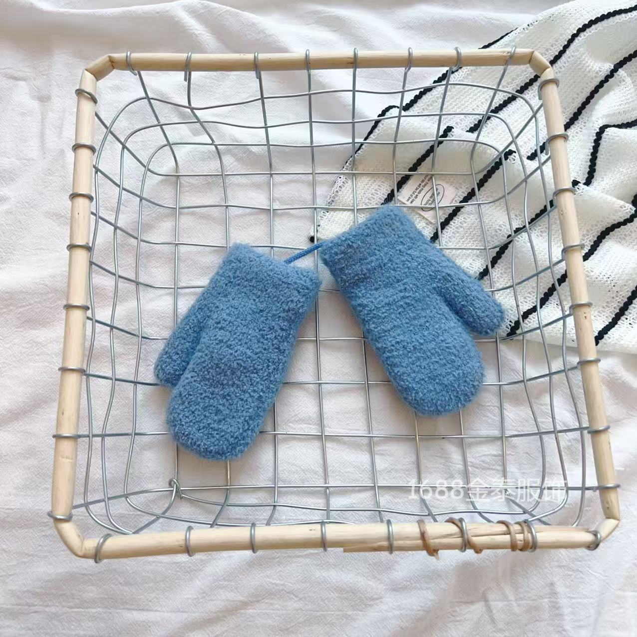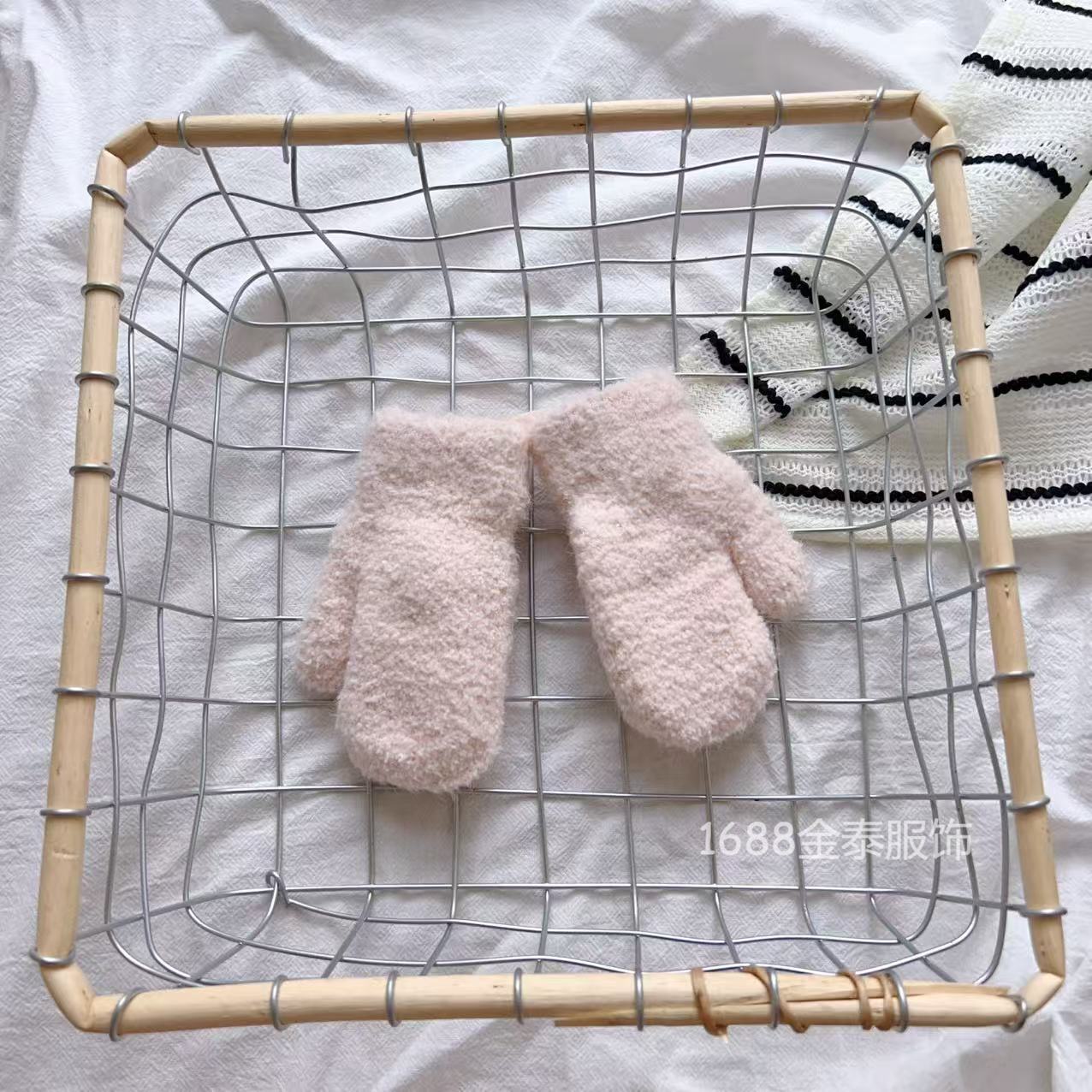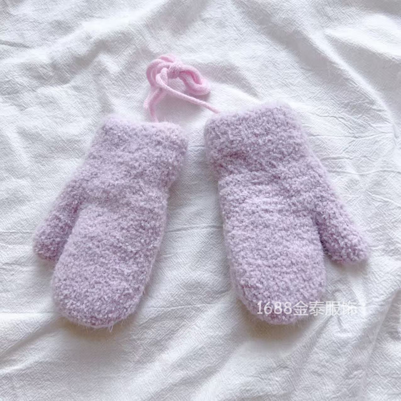 宝宝手套ins软糯糯~韩系简约纯色毛绒绒婴儿冬季加厚保暖挂脖包指