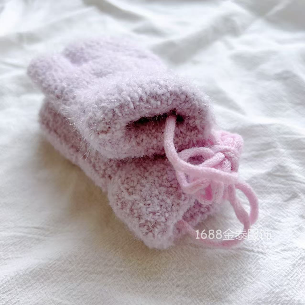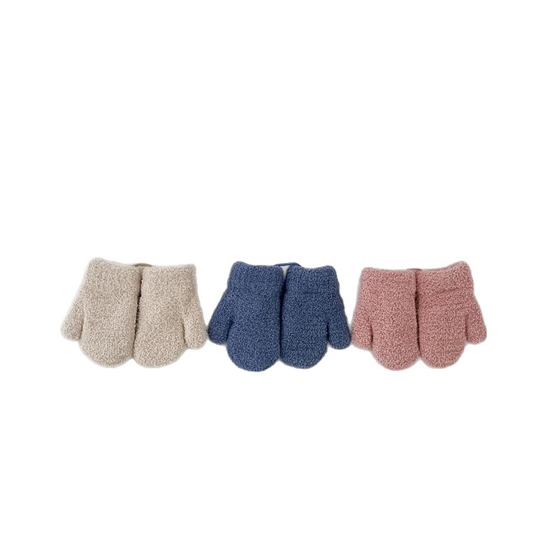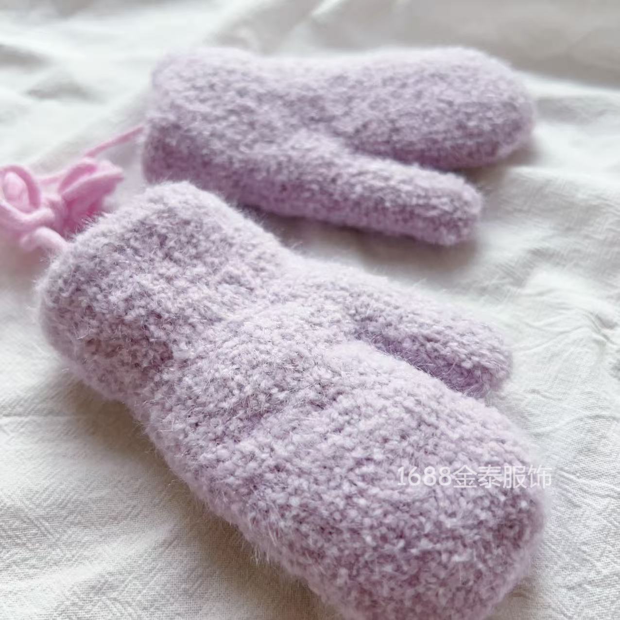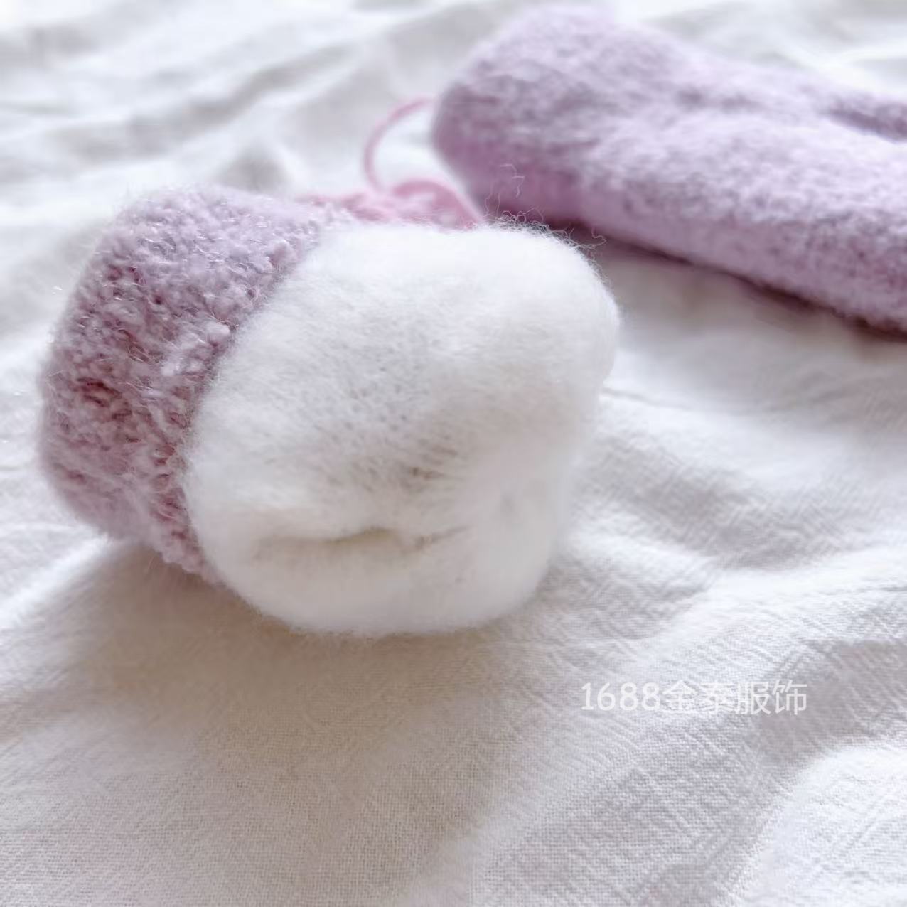 宝宝手套ins软糯糯~韩系简约纯色毛绒绒婴儿冬季加厚保暖挂脖包指