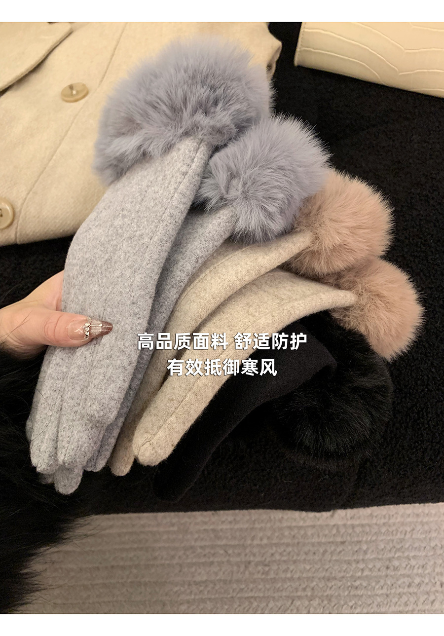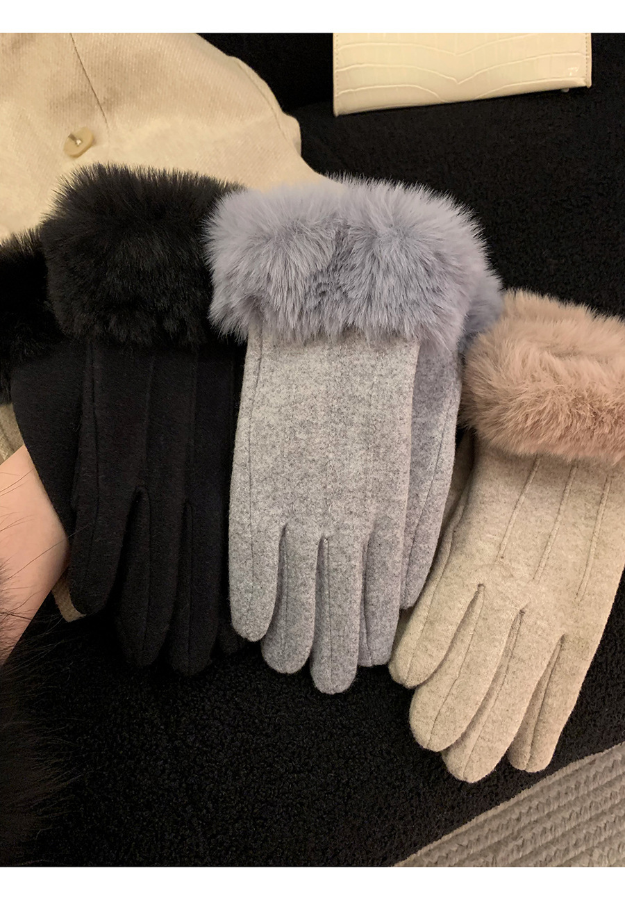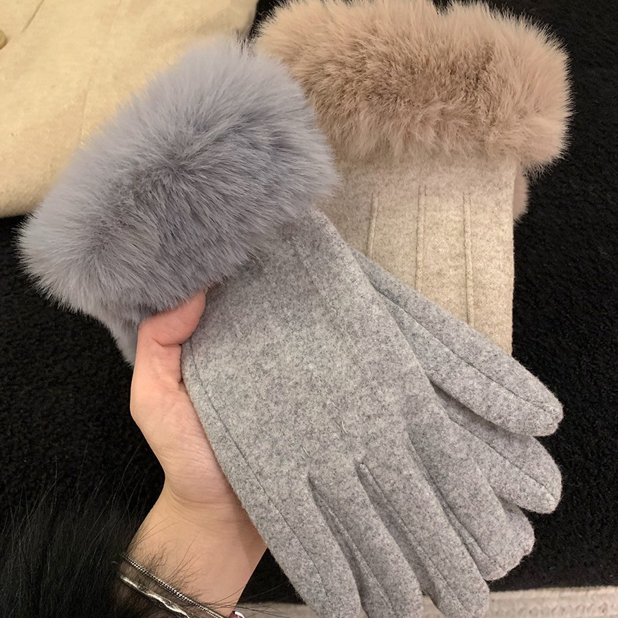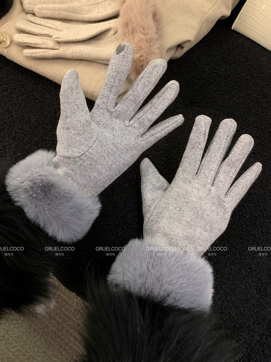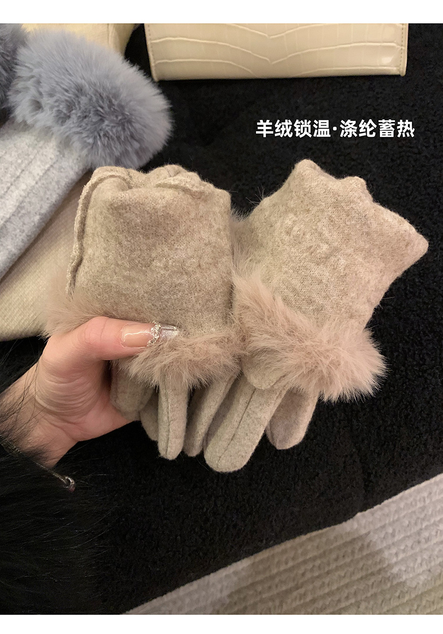 羊绒手套女冬季时尚感兔毛加绒加厚保暖防寒开车骑行可触屏浅卡其