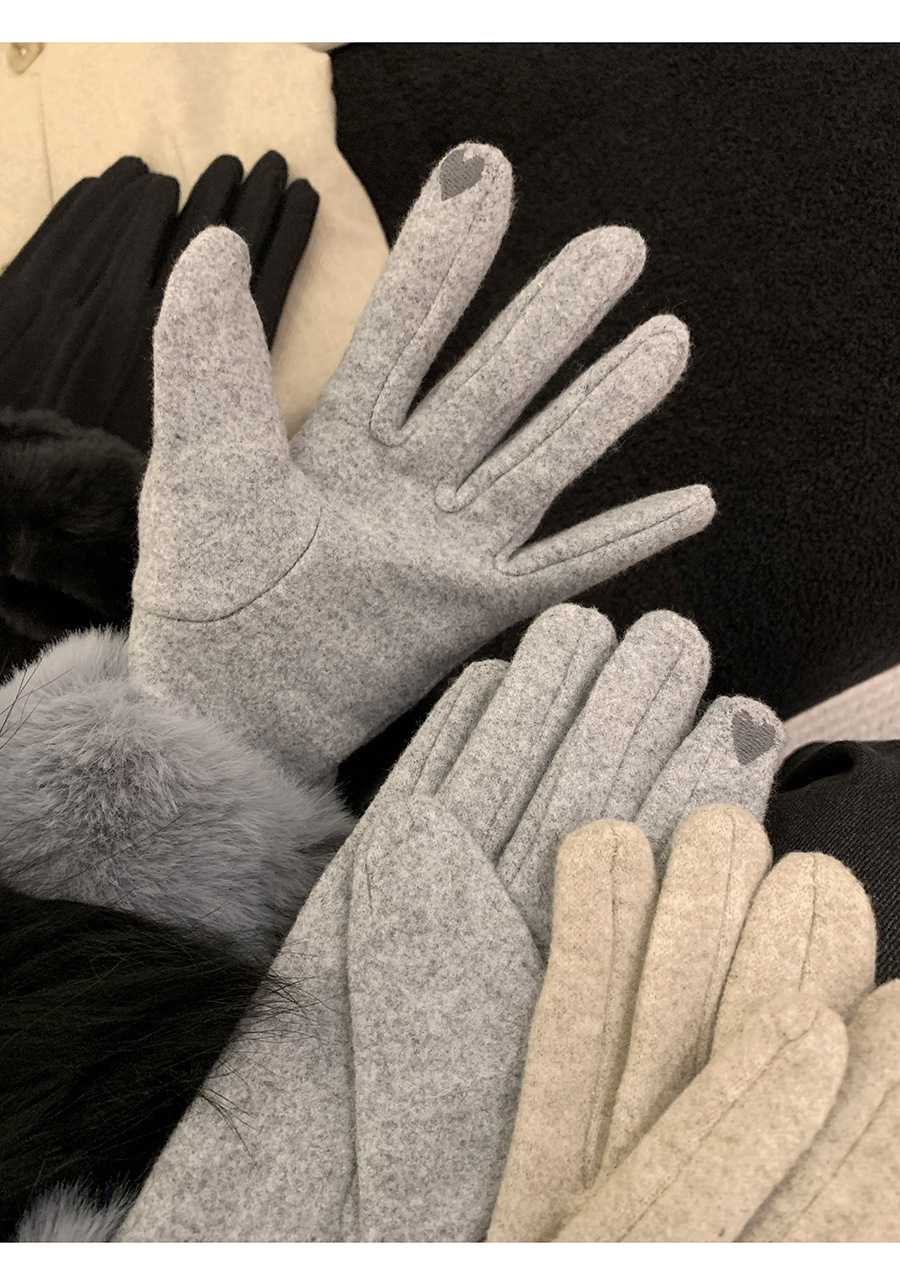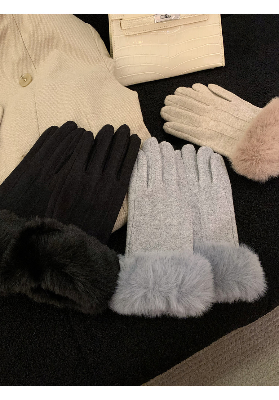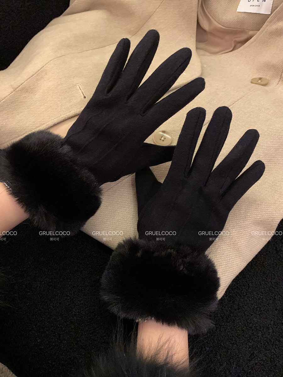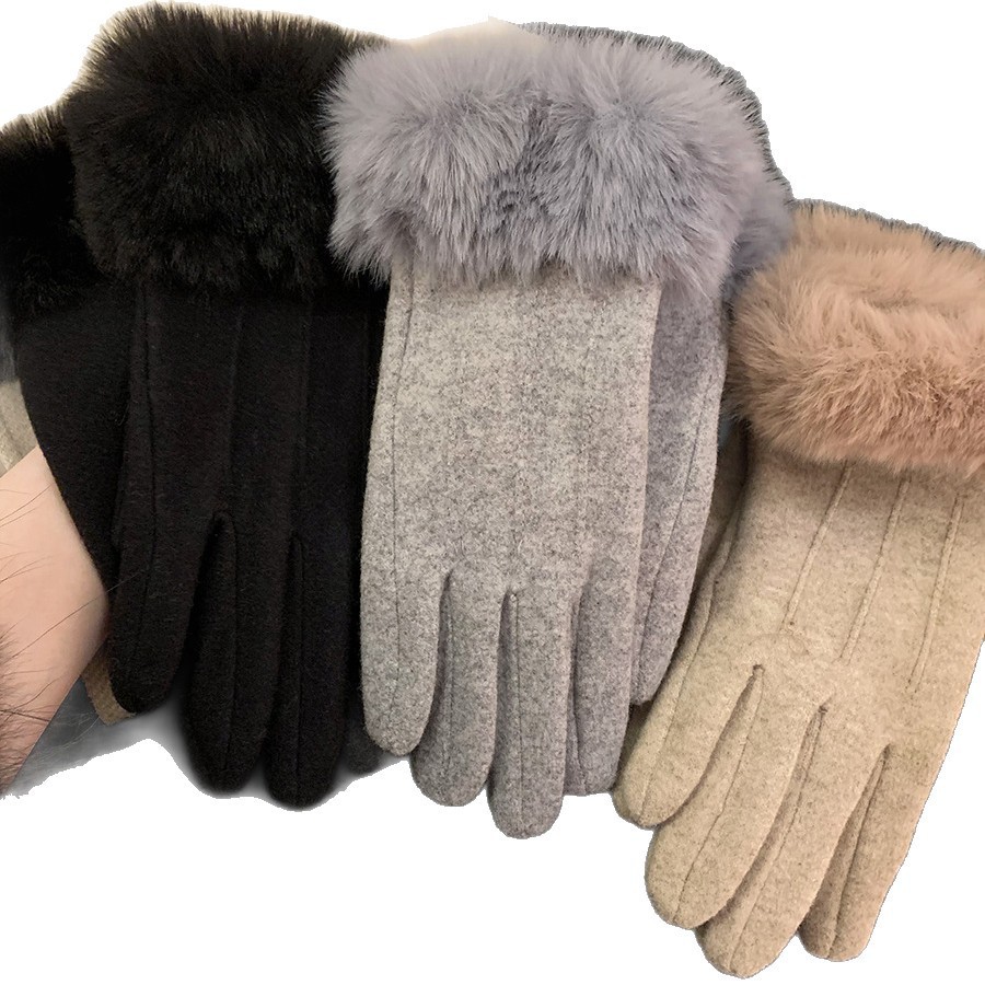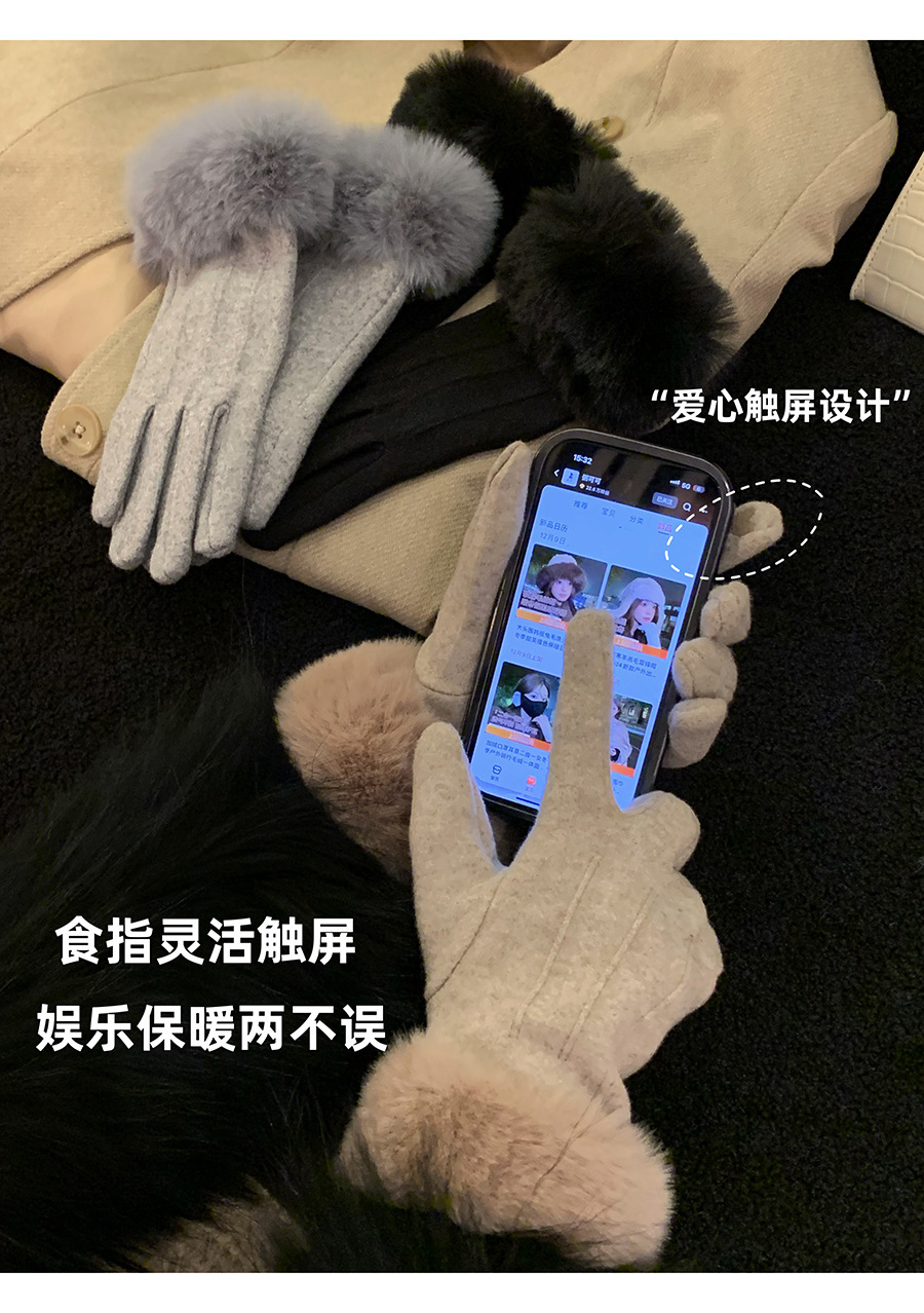 羊绒手套女冬季时尚感兔毛加绒加厚保暖防寒开车骑行可触屏浅卡其
